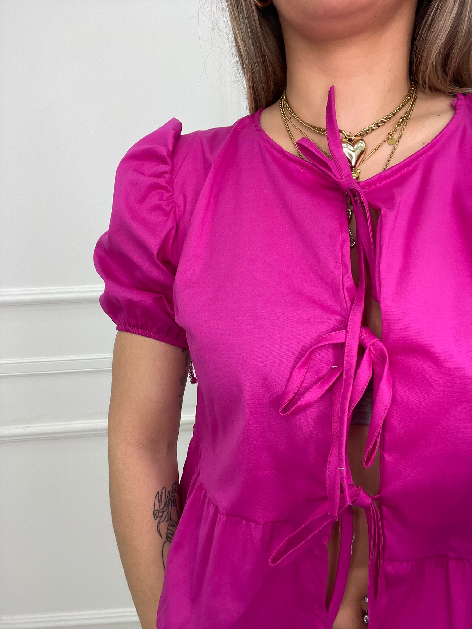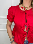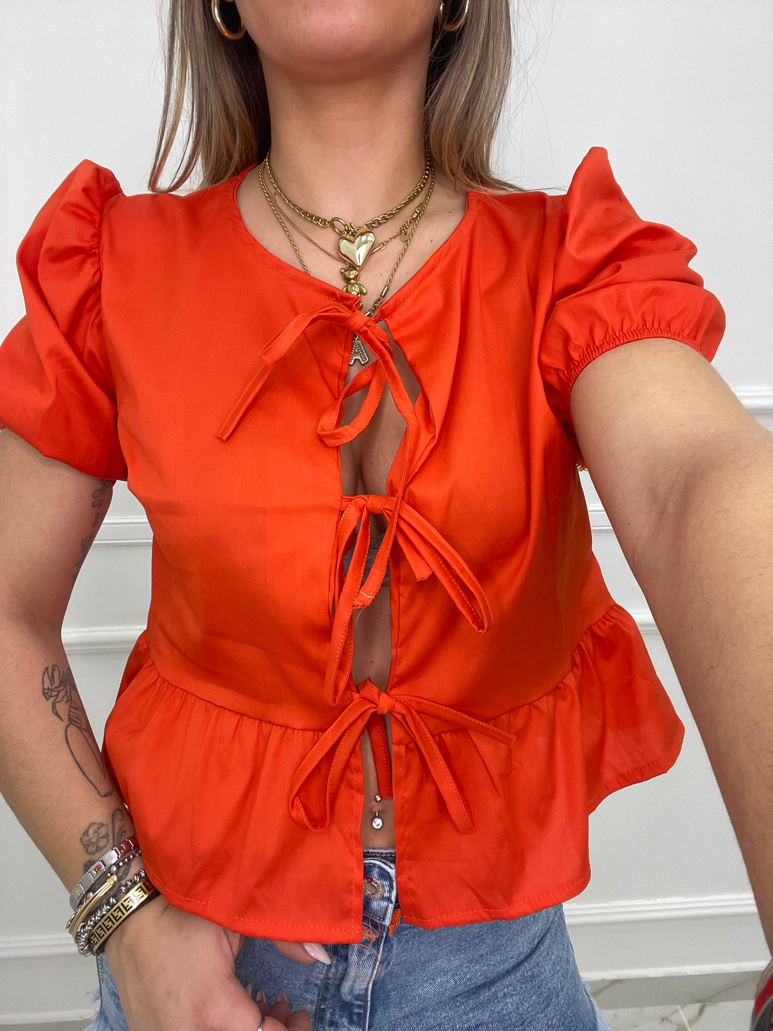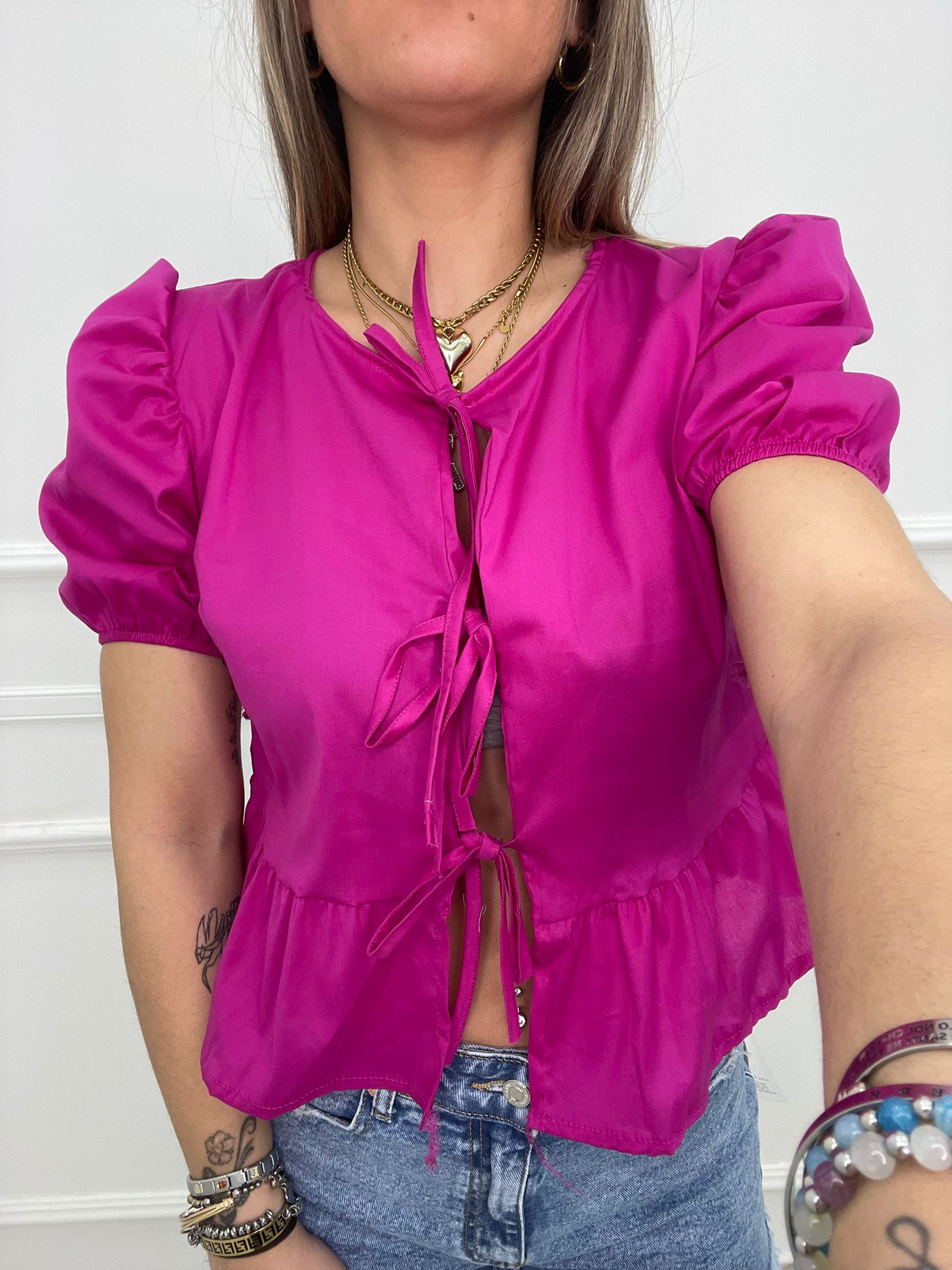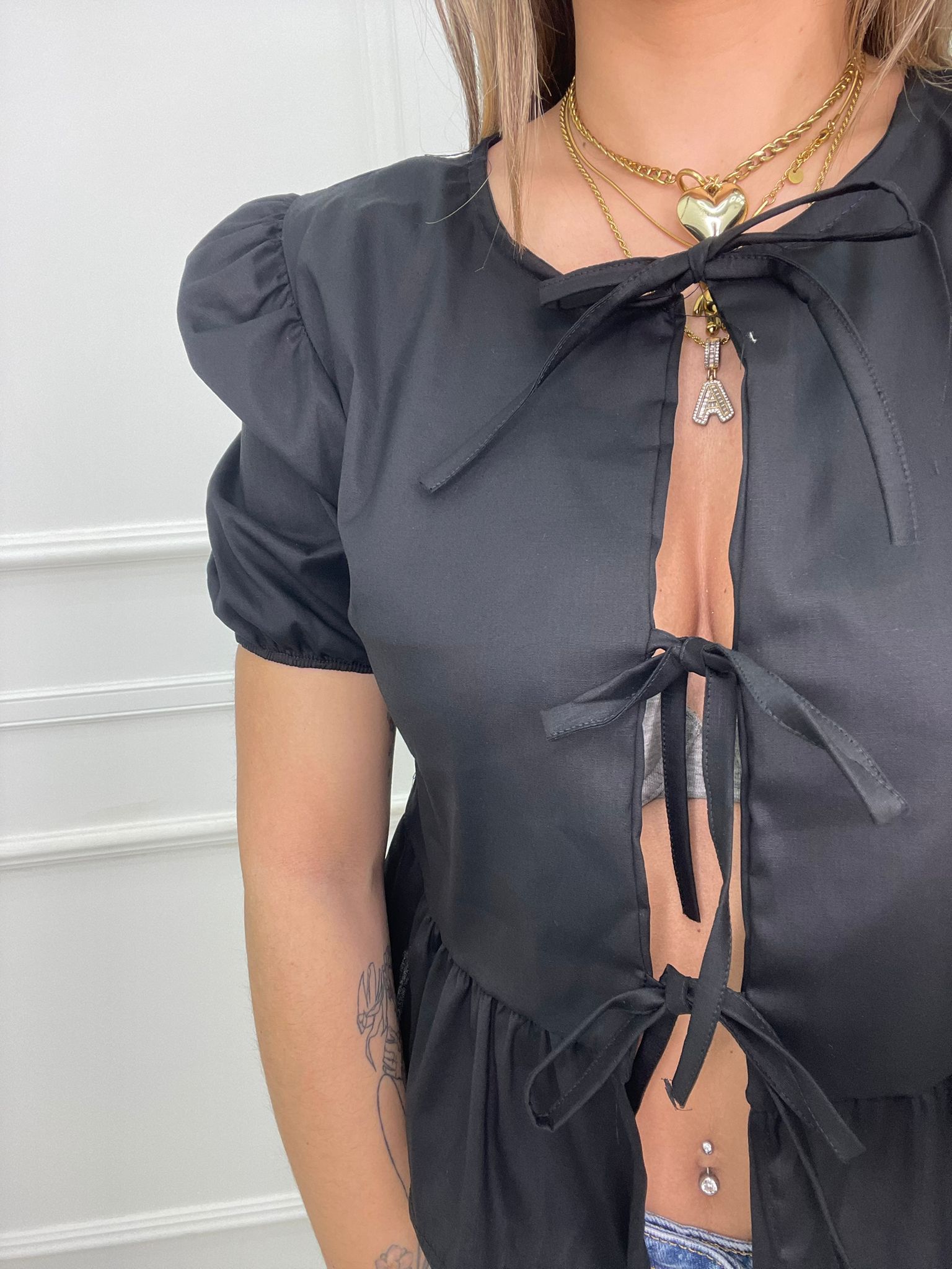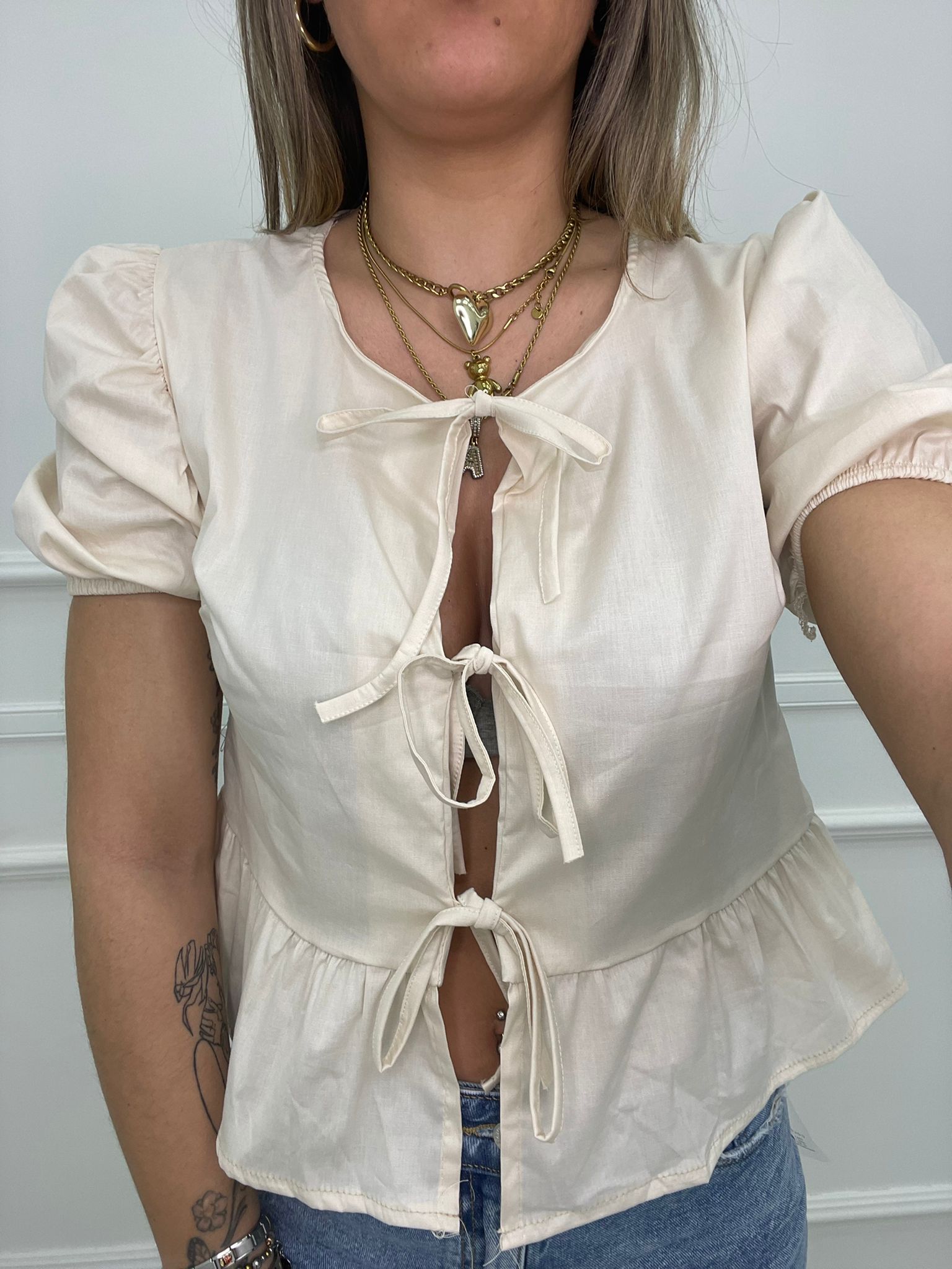 Camicia in cotone con fiocchi avanti