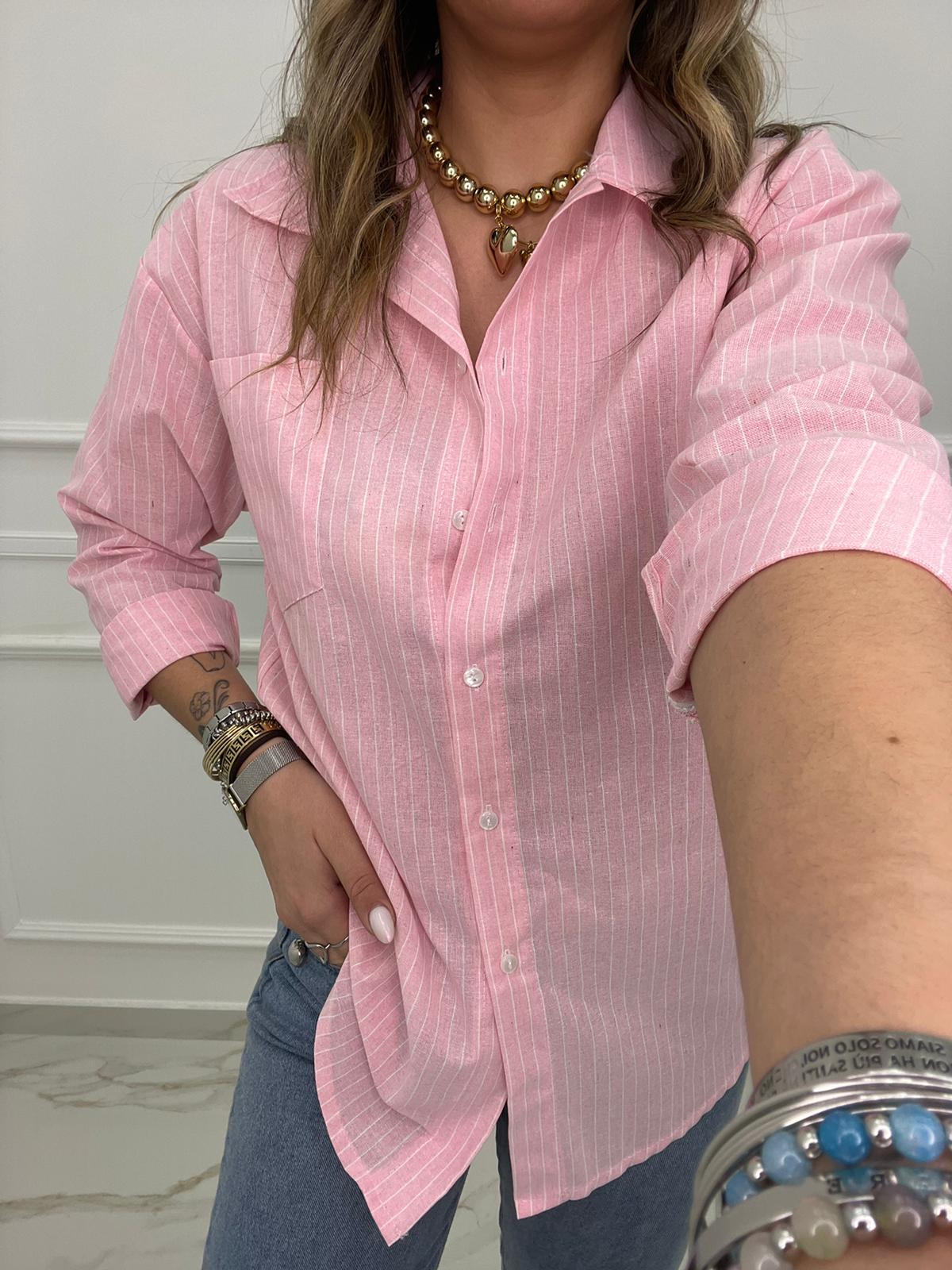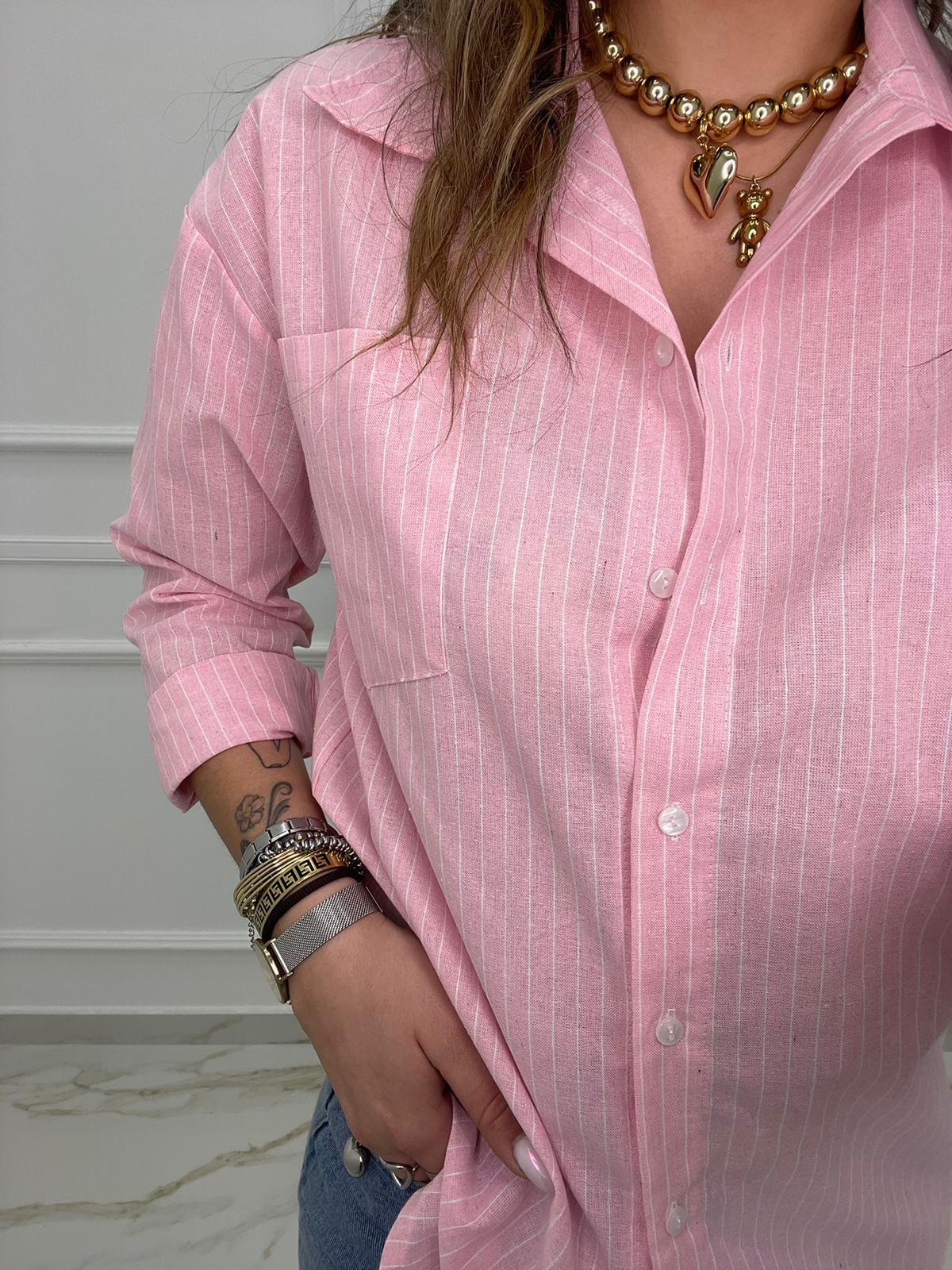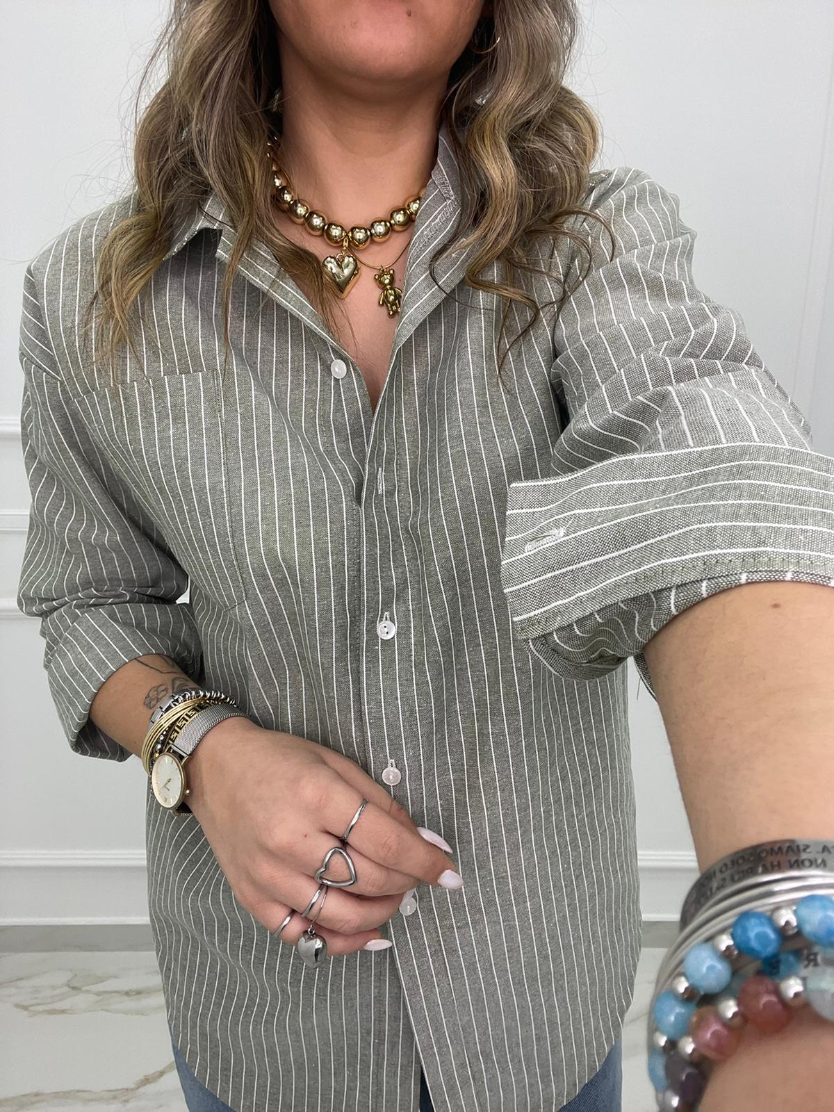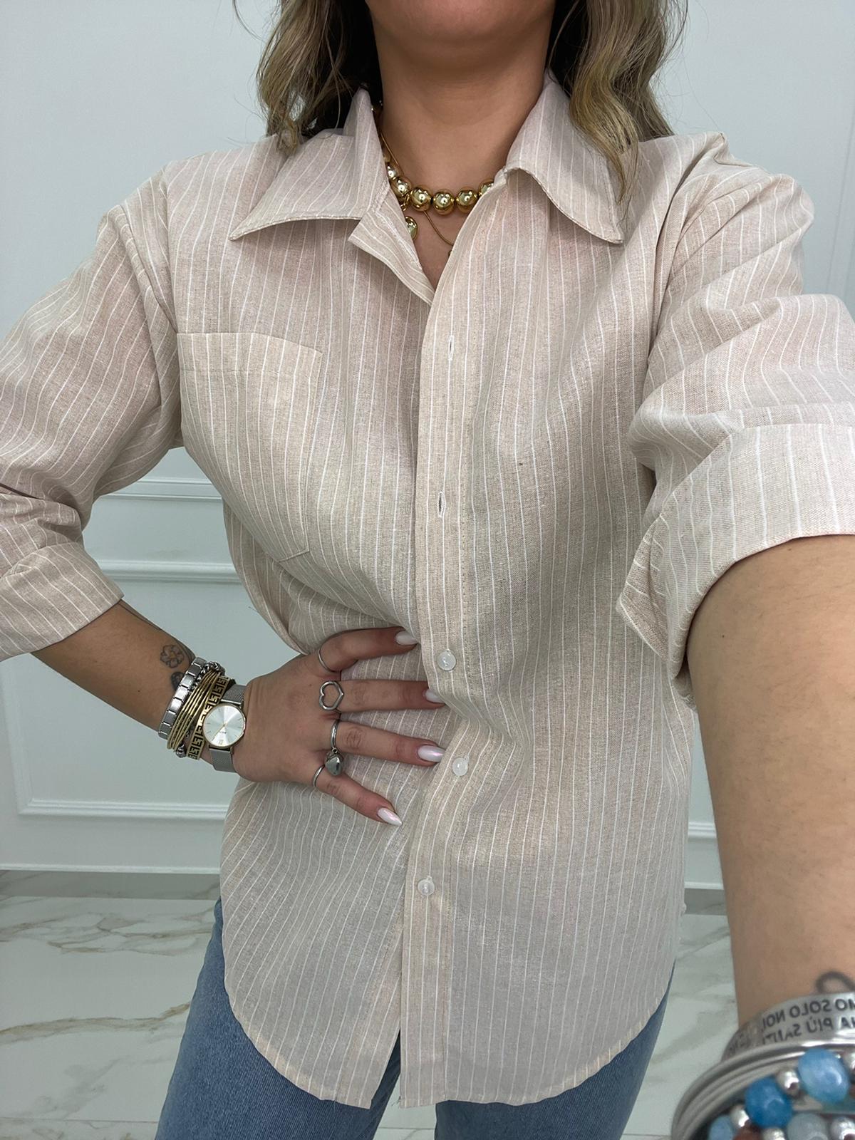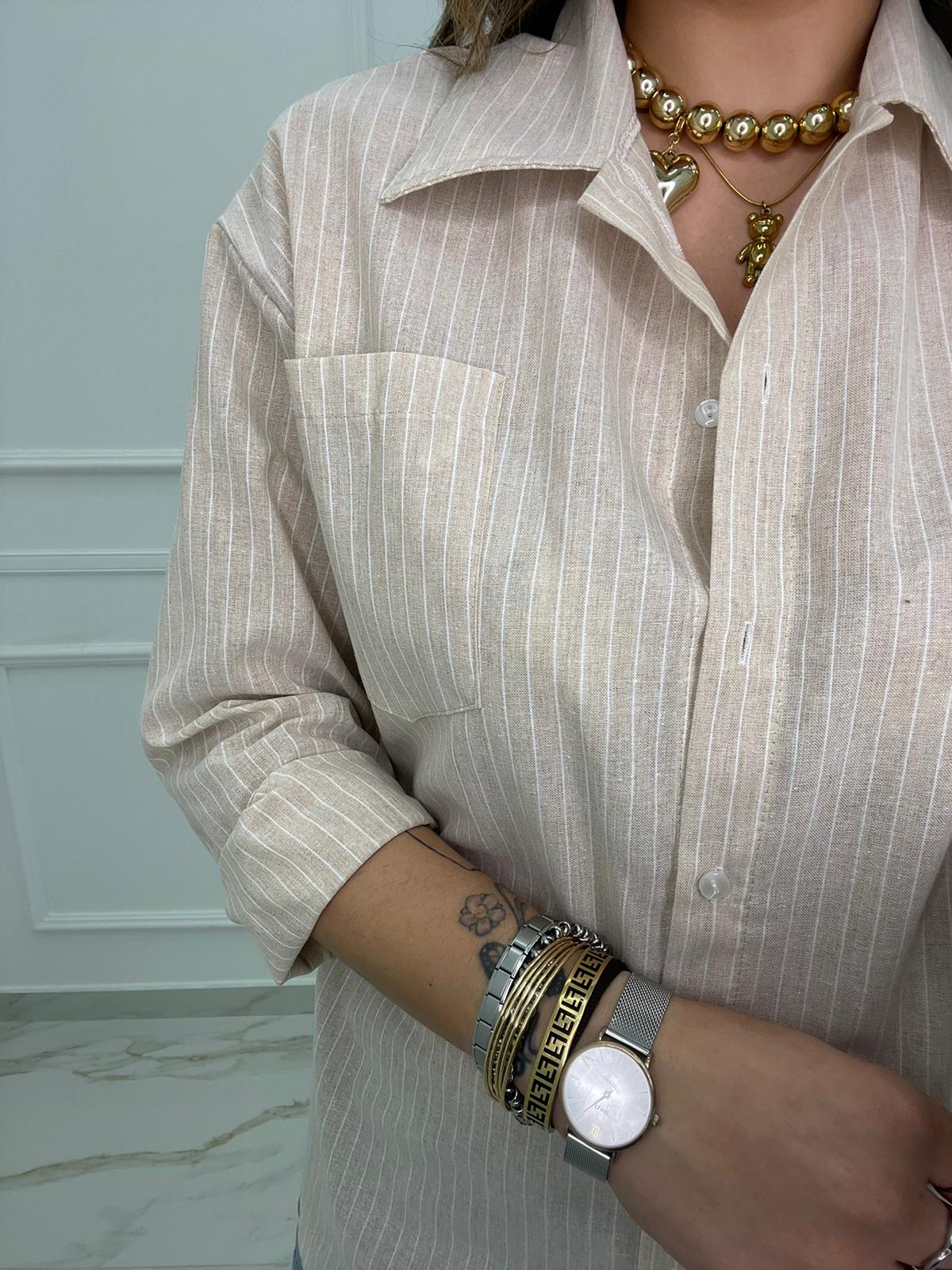 Camicia over effetto lino a righe