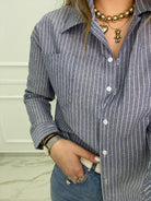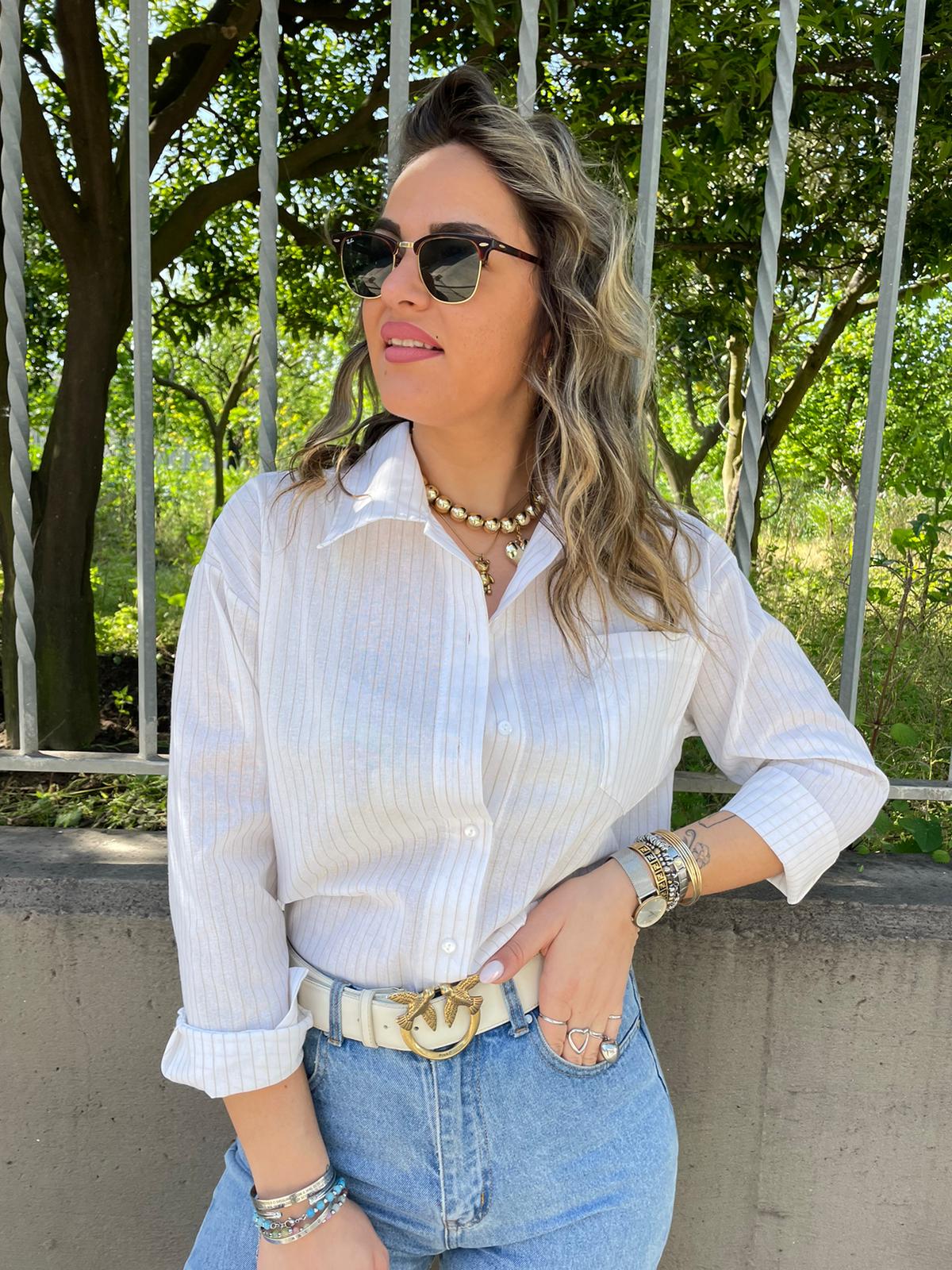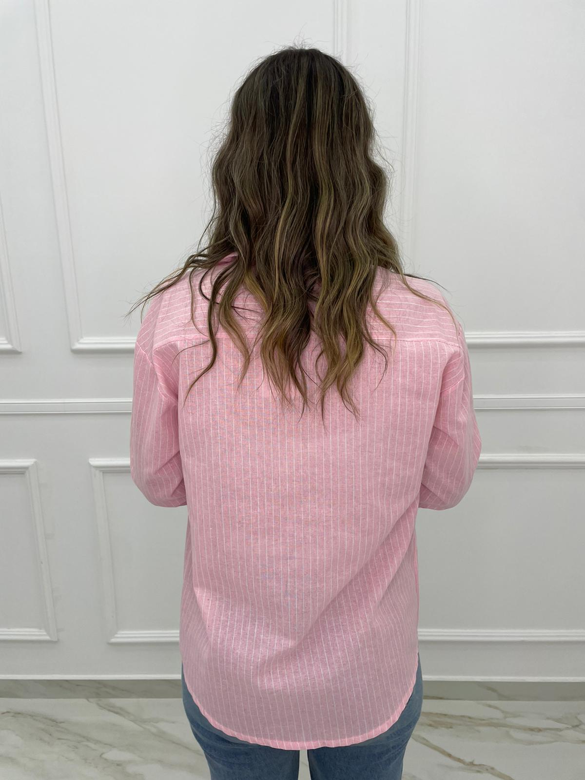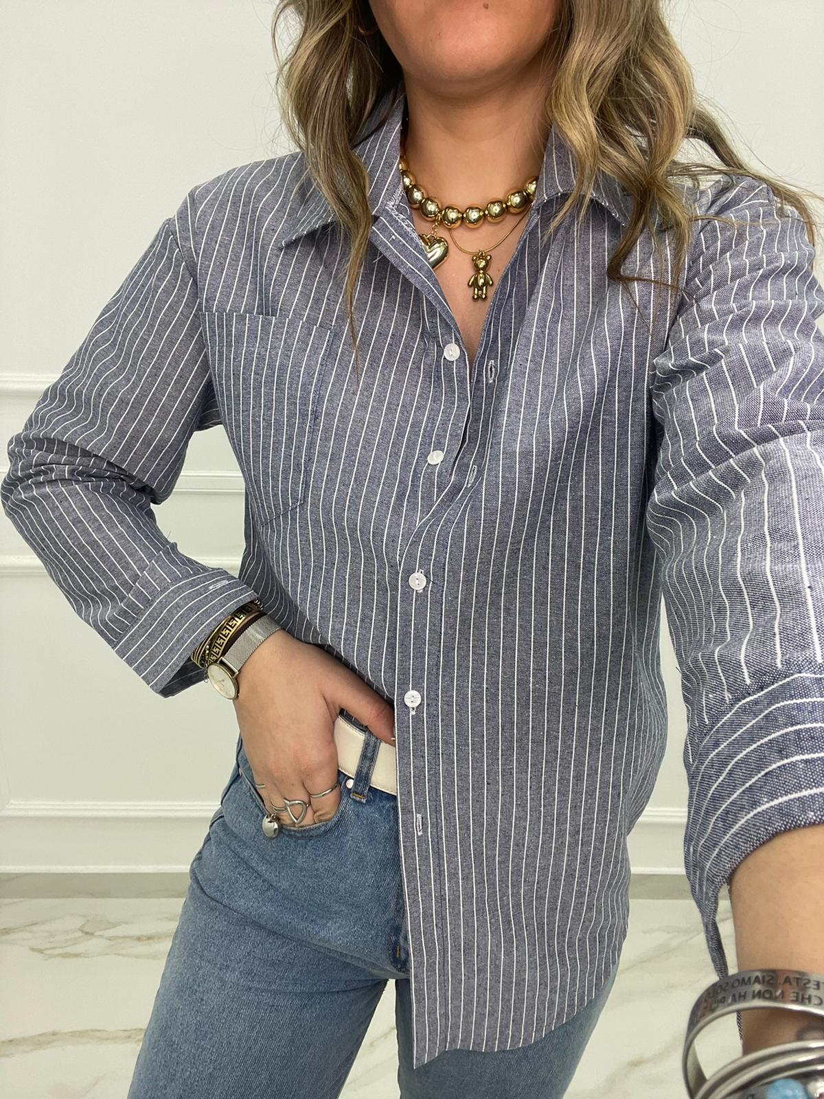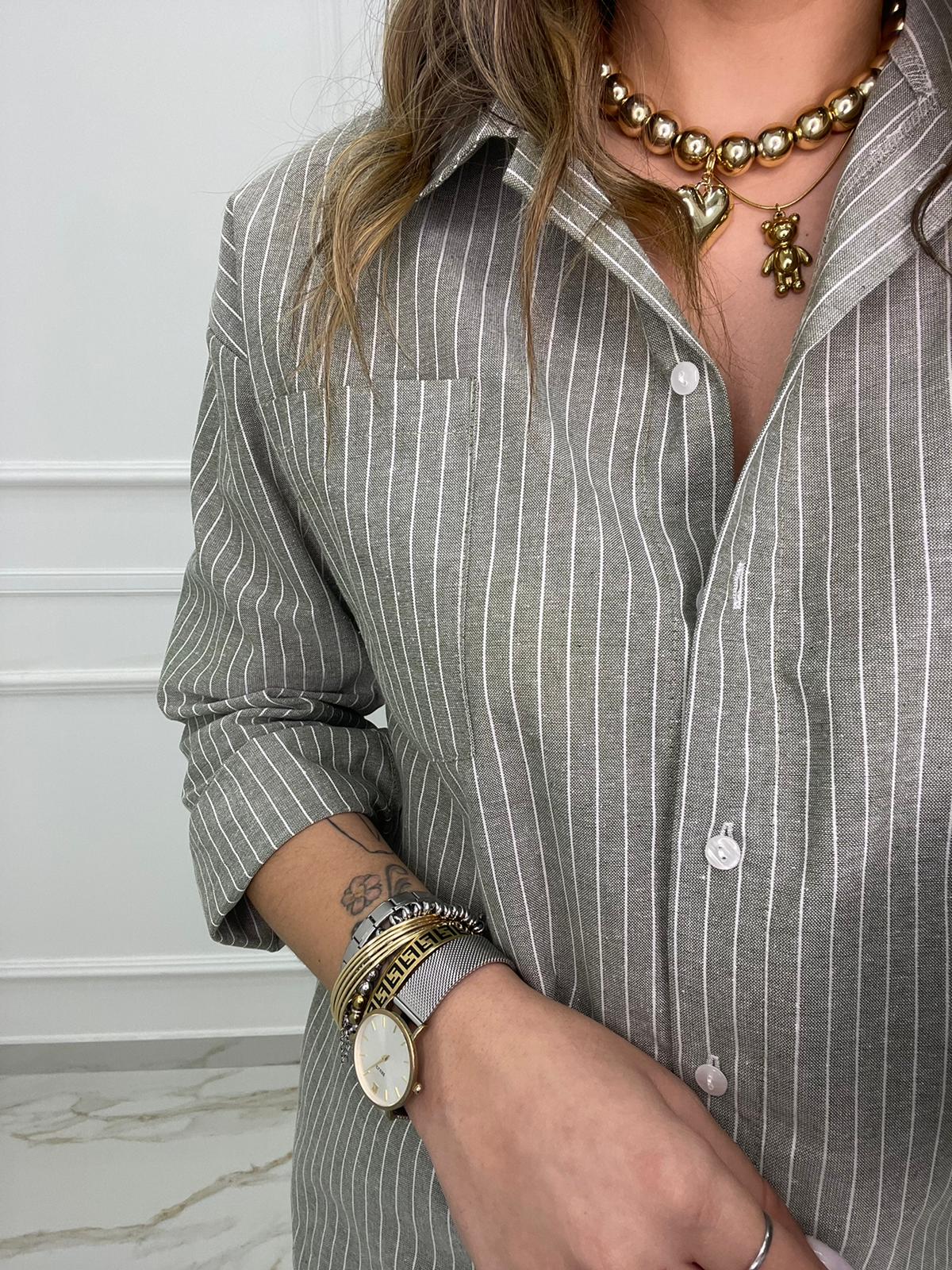 Camicia over effetto lino a righe