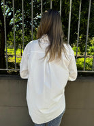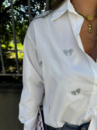 Camicia over in cotone con fiocchi swarovski