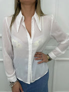 Camicia velata tinta unita con brillantini