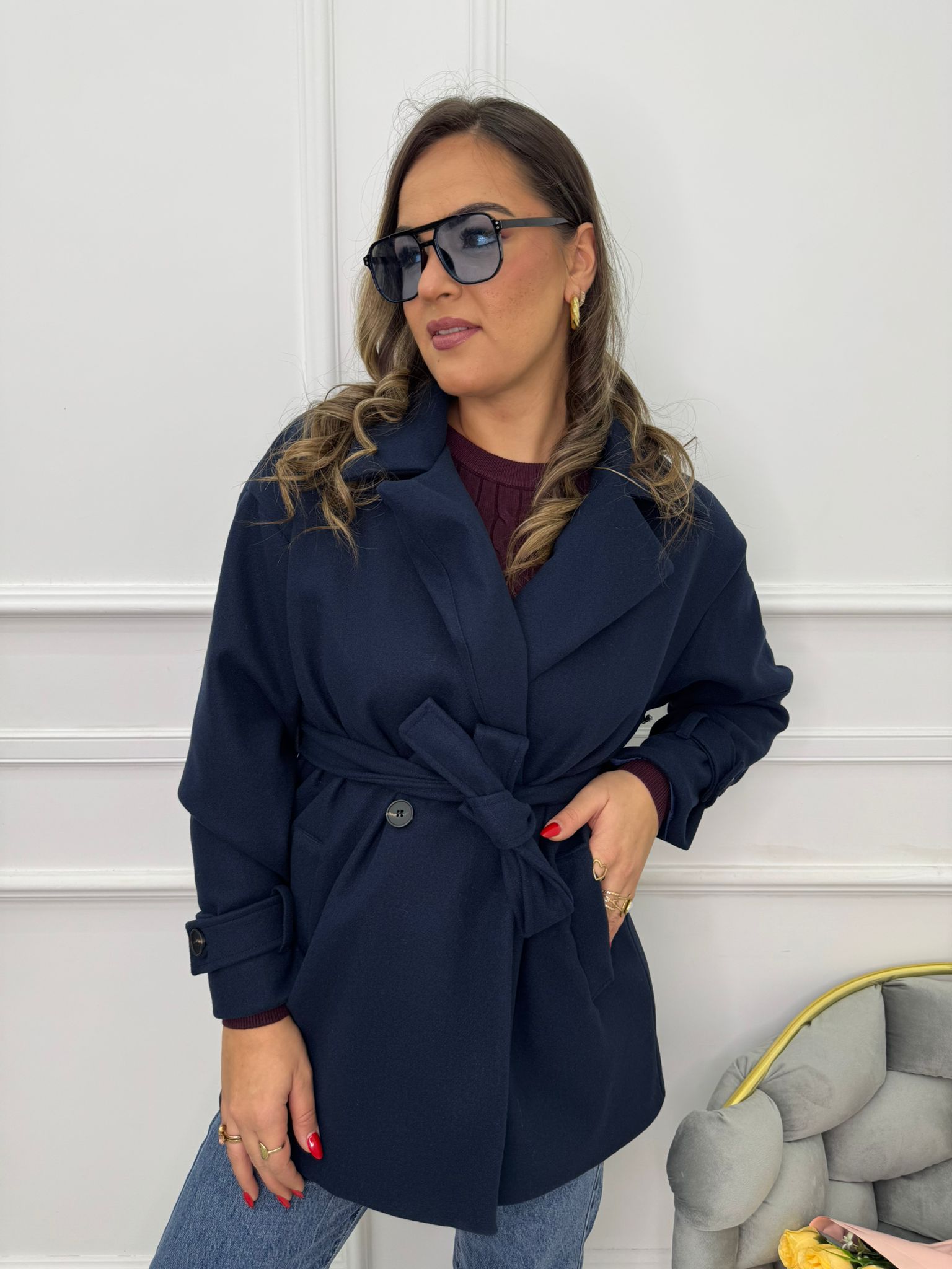 Cappotto corto con cintura in vita