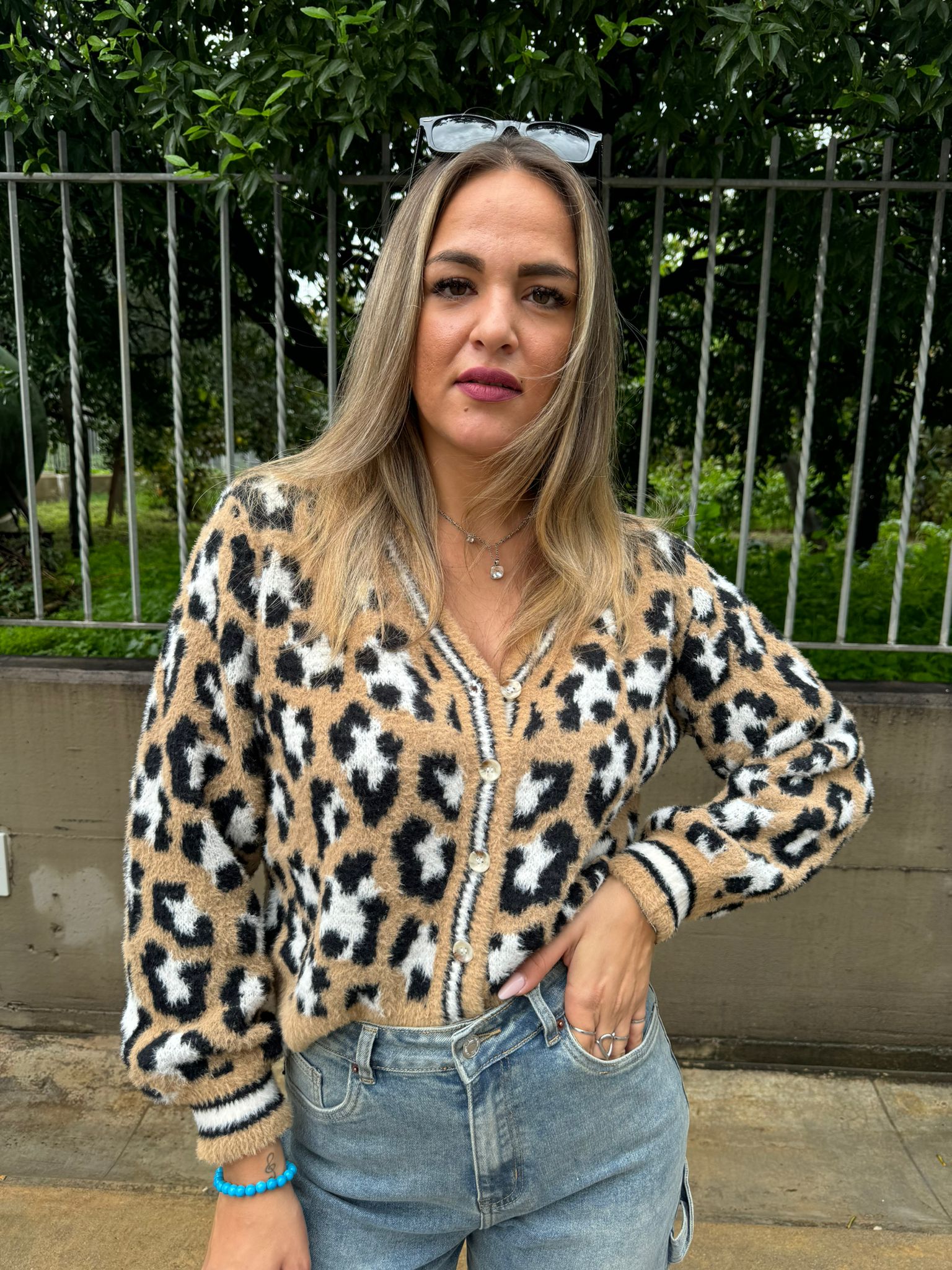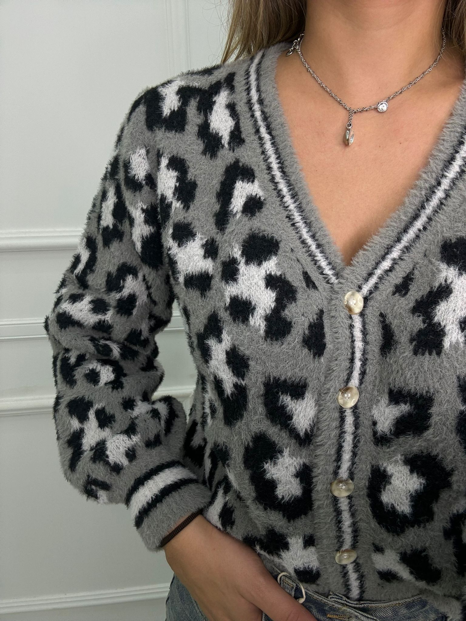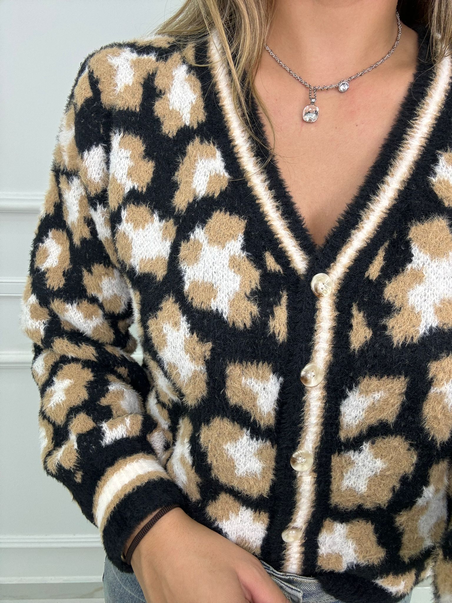 Cardigan animalier scollo a V