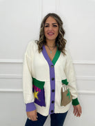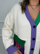 Cardigan colorato modello over con stampe colorate