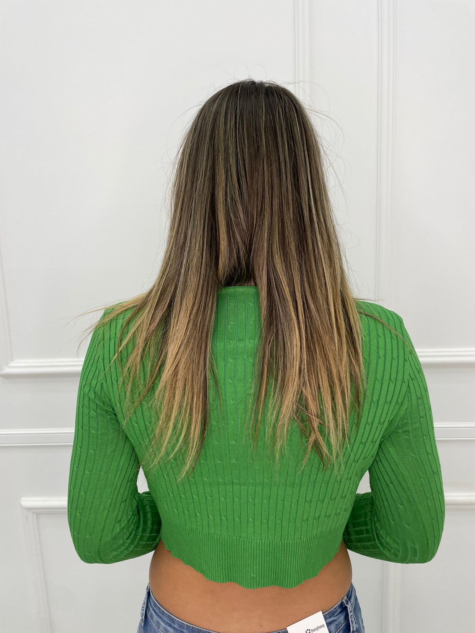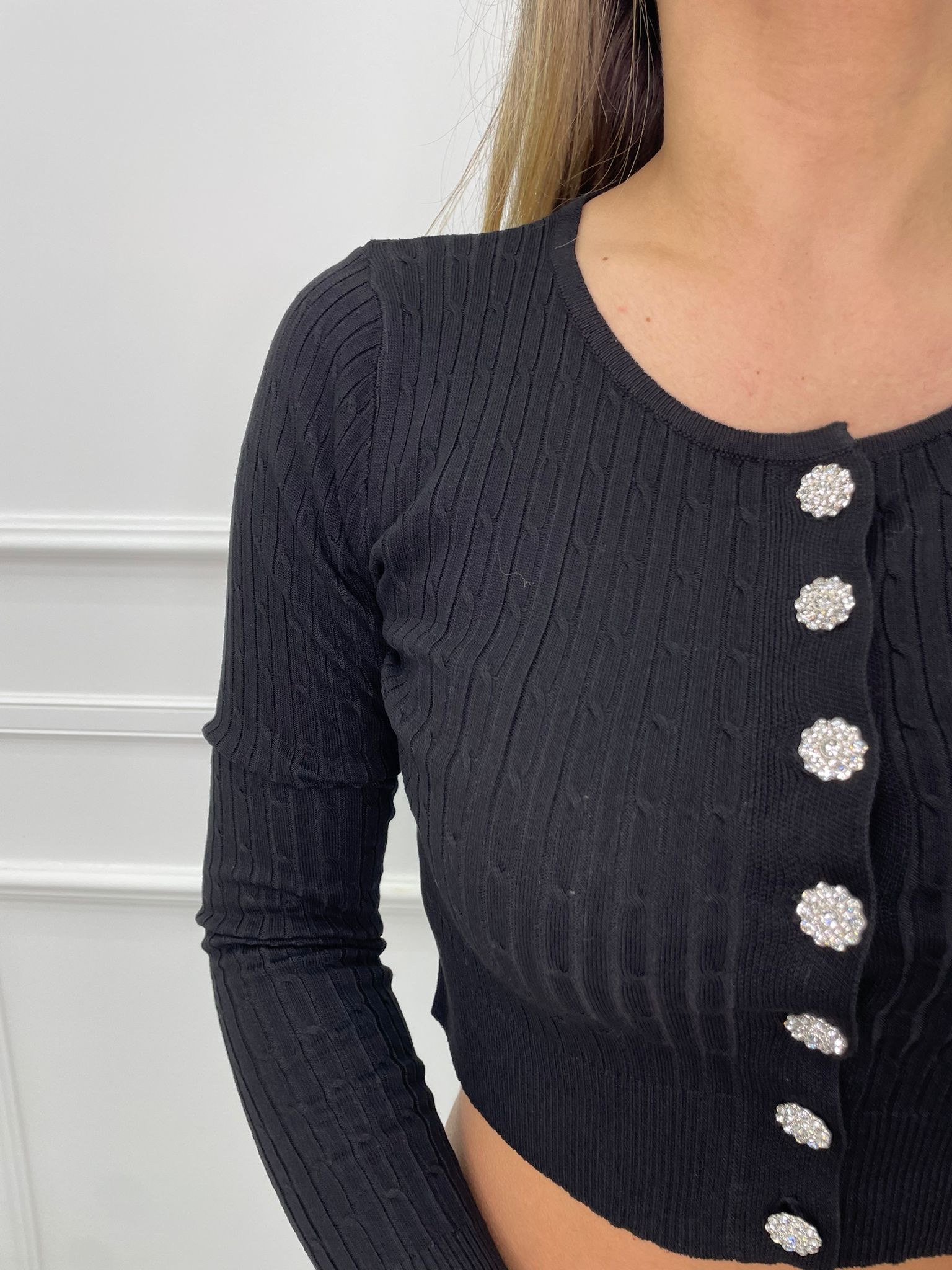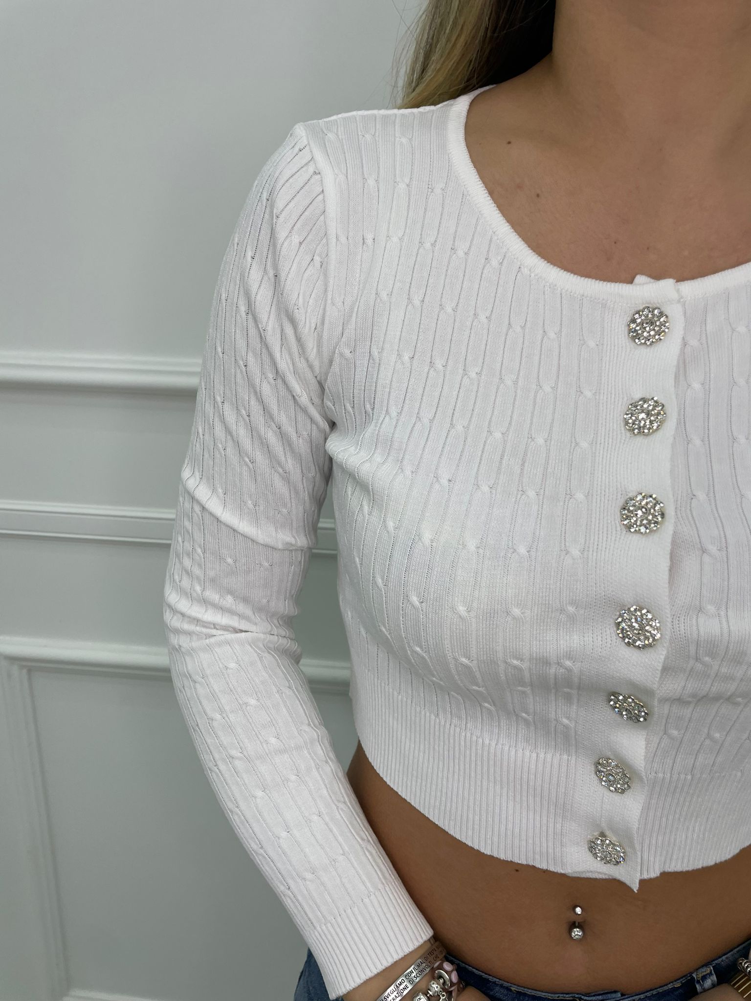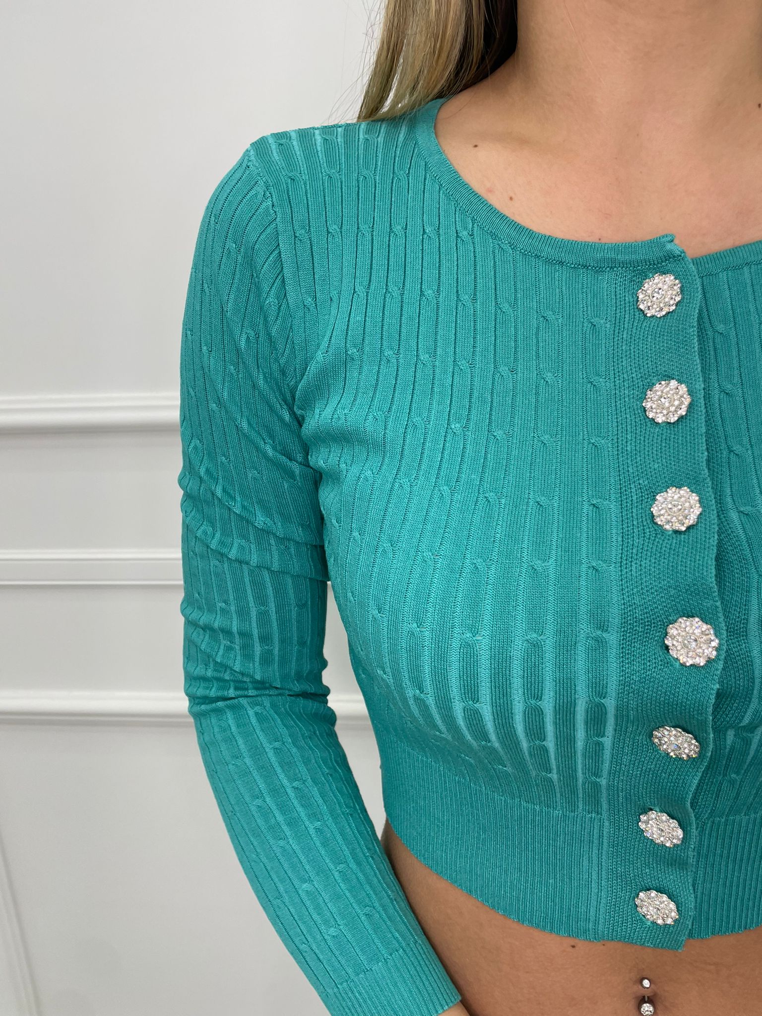 Cardigan in filo crop con bottoni gioiello