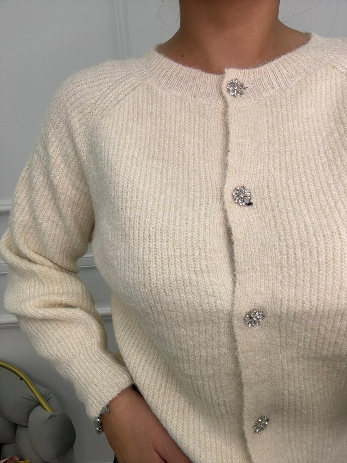 Cardigan in lana con bottoni gioiello