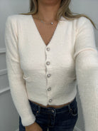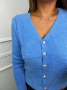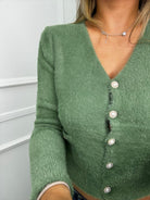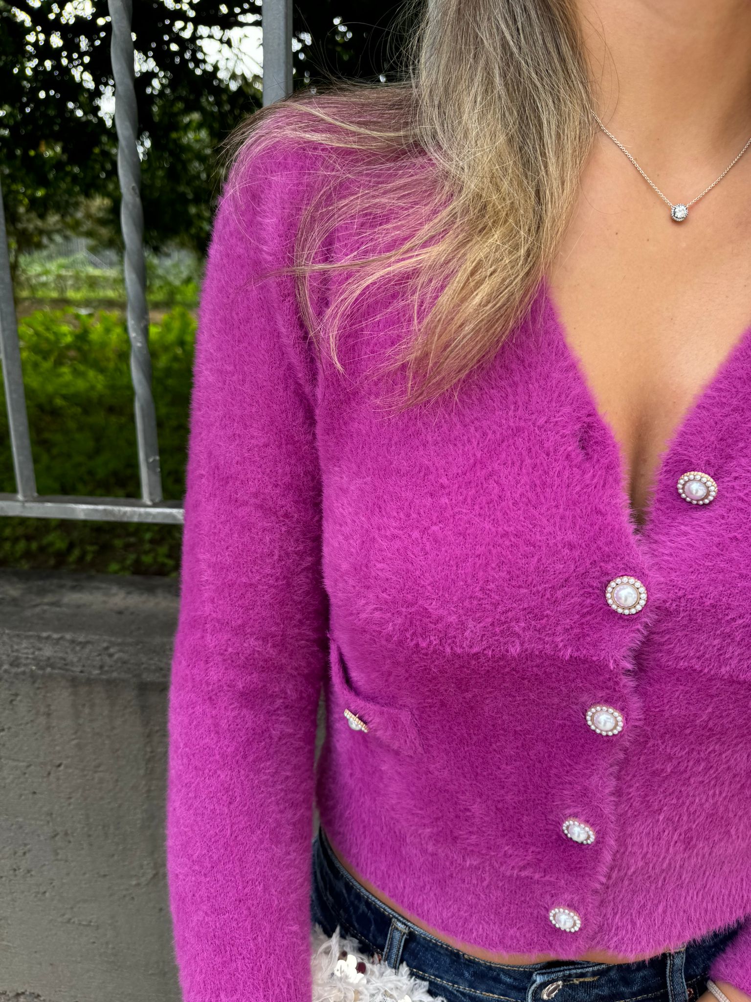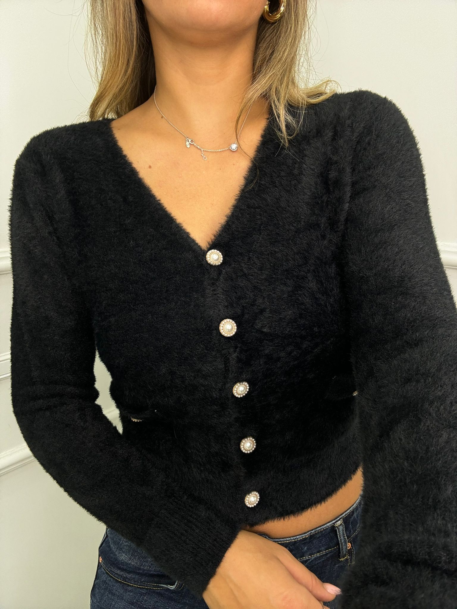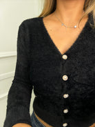 Cardigan in pelo con bottoni gioiello