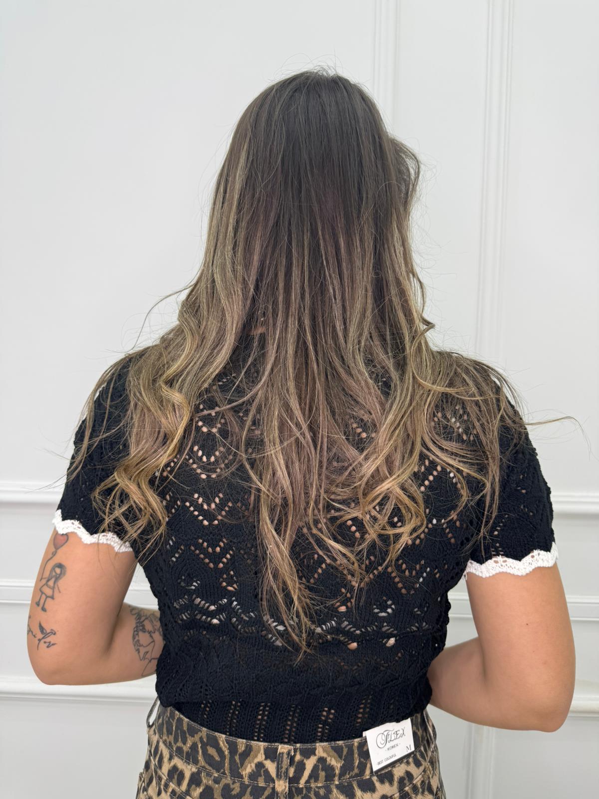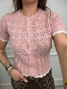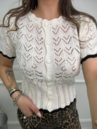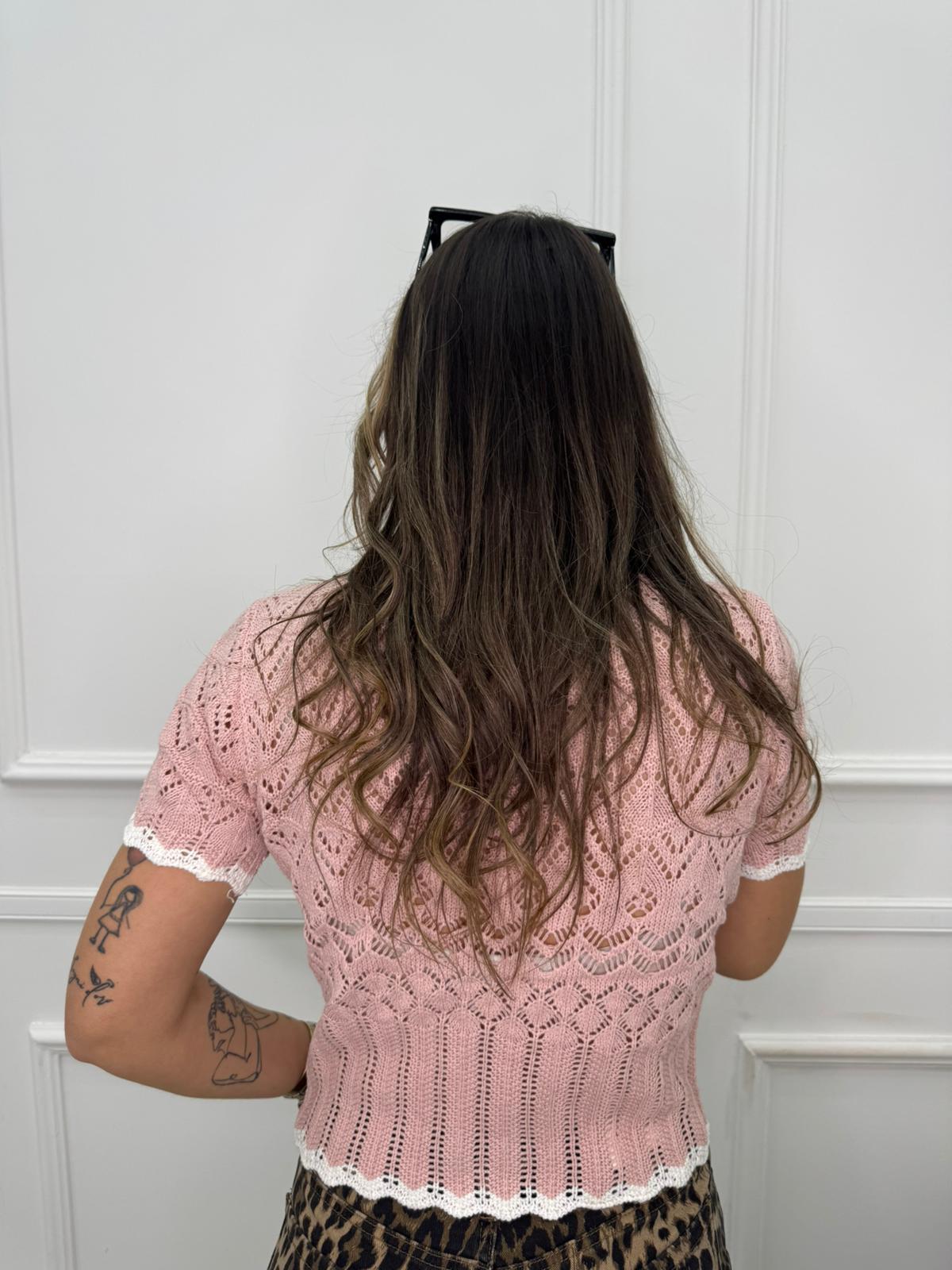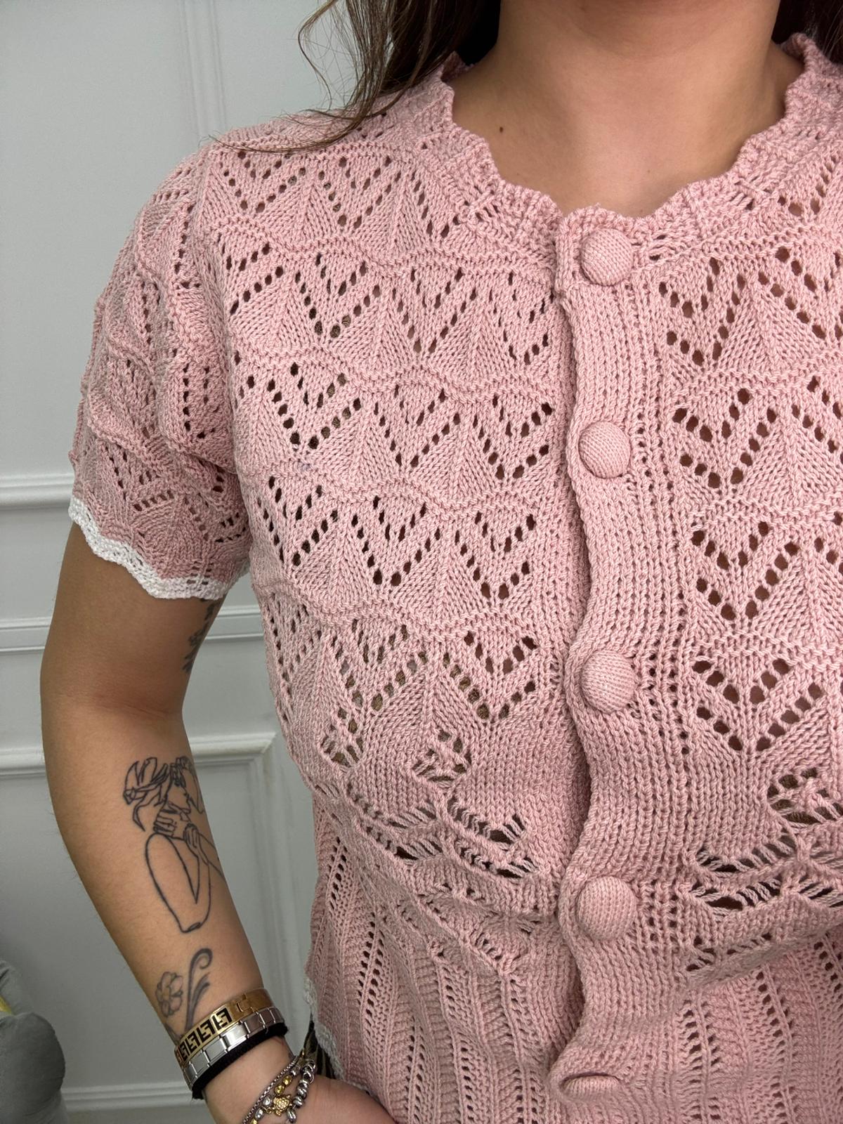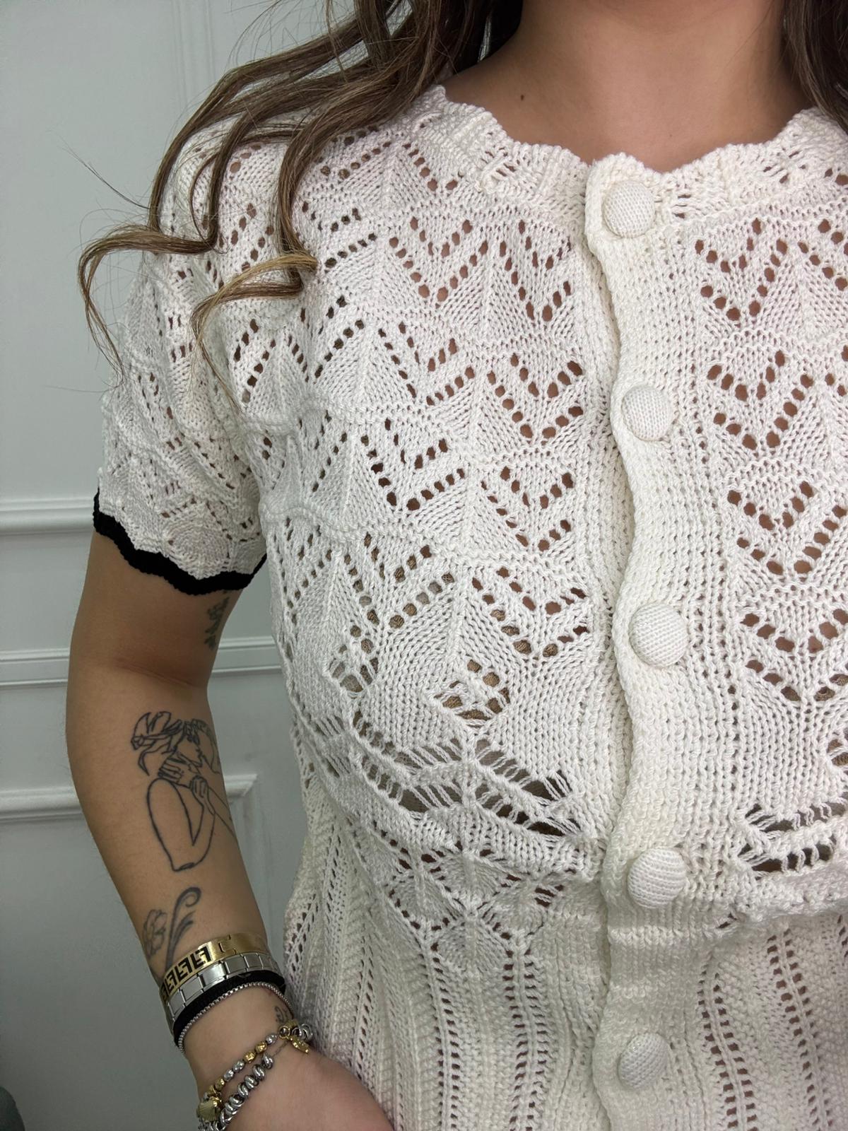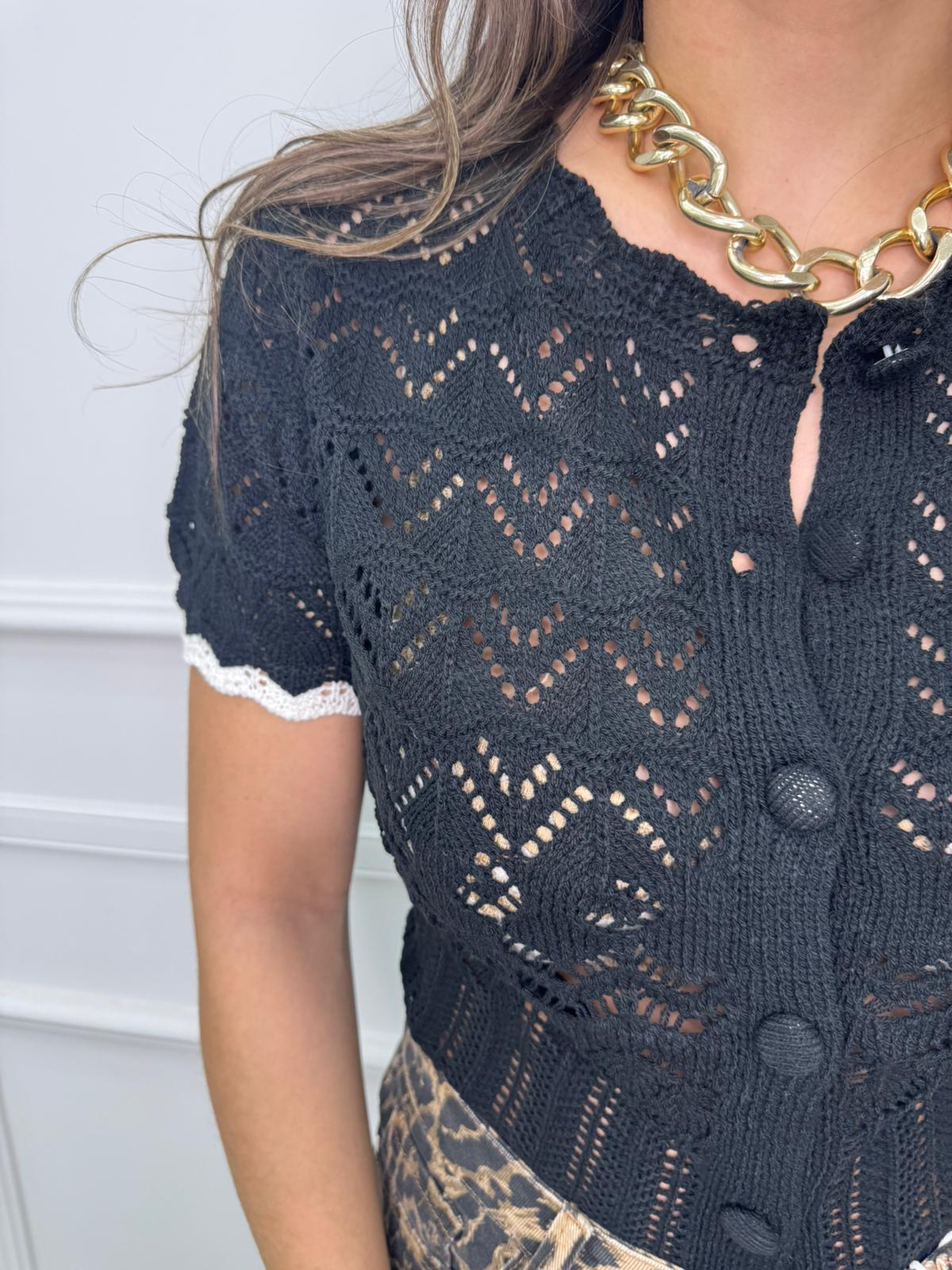 Cardigan mezza manica traforato tinta unita