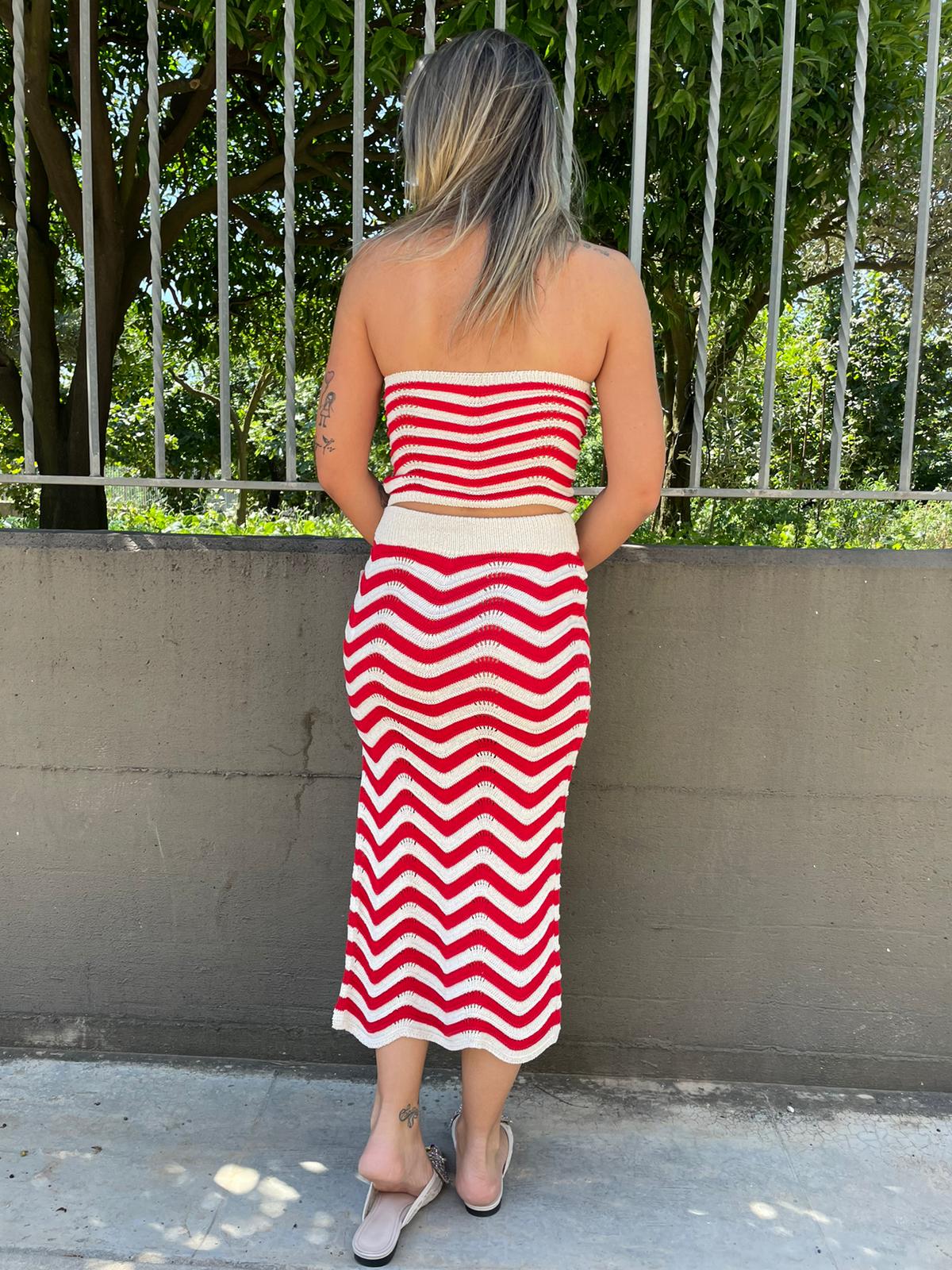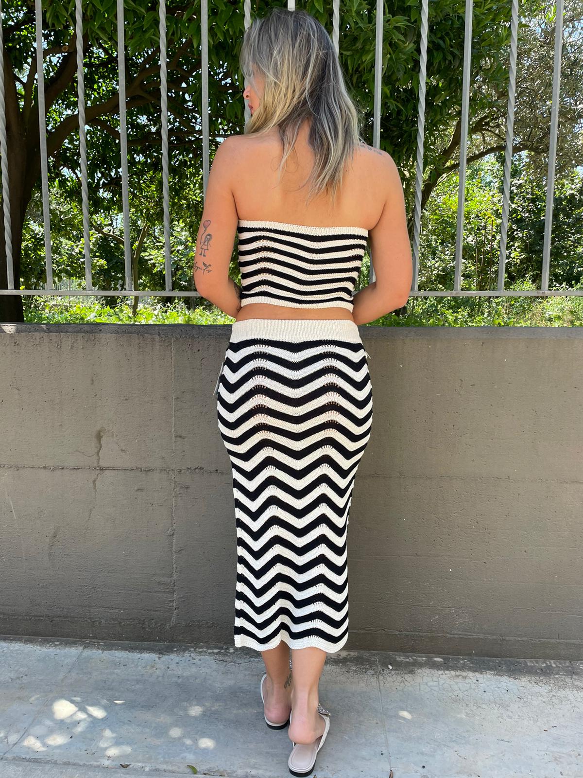 Coordinato 2 pezzi a fantasia con gonna lunga