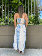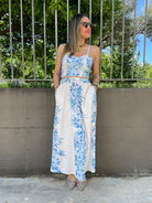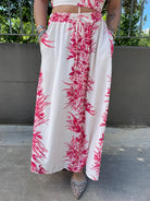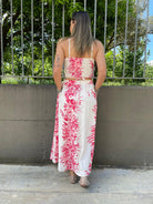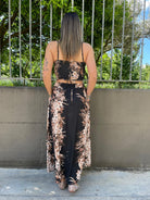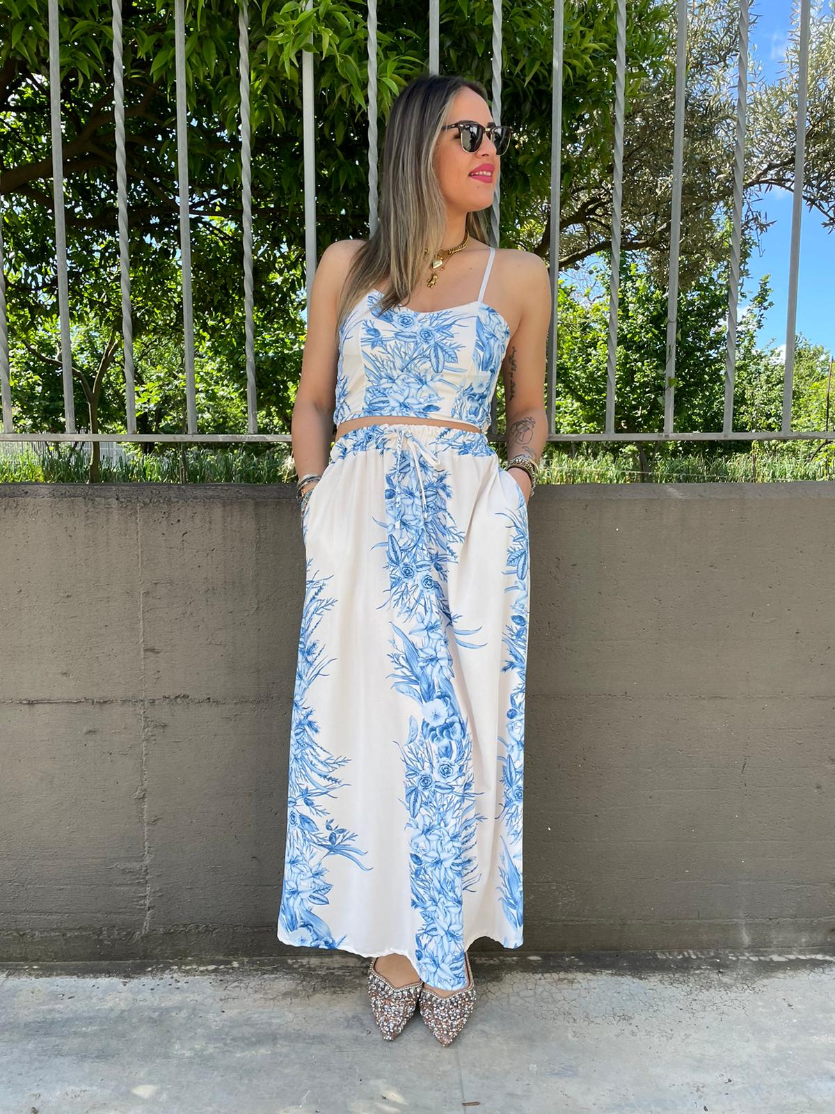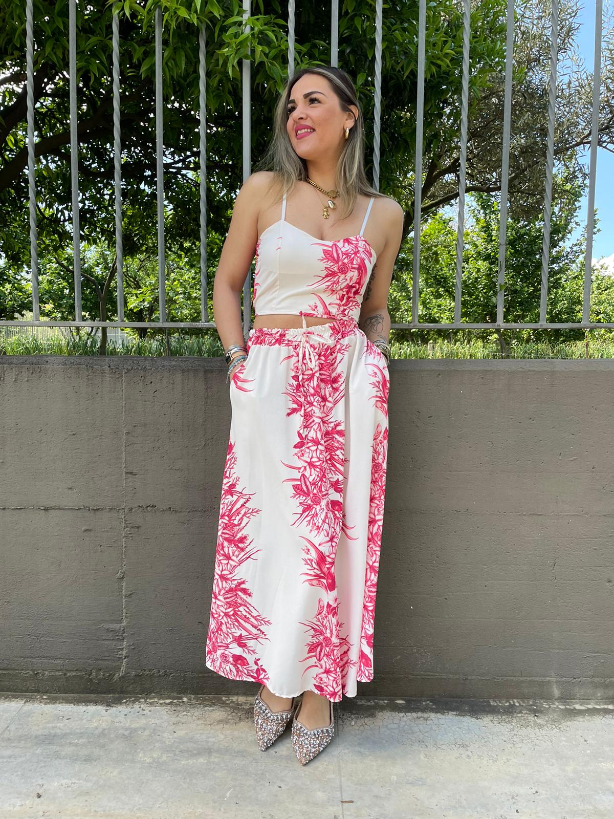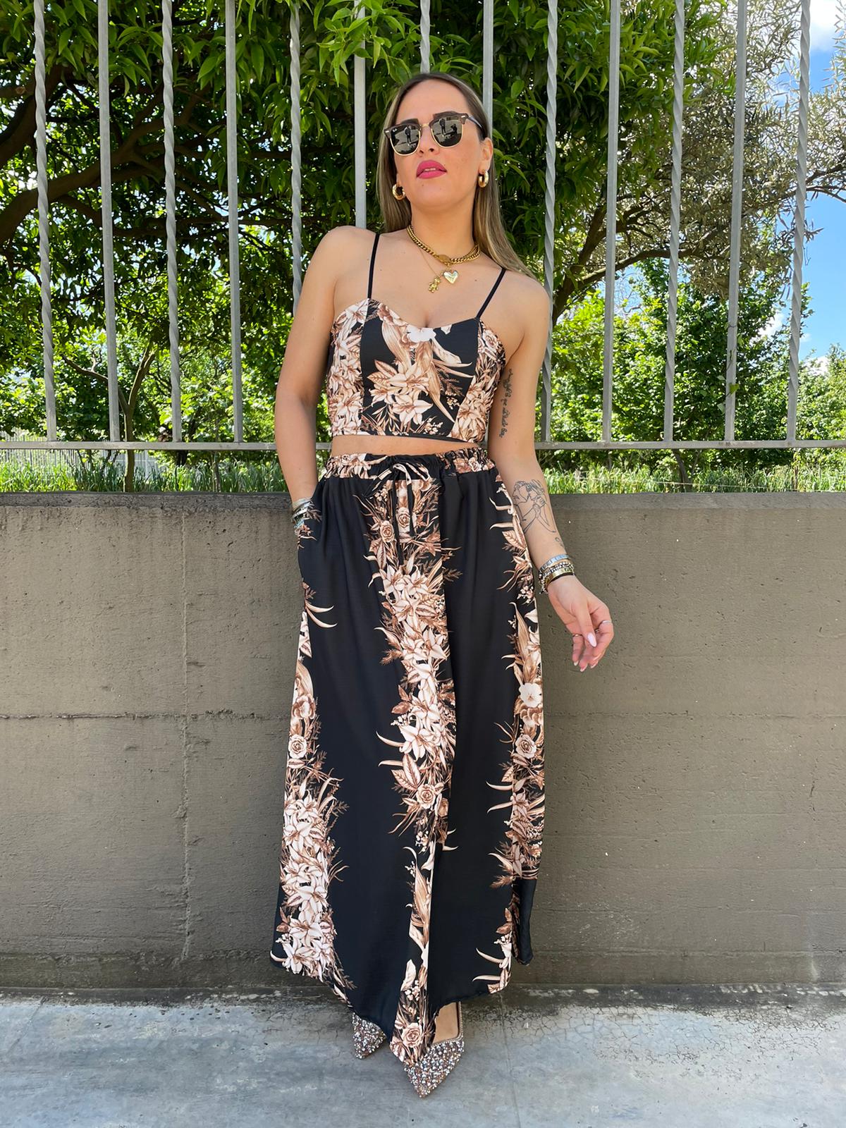 Coordinato 2 pezzi a fantasia con gonna lunga e top crop