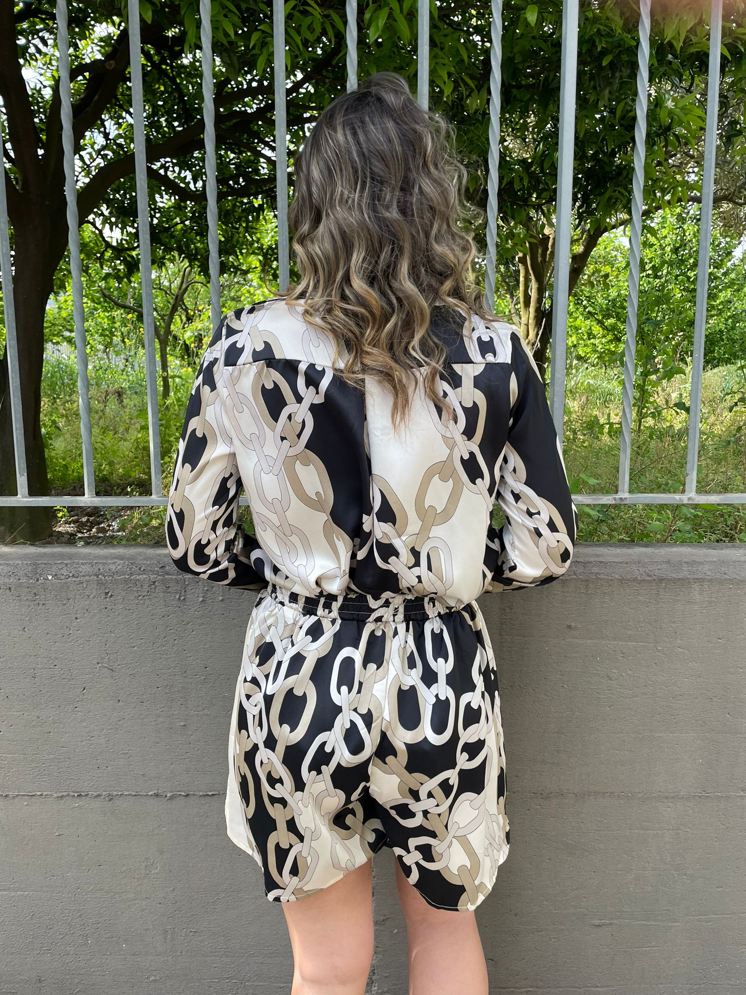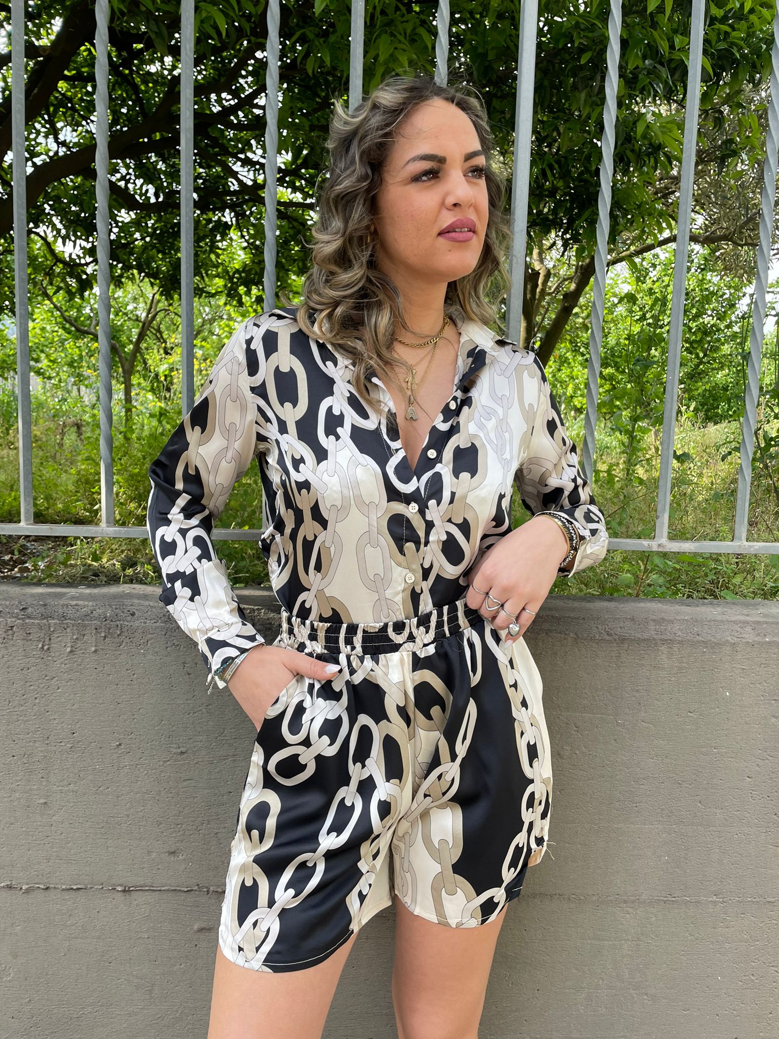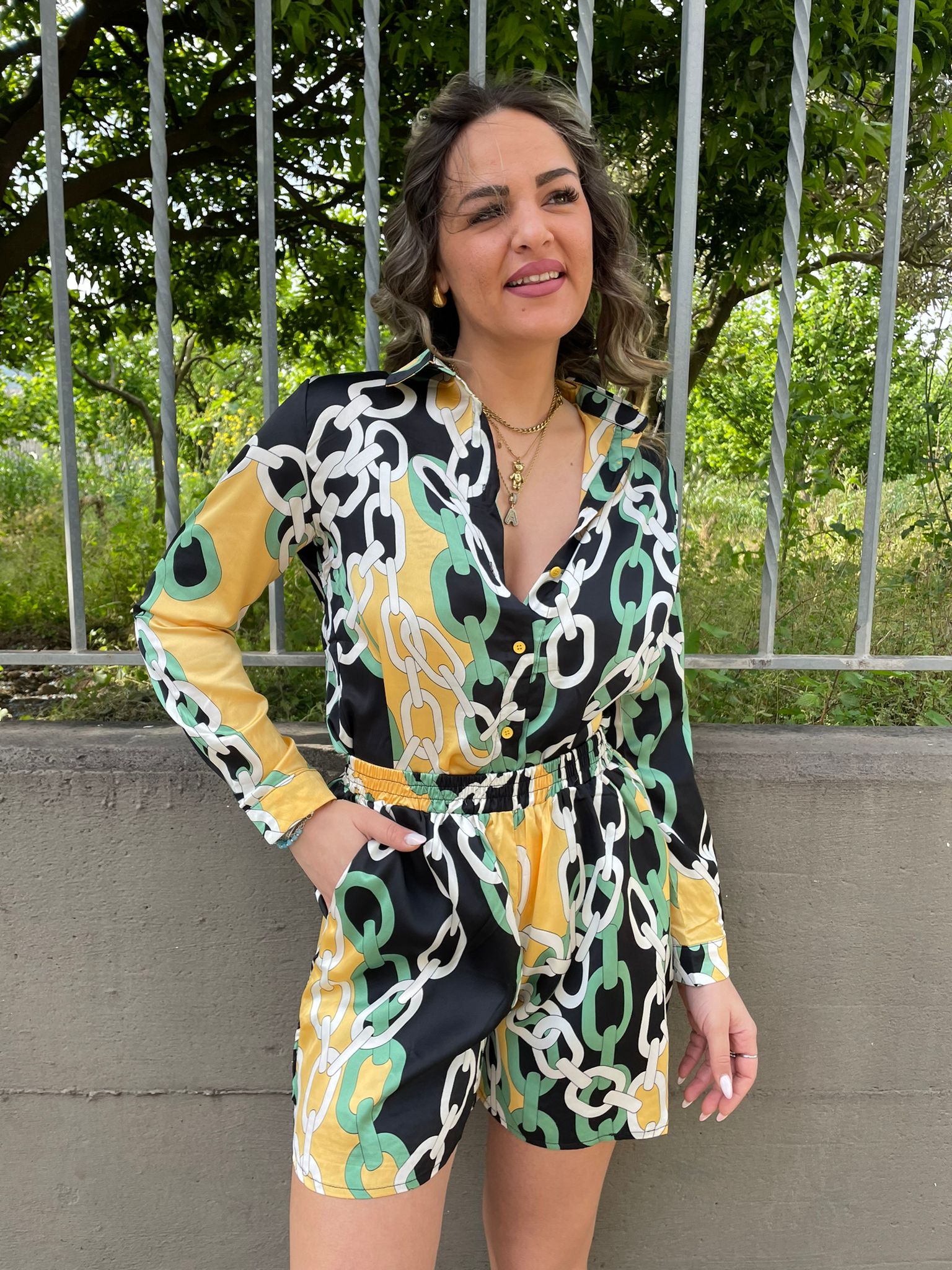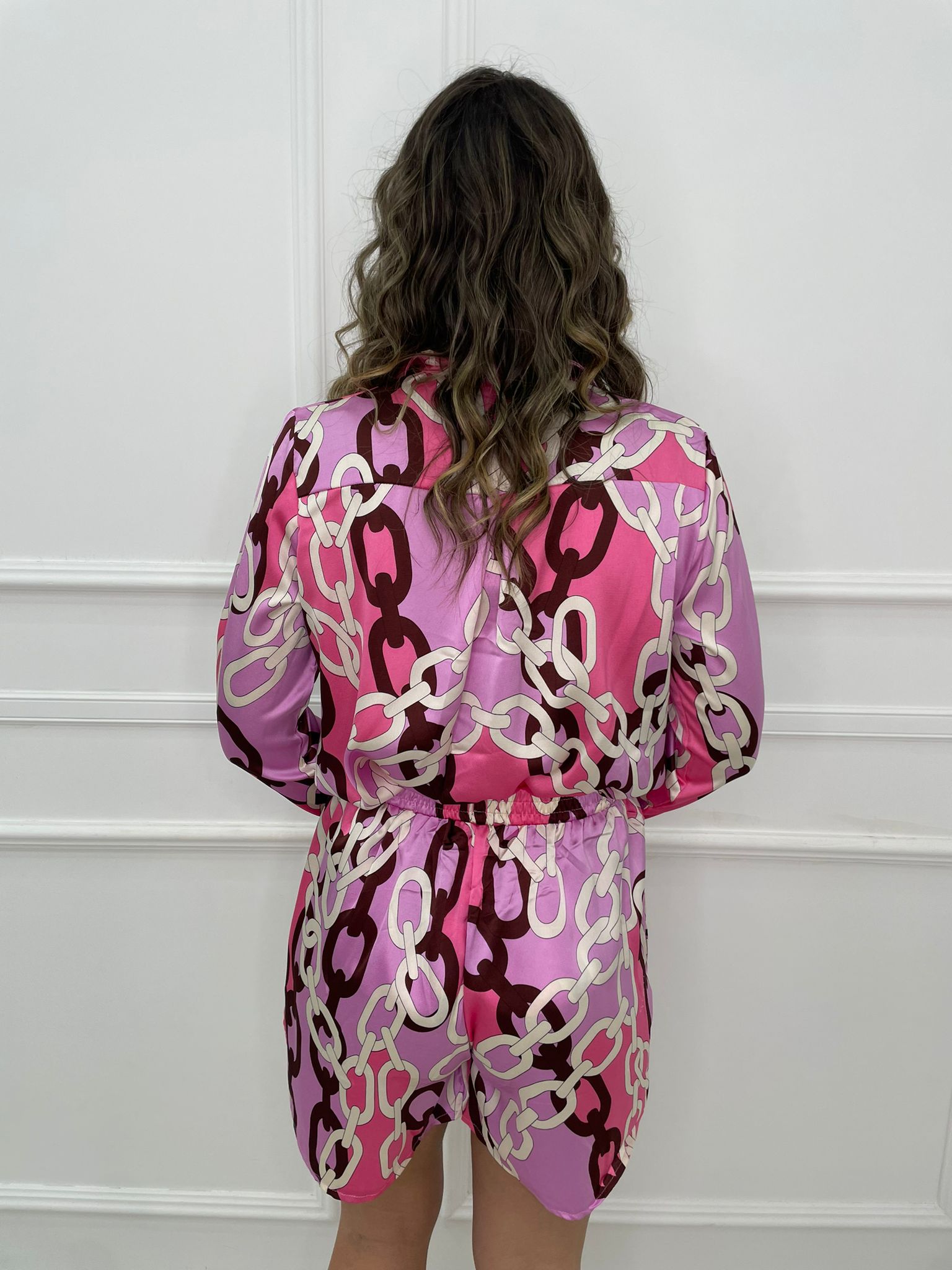 Coordinato 2 pezzi con camicia e shorts effetto seta