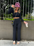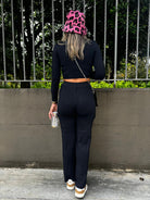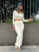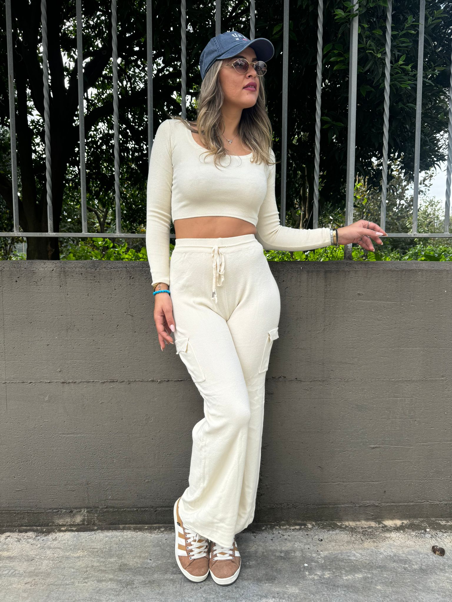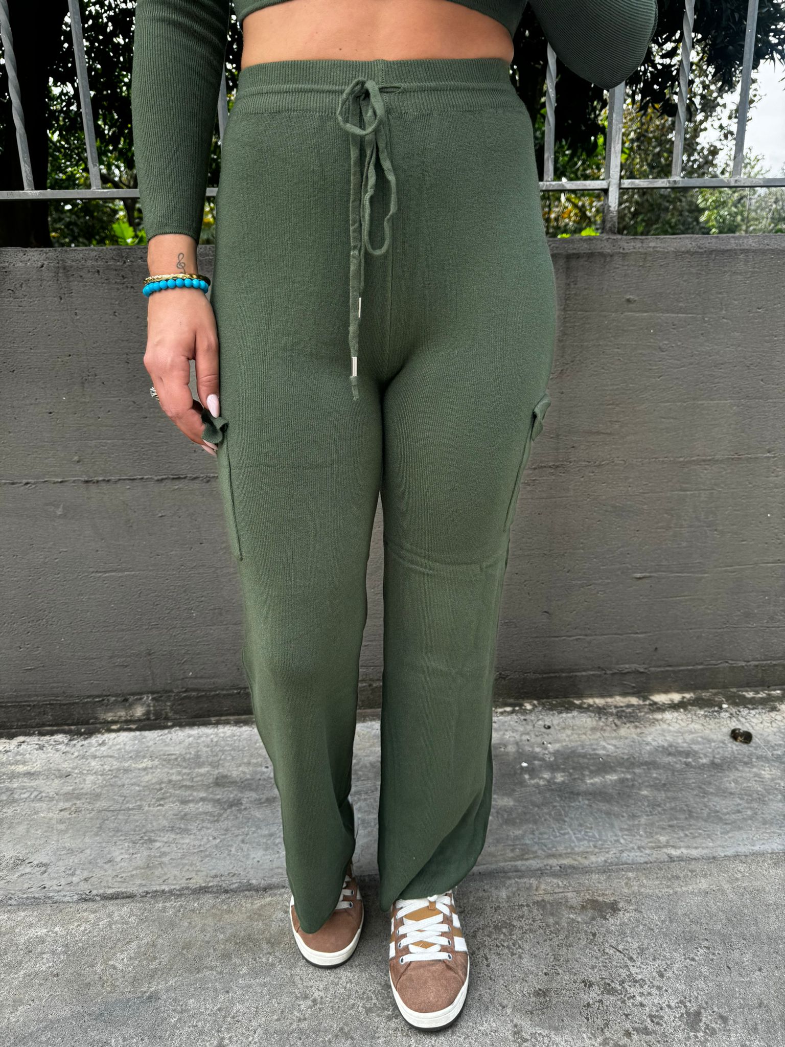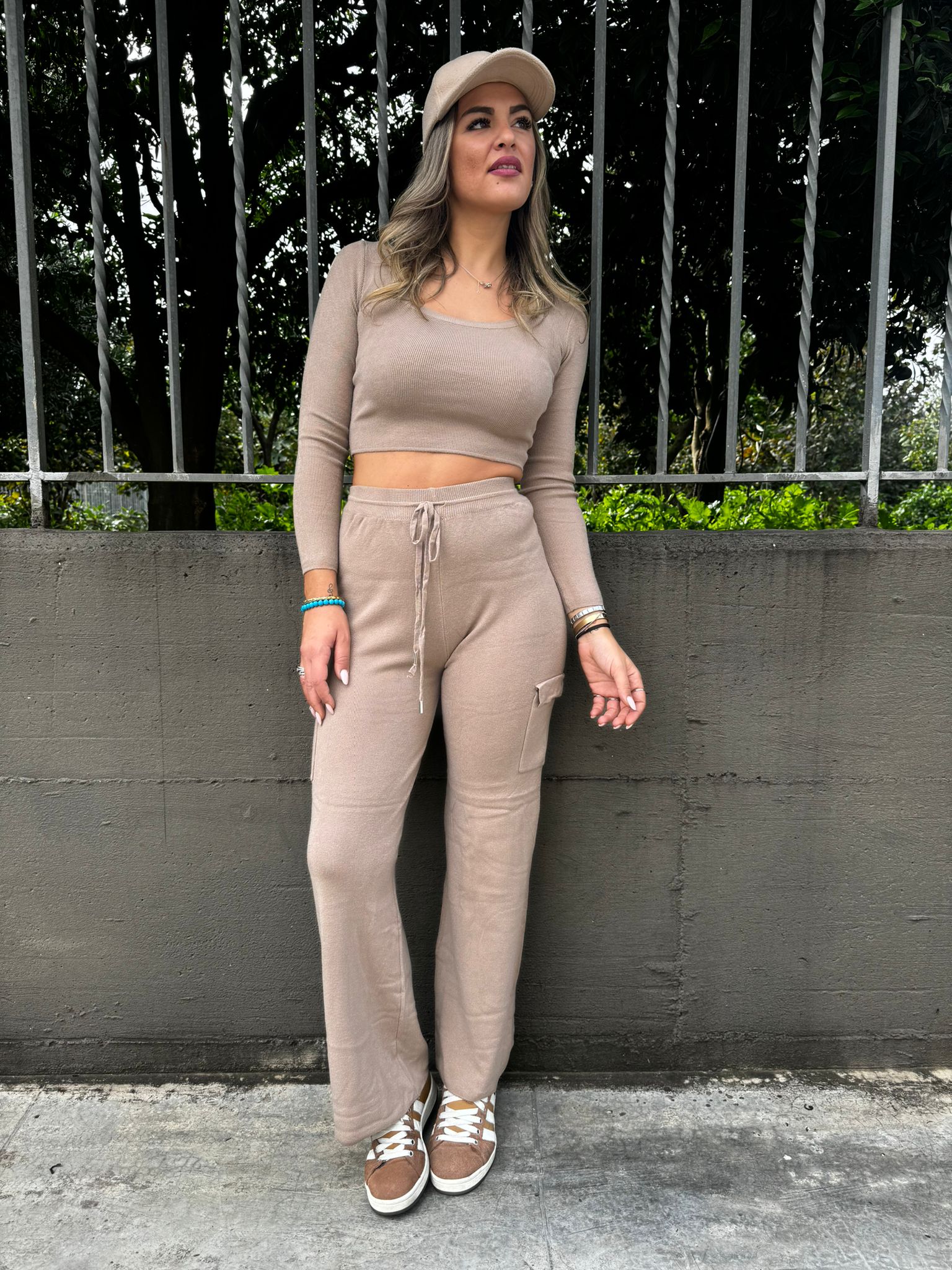 Coordinato 2 pezzi con maglia crop e pantalone con tasconi