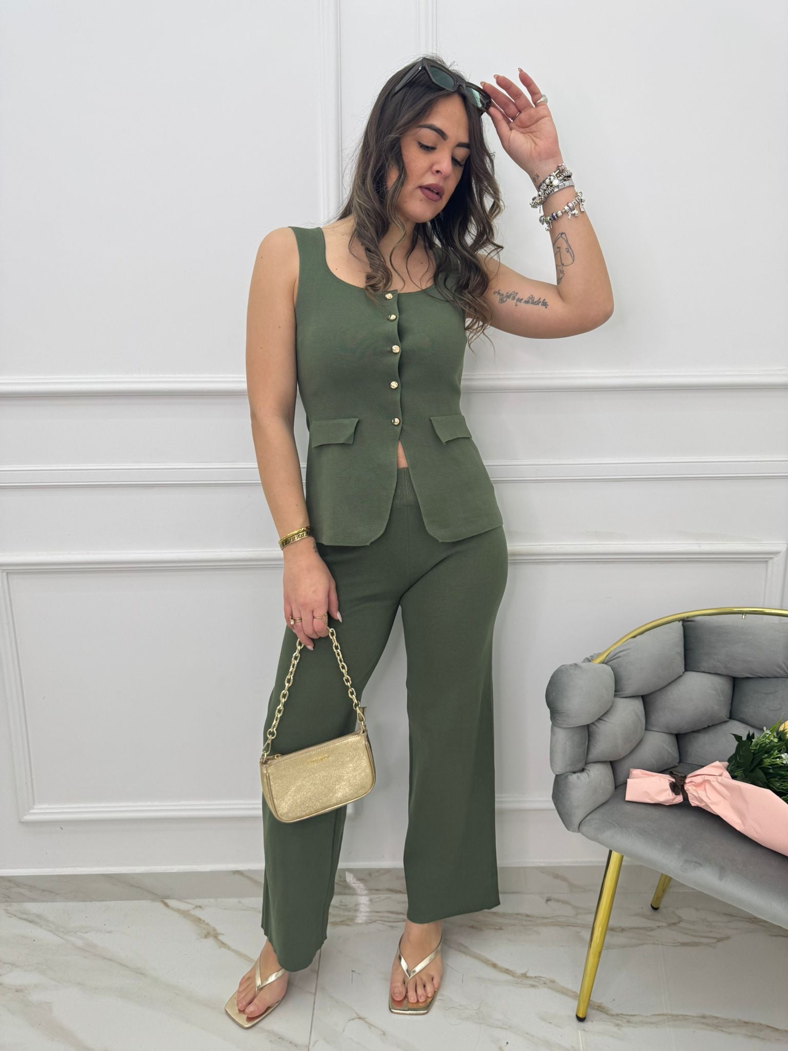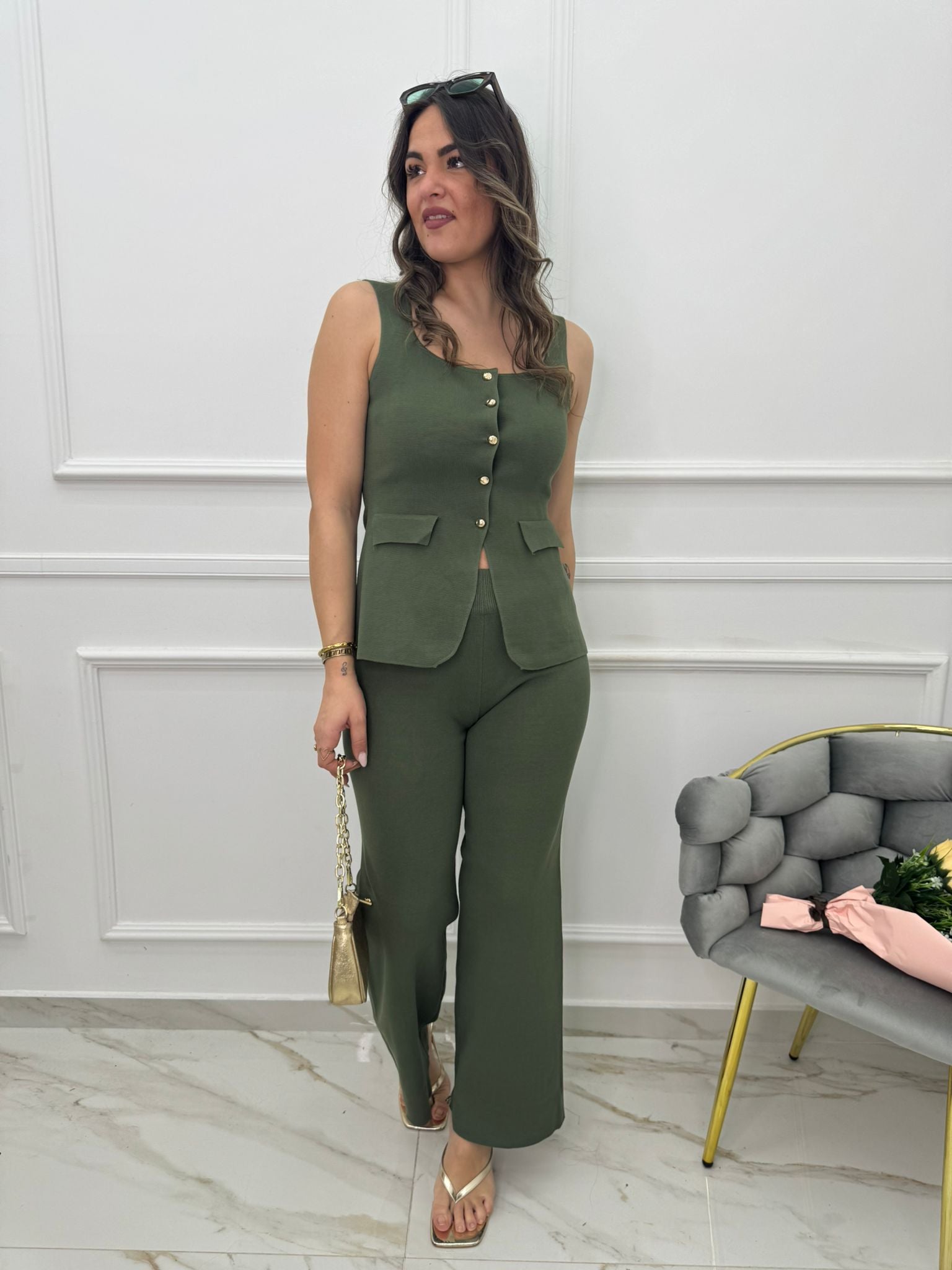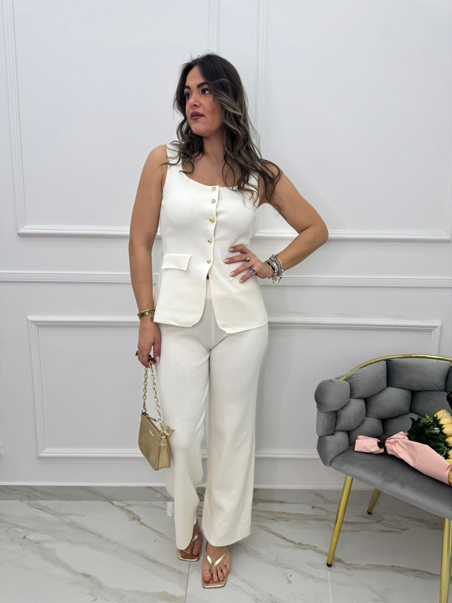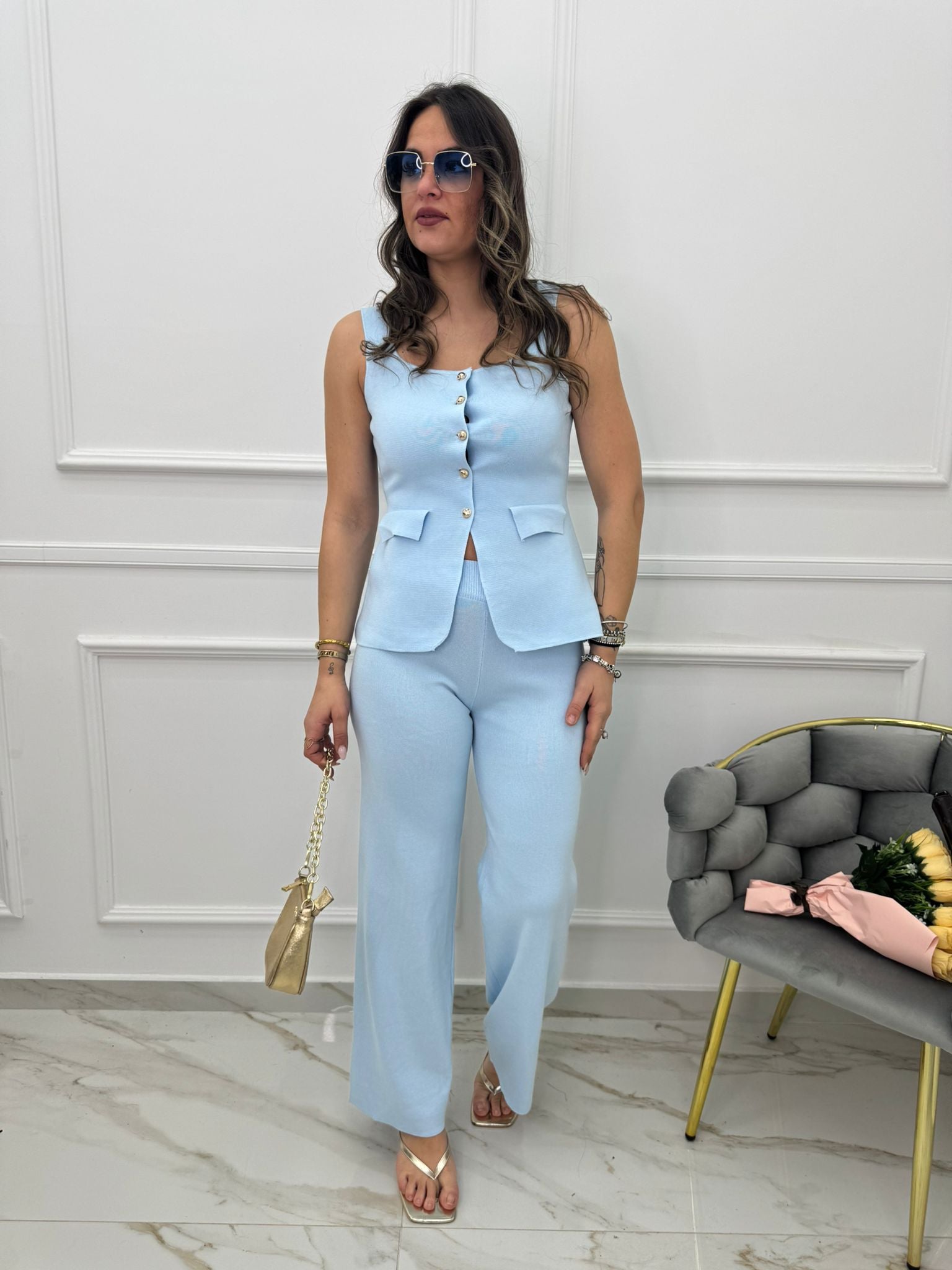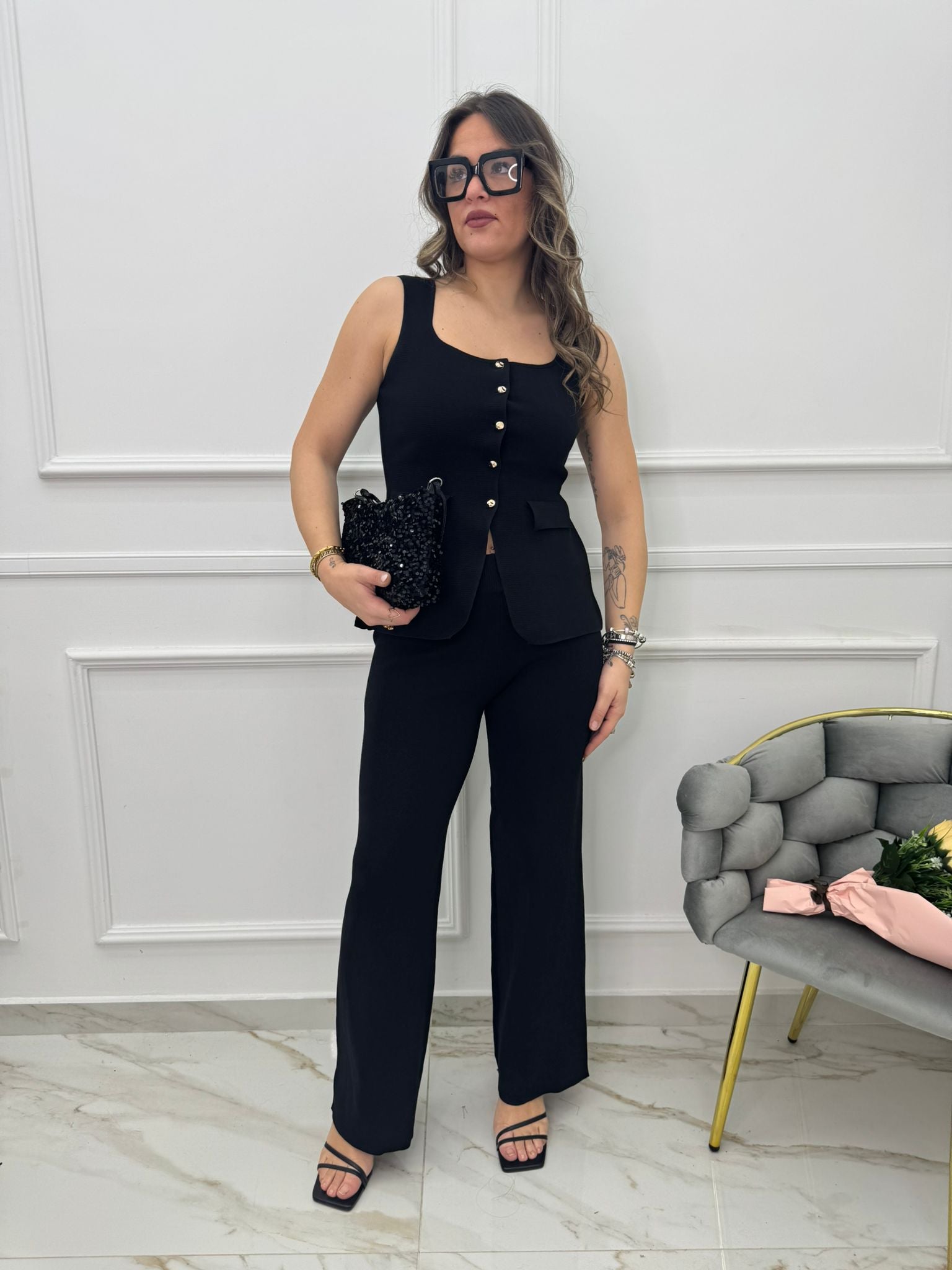 Coordinato 2 pezzi con pantalone palazzo e gilet