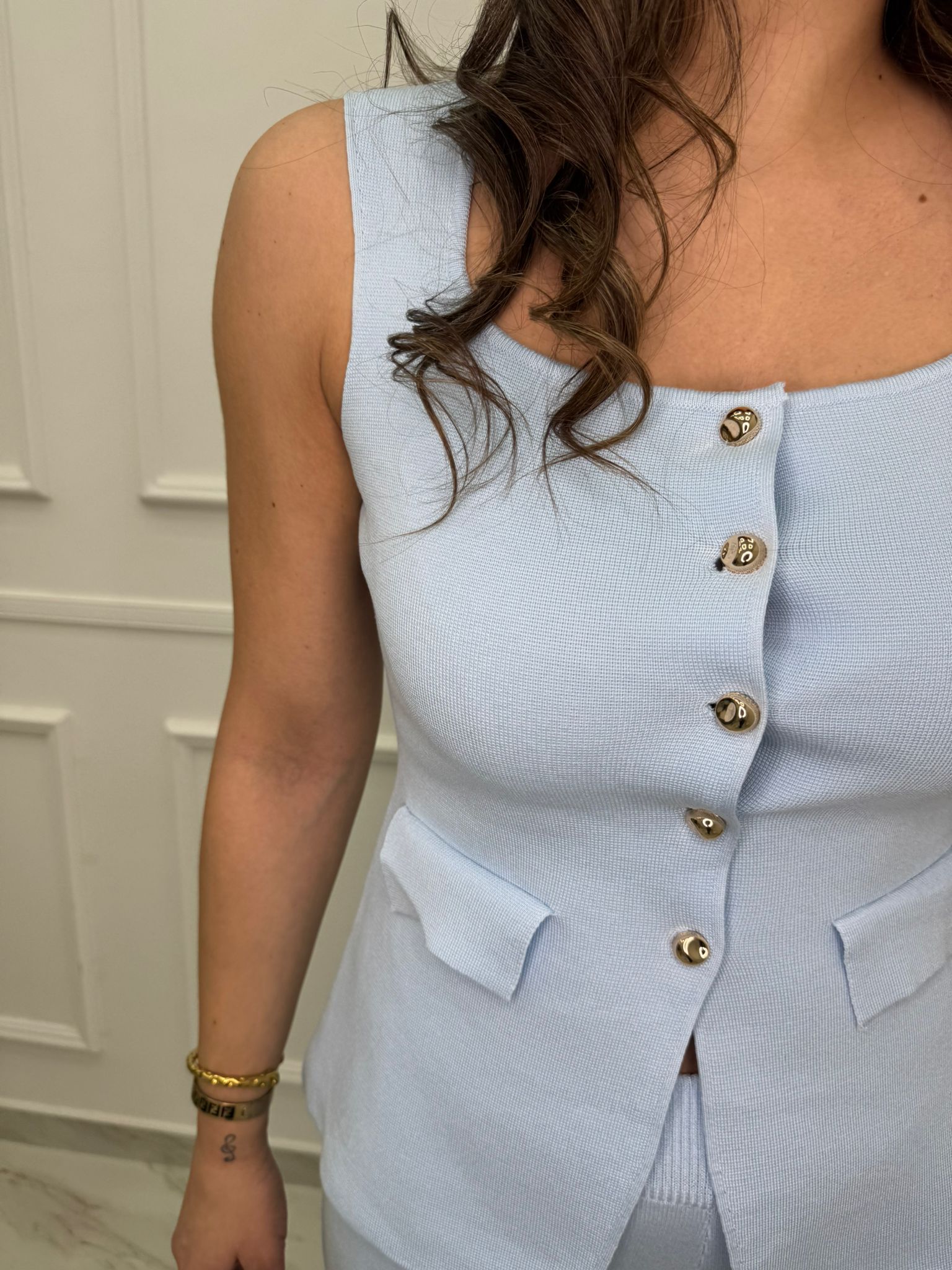 - Gilet con bottoni oro