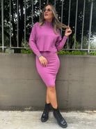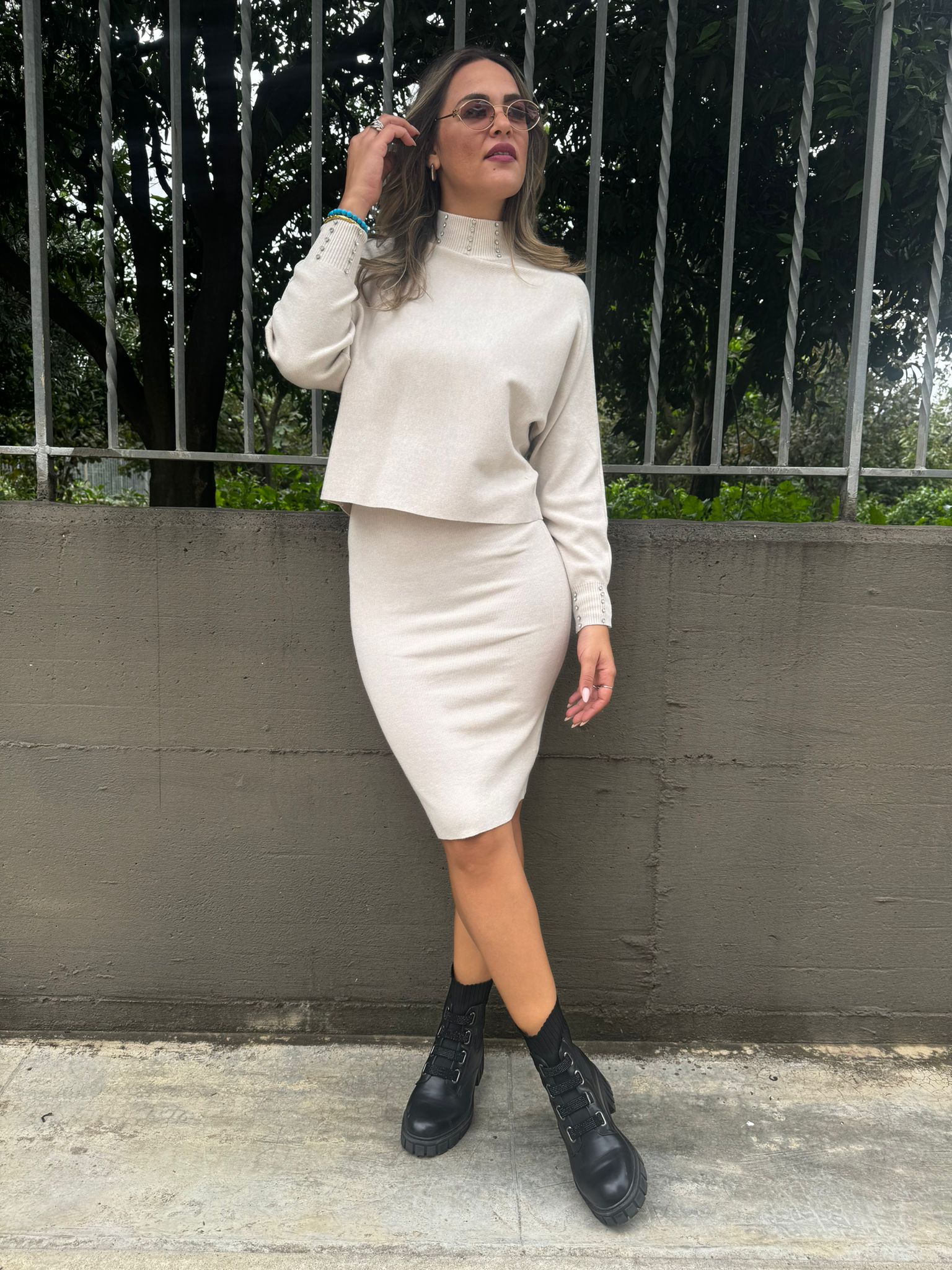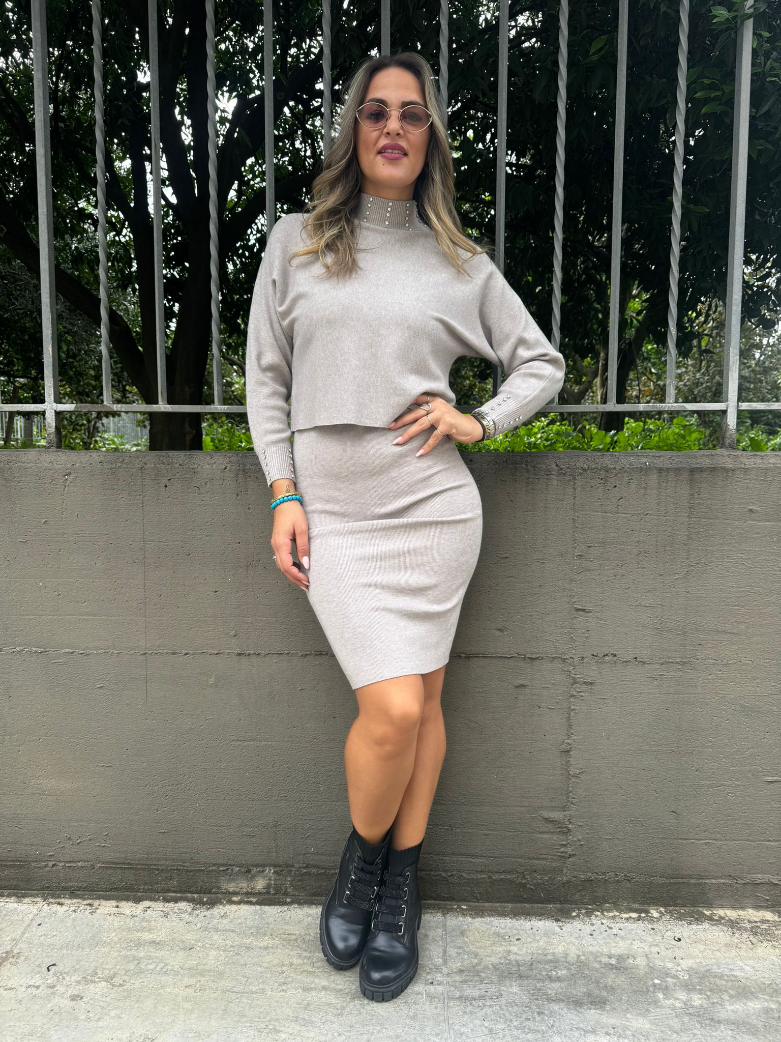 Coordinato 2 pezzi con vestito e maglia mezzo collo