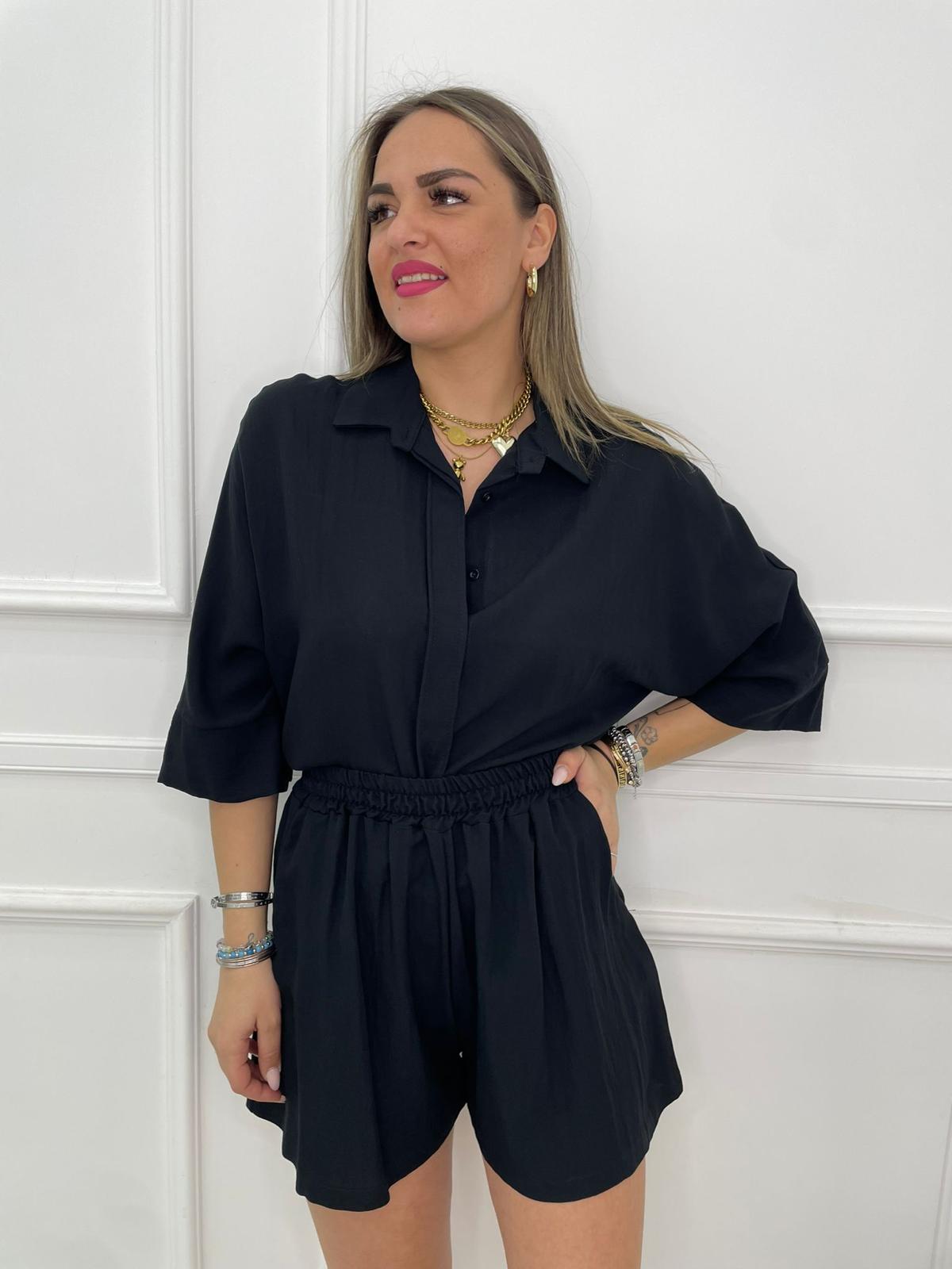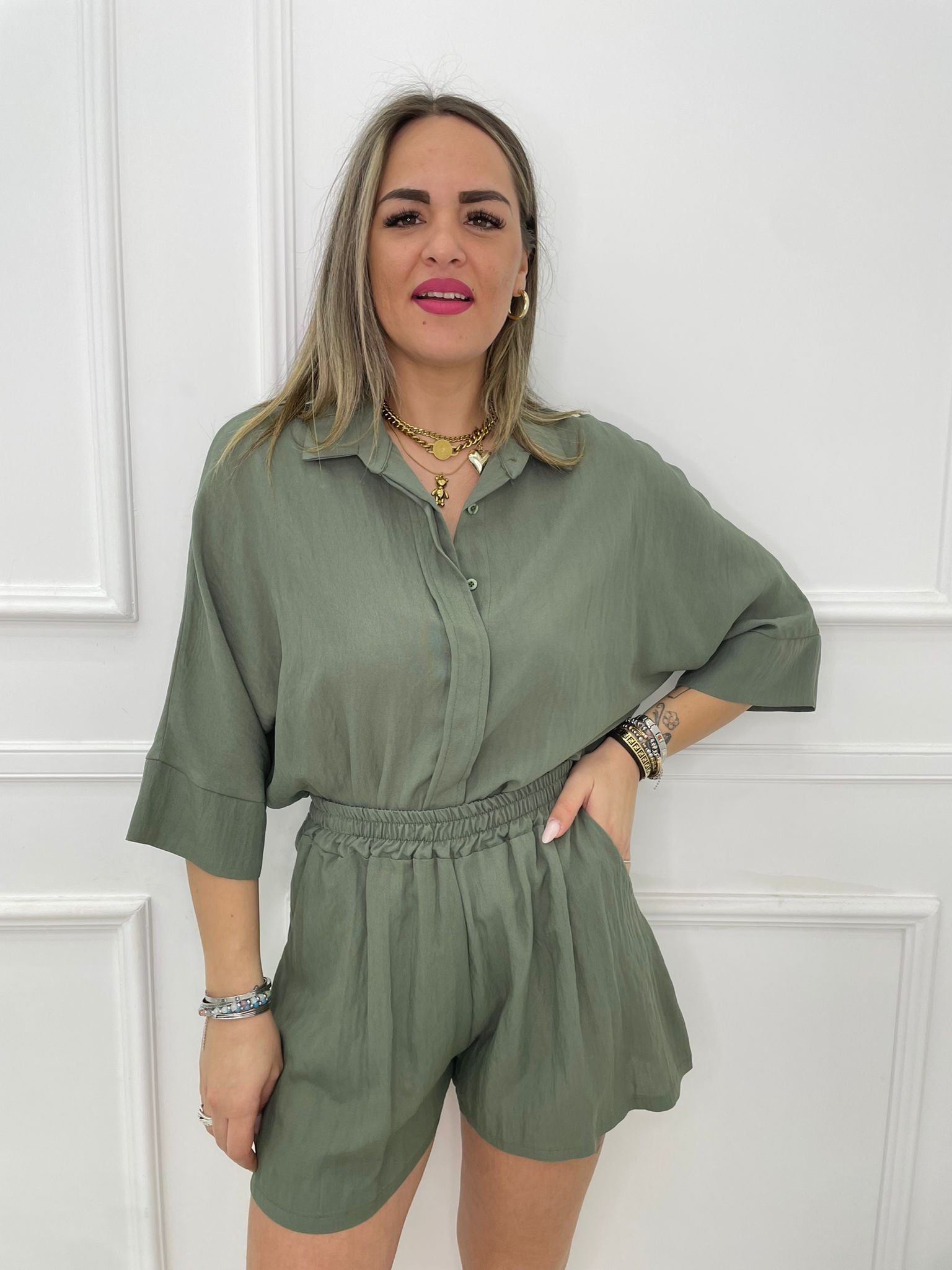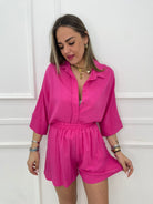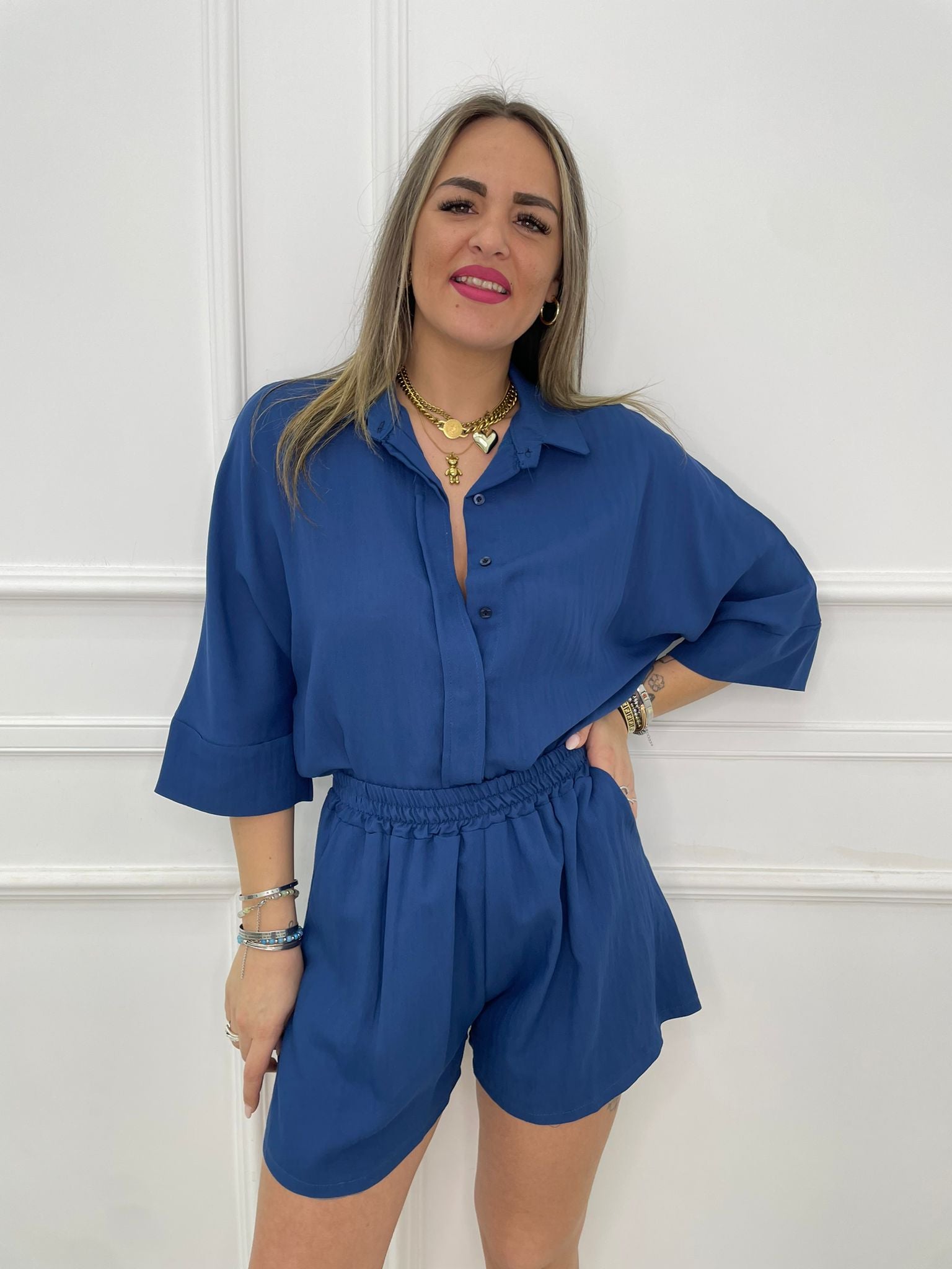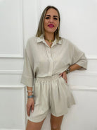 Coordinato 2 pezzi effetto lino con shorts scampanato