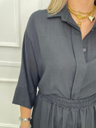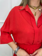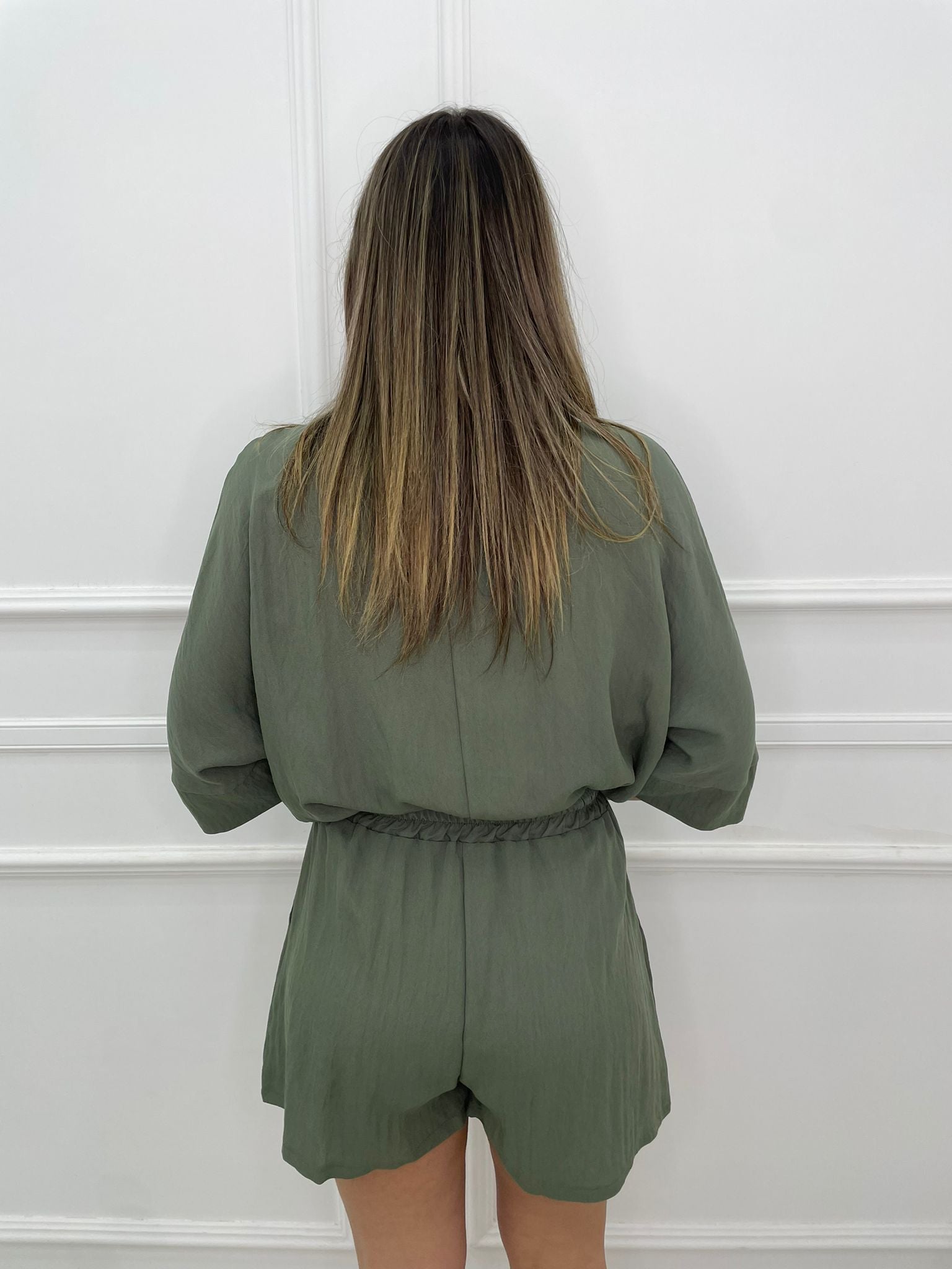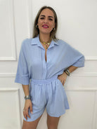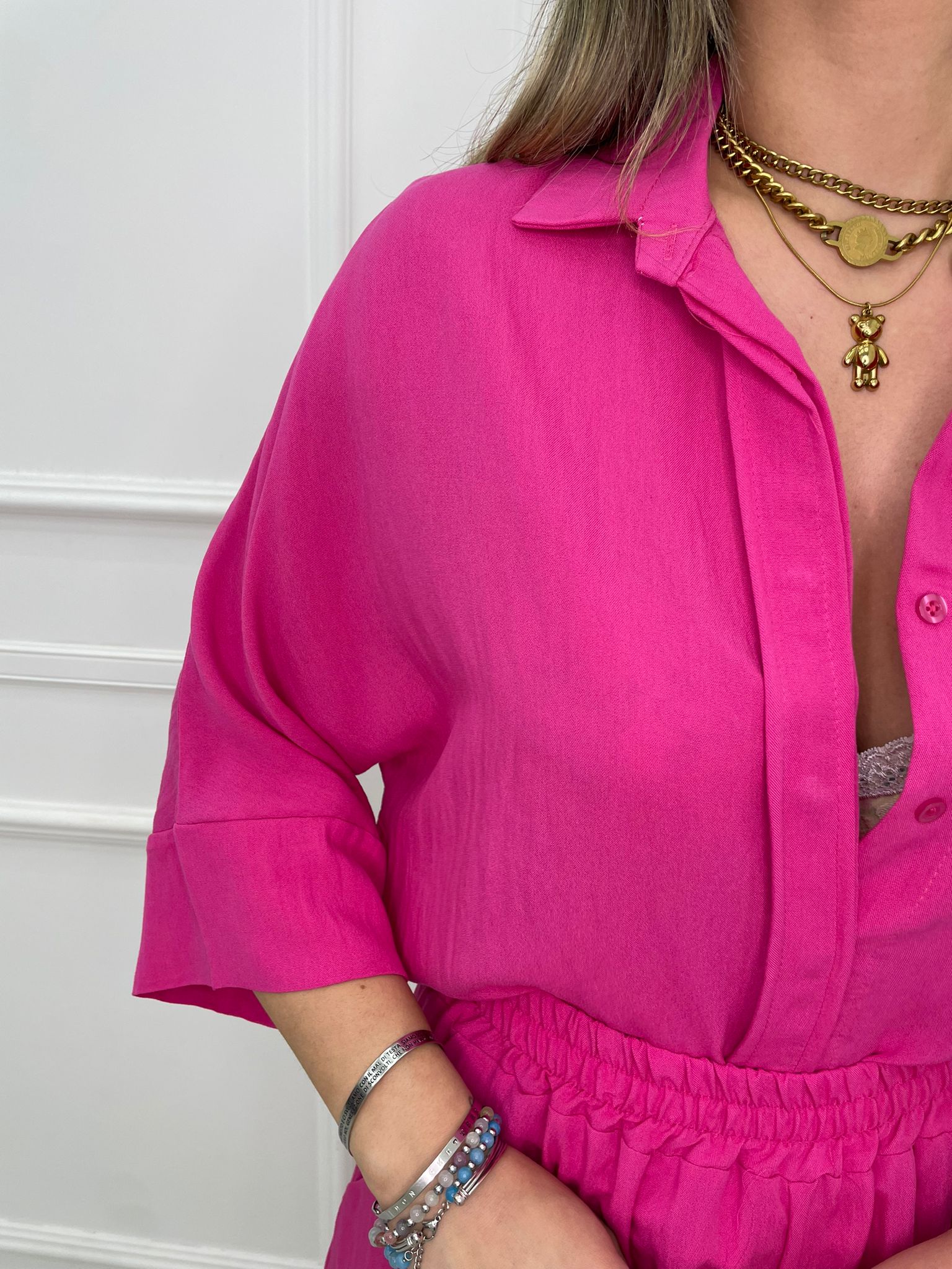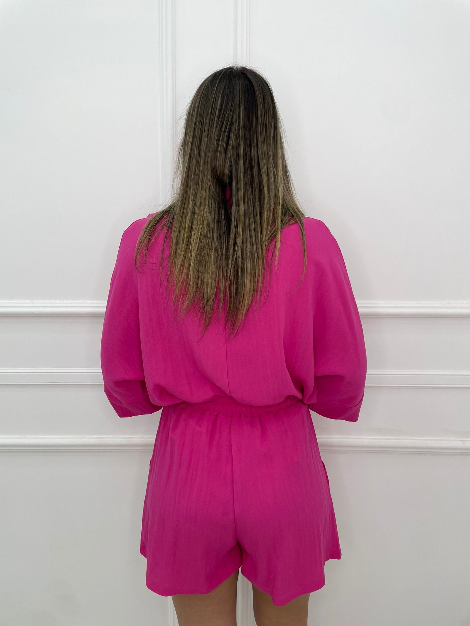 Coordinato 2 pezzi effetto lino con shorts scampanato