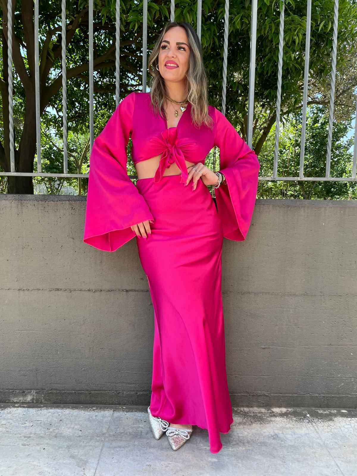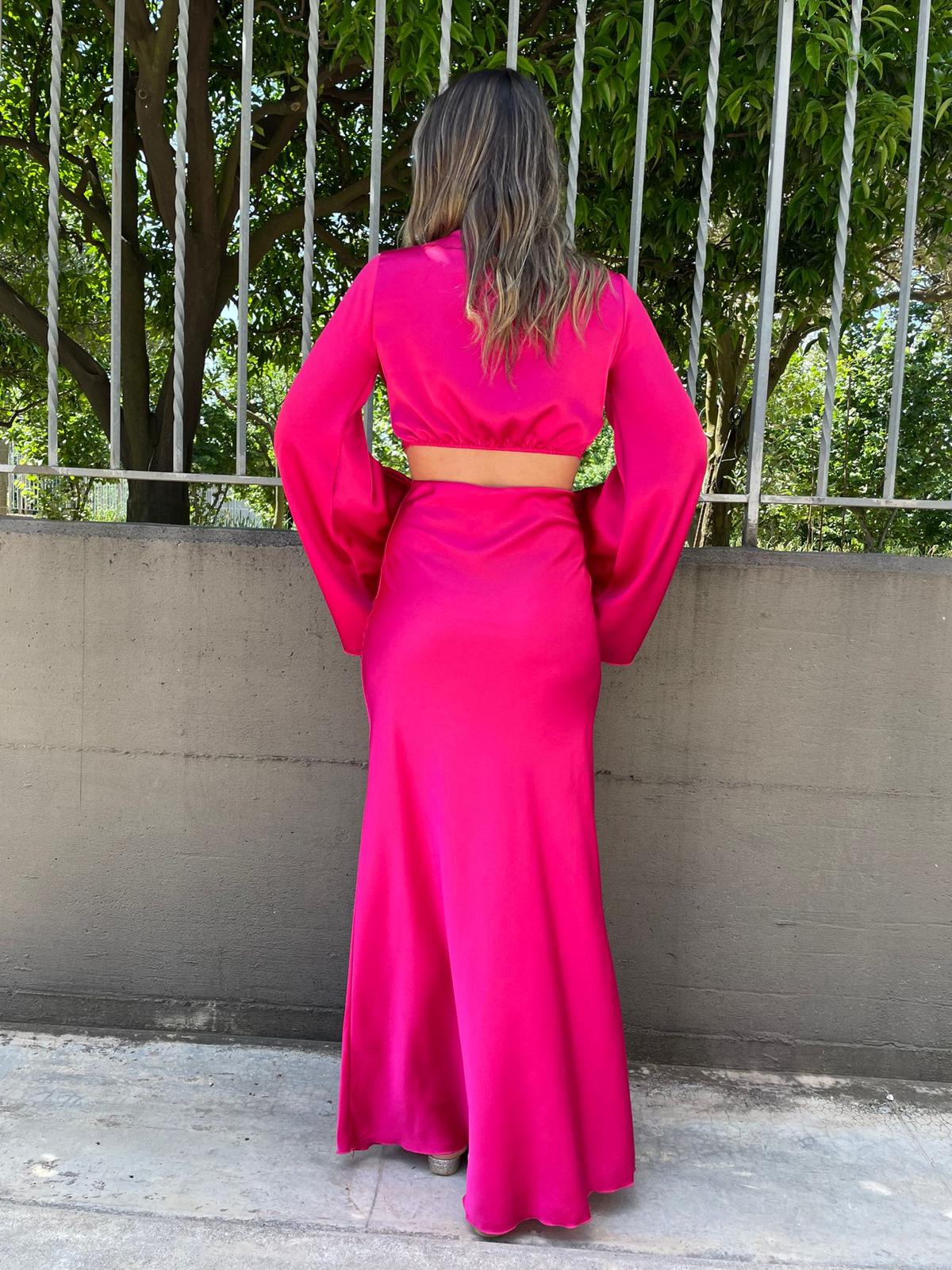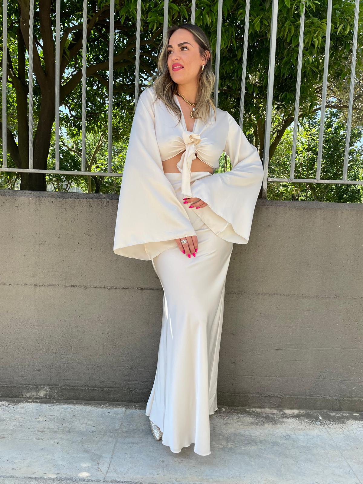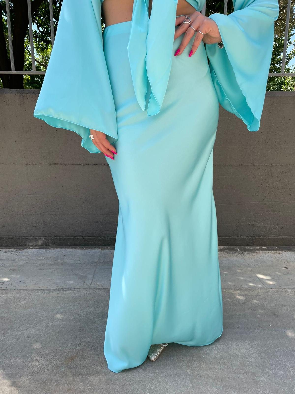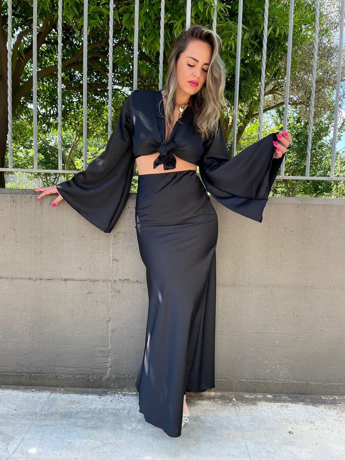 Coordinato 2 pezzi effetto seta con gonna lunga e camicia crop