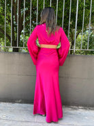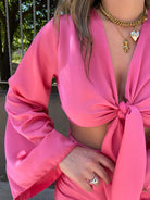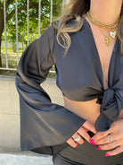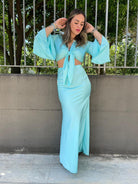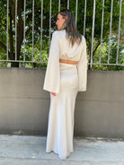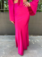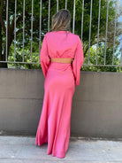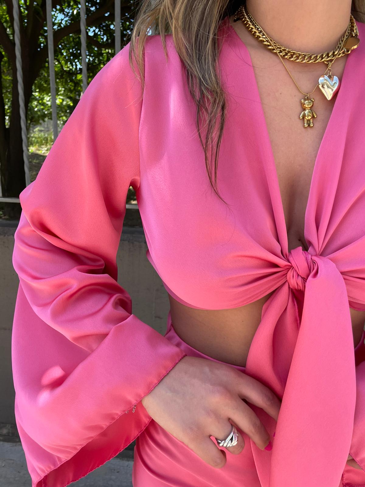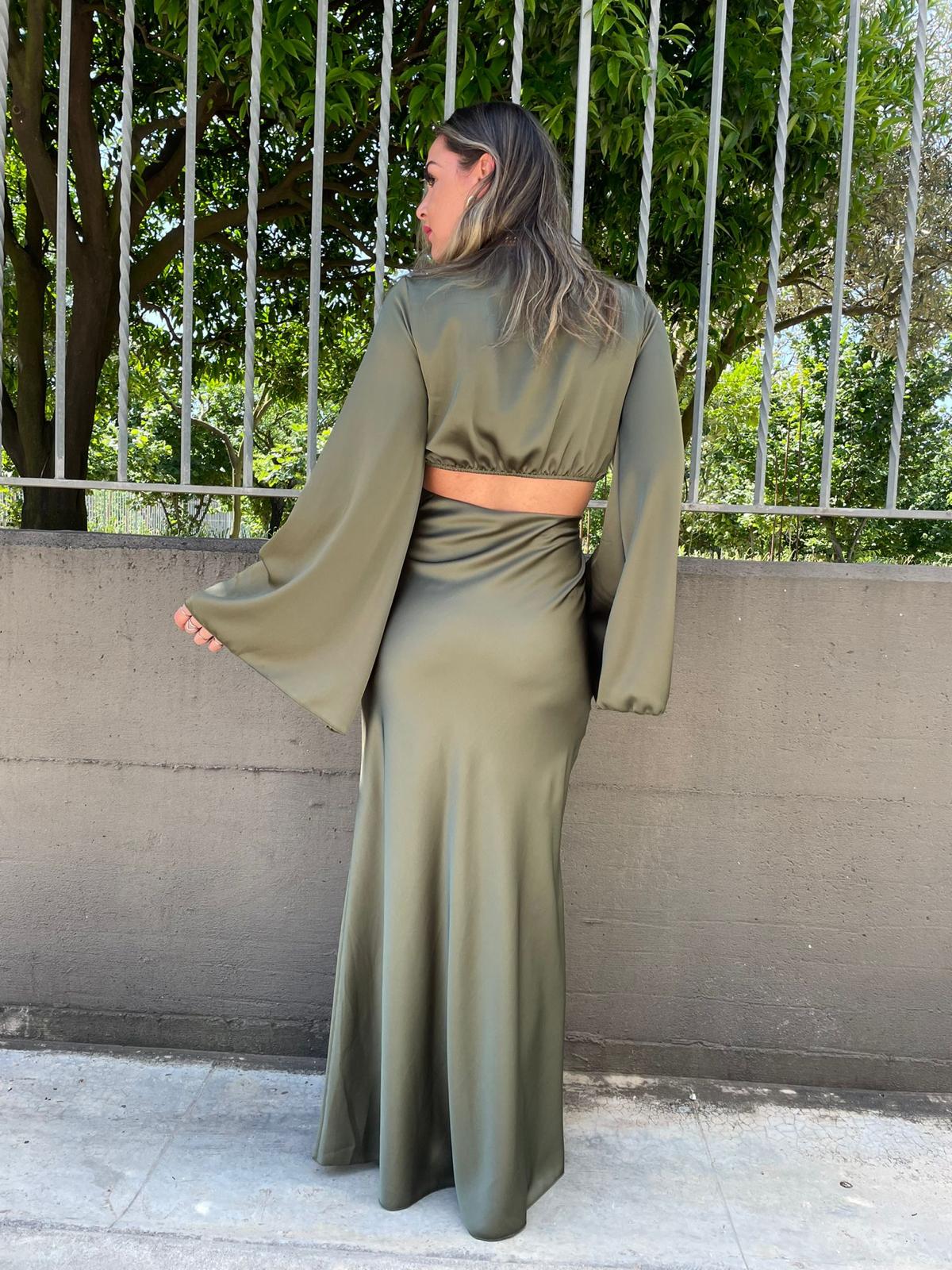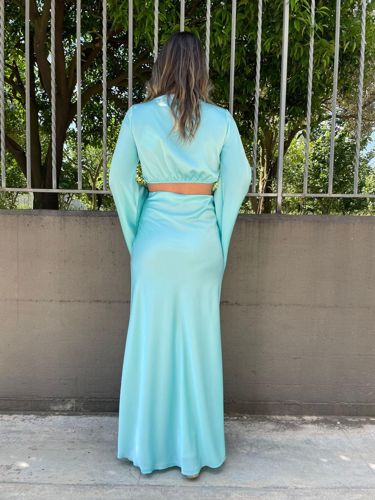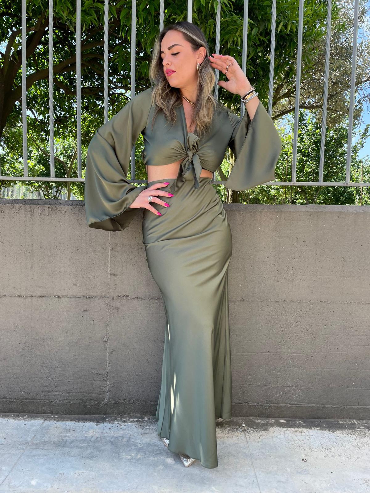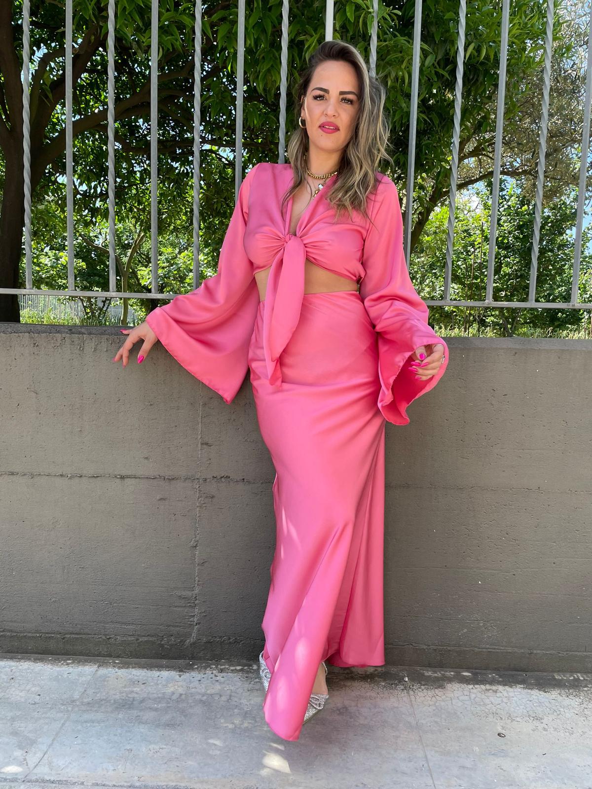 Coordinato 2 pezzi effetto seta con gonna lunga e camicia crop