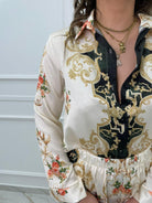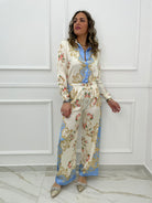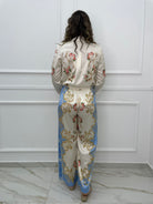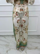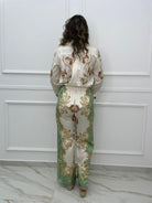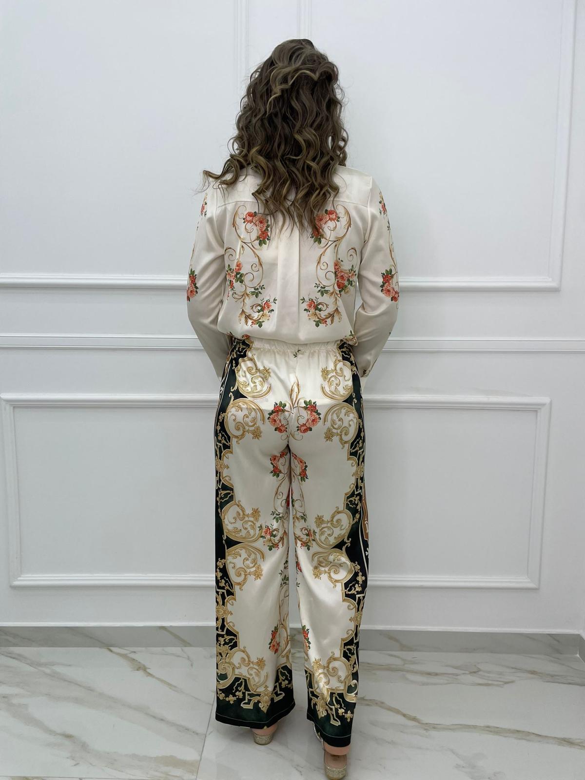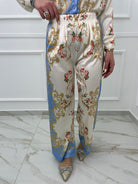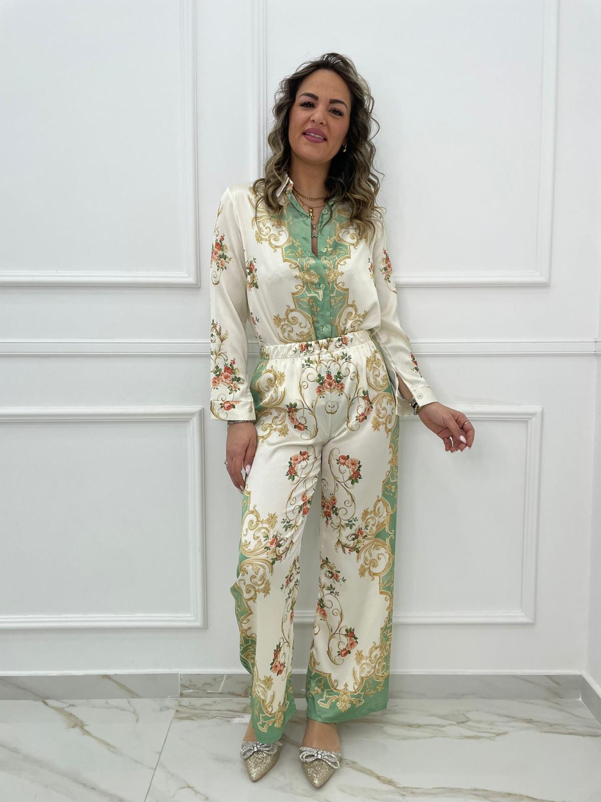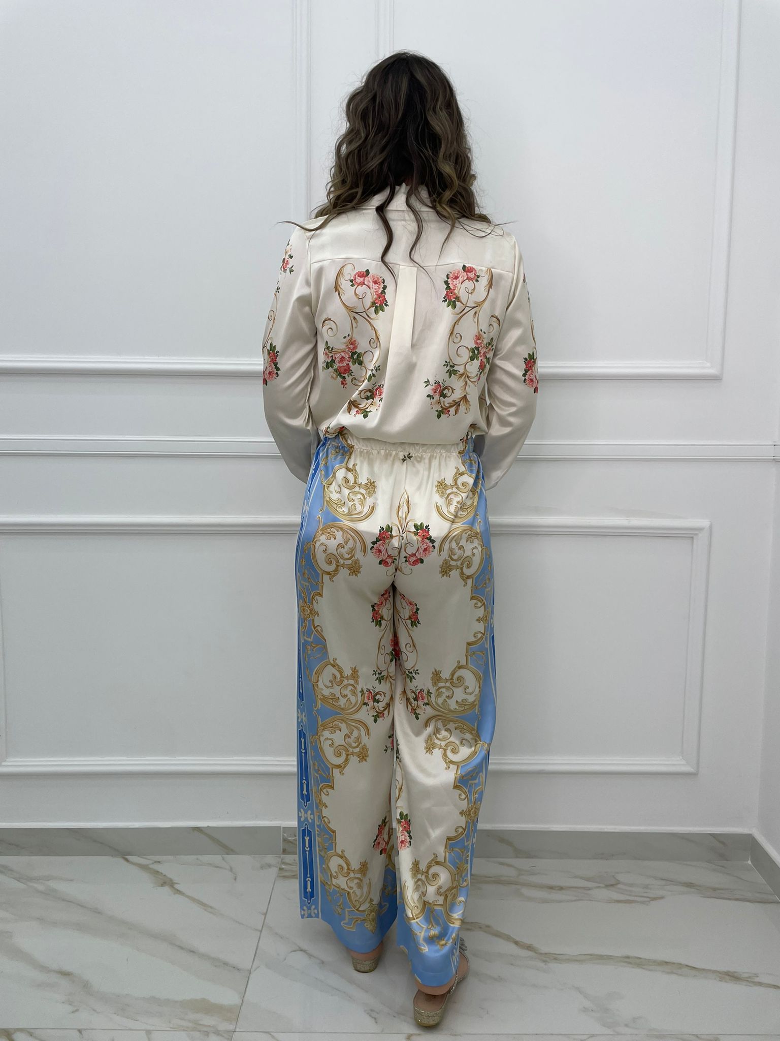 Coordinato 2 pezzi effetto seta con pantalone palazzo