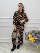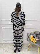 Coordinato 2 pezzi fantasia striata con pantalone palazzo