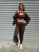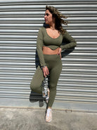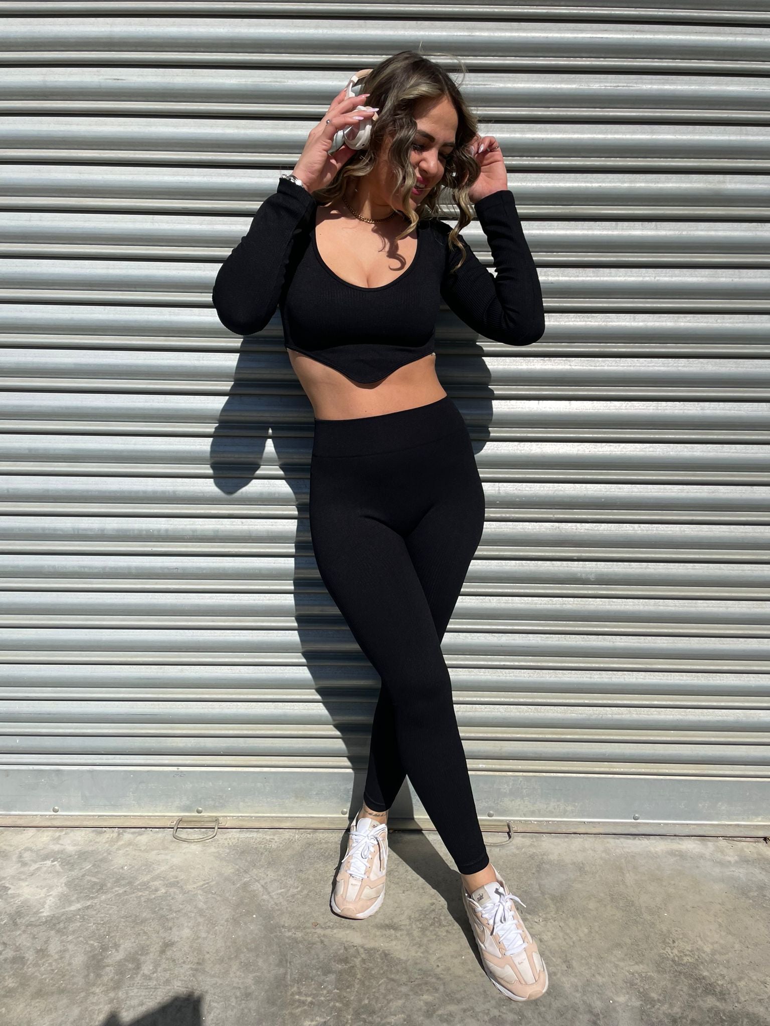 Coordinato 2 pezzi fitness con maglia crop asimmetrica