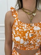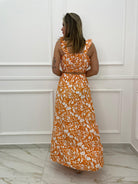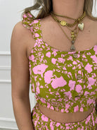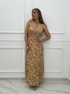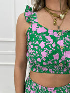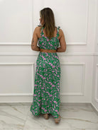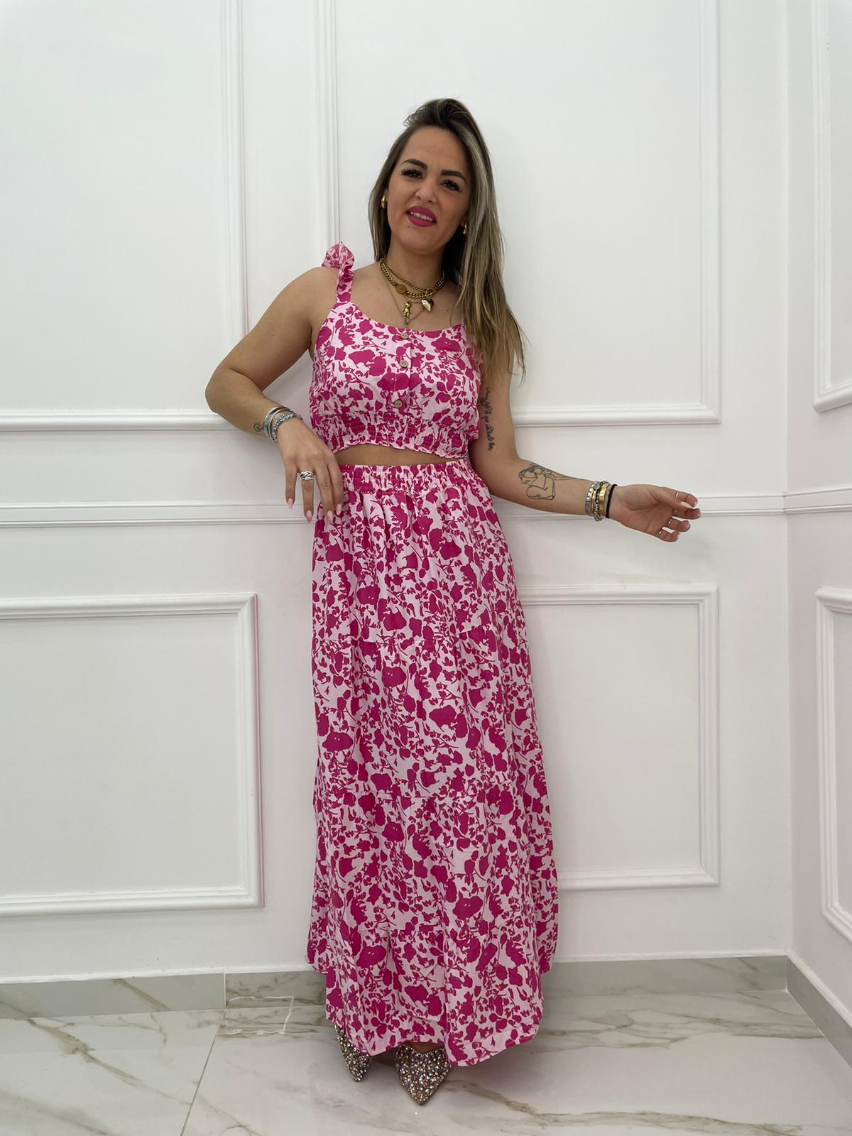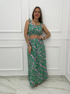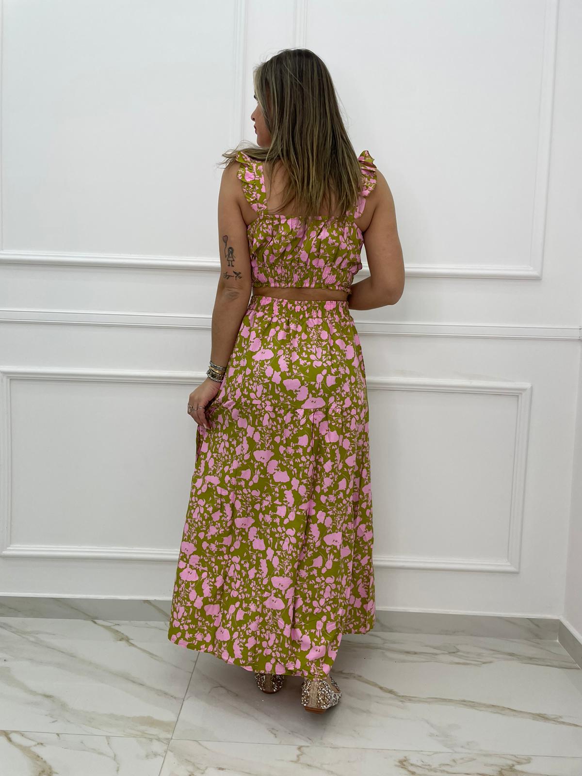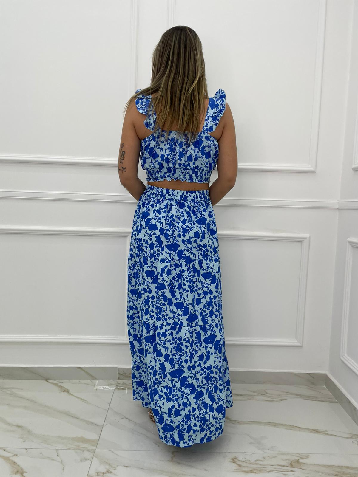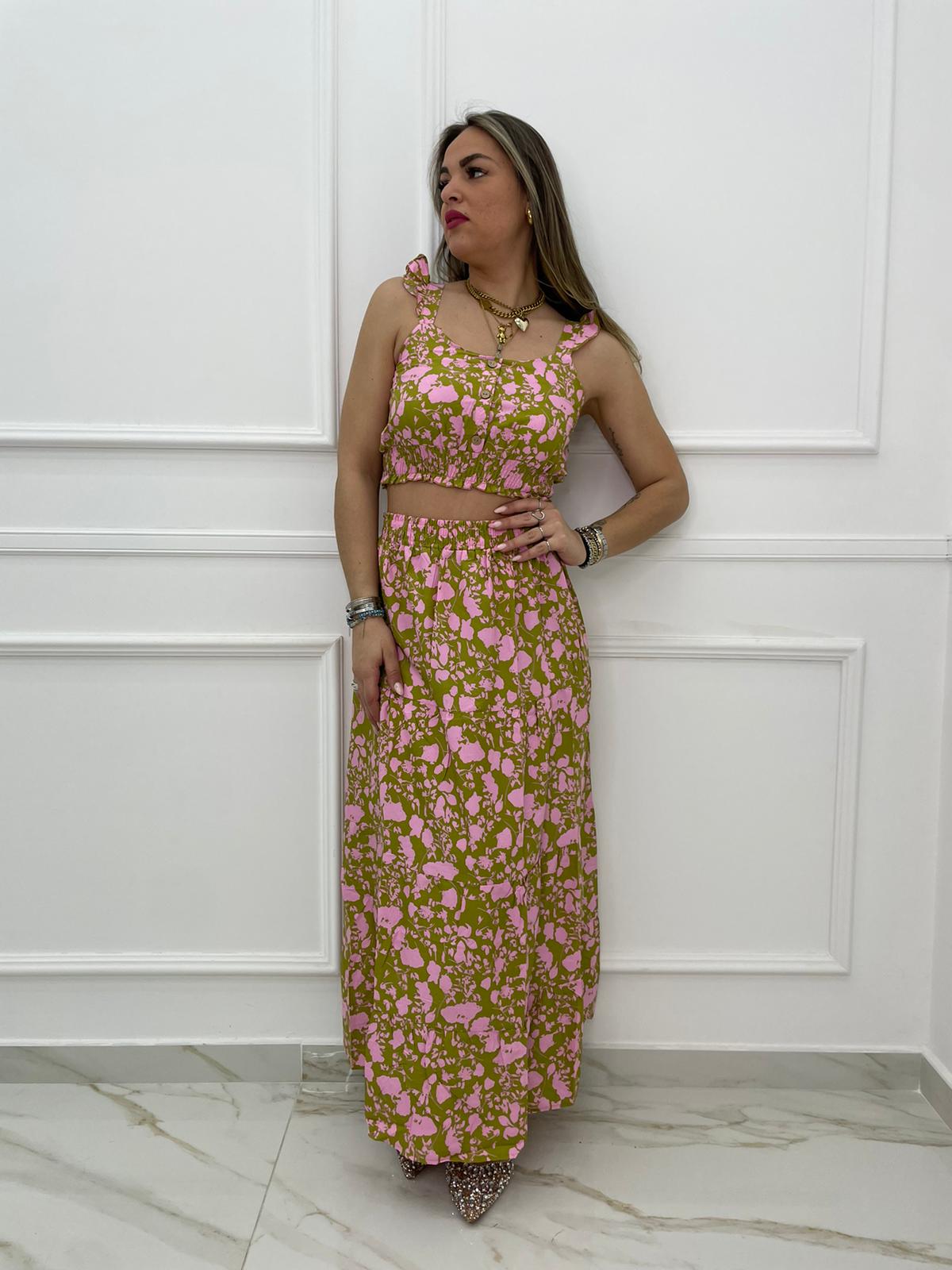 Coordinato 2 pezzi floreale con gonna lunga con balze