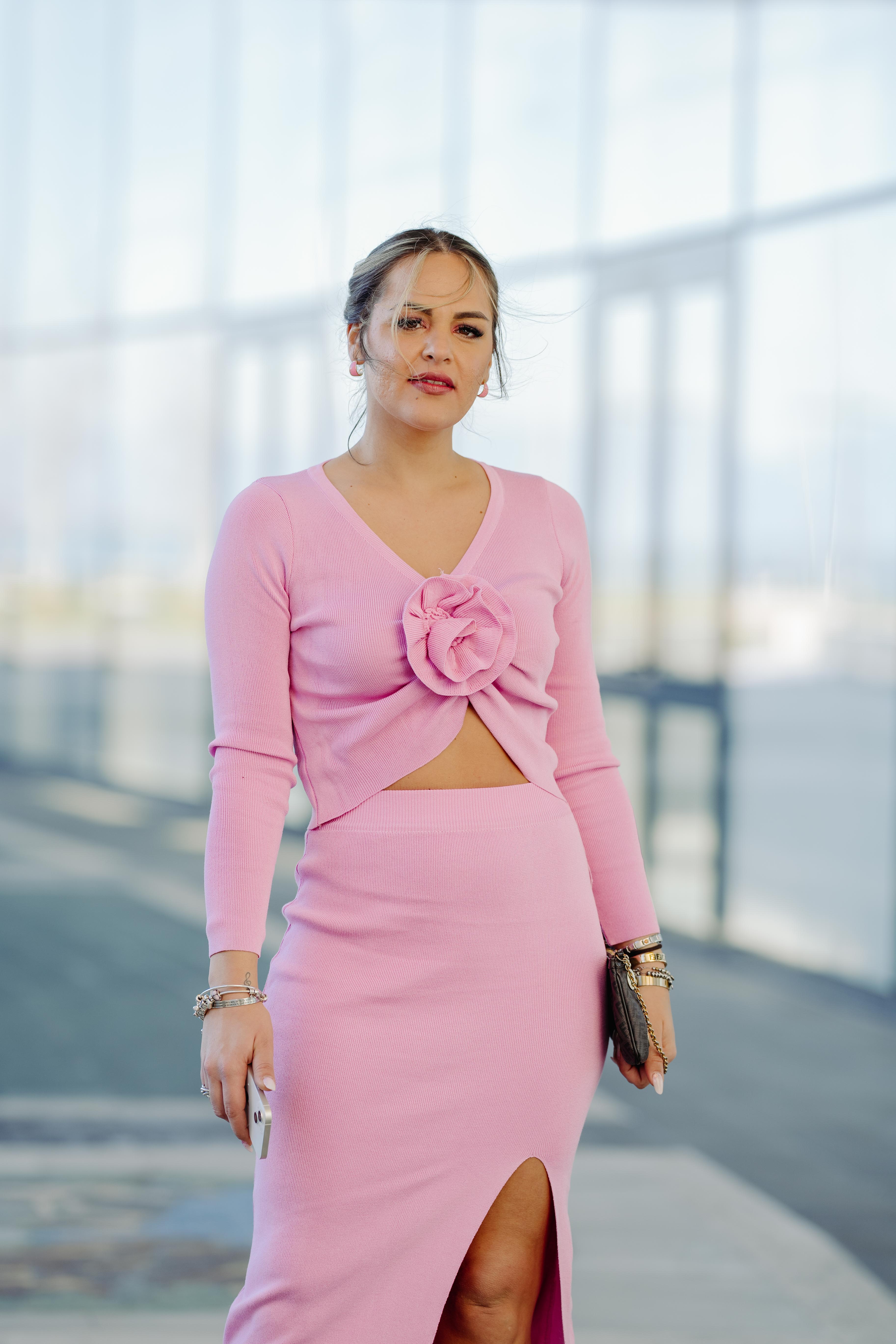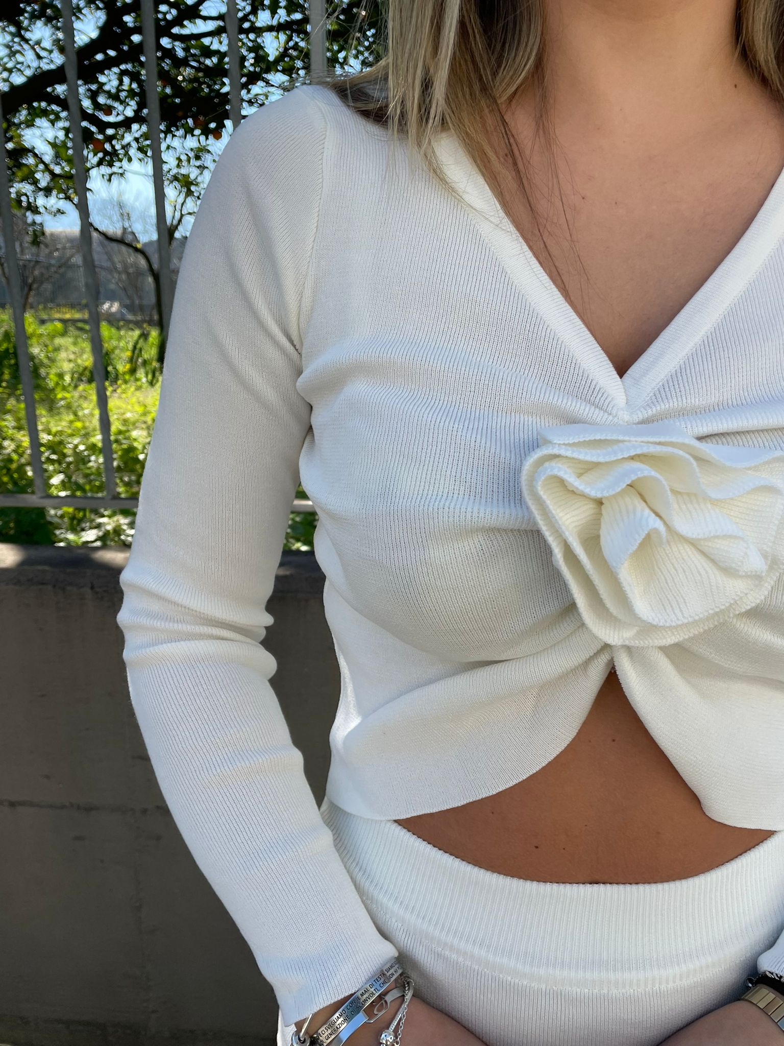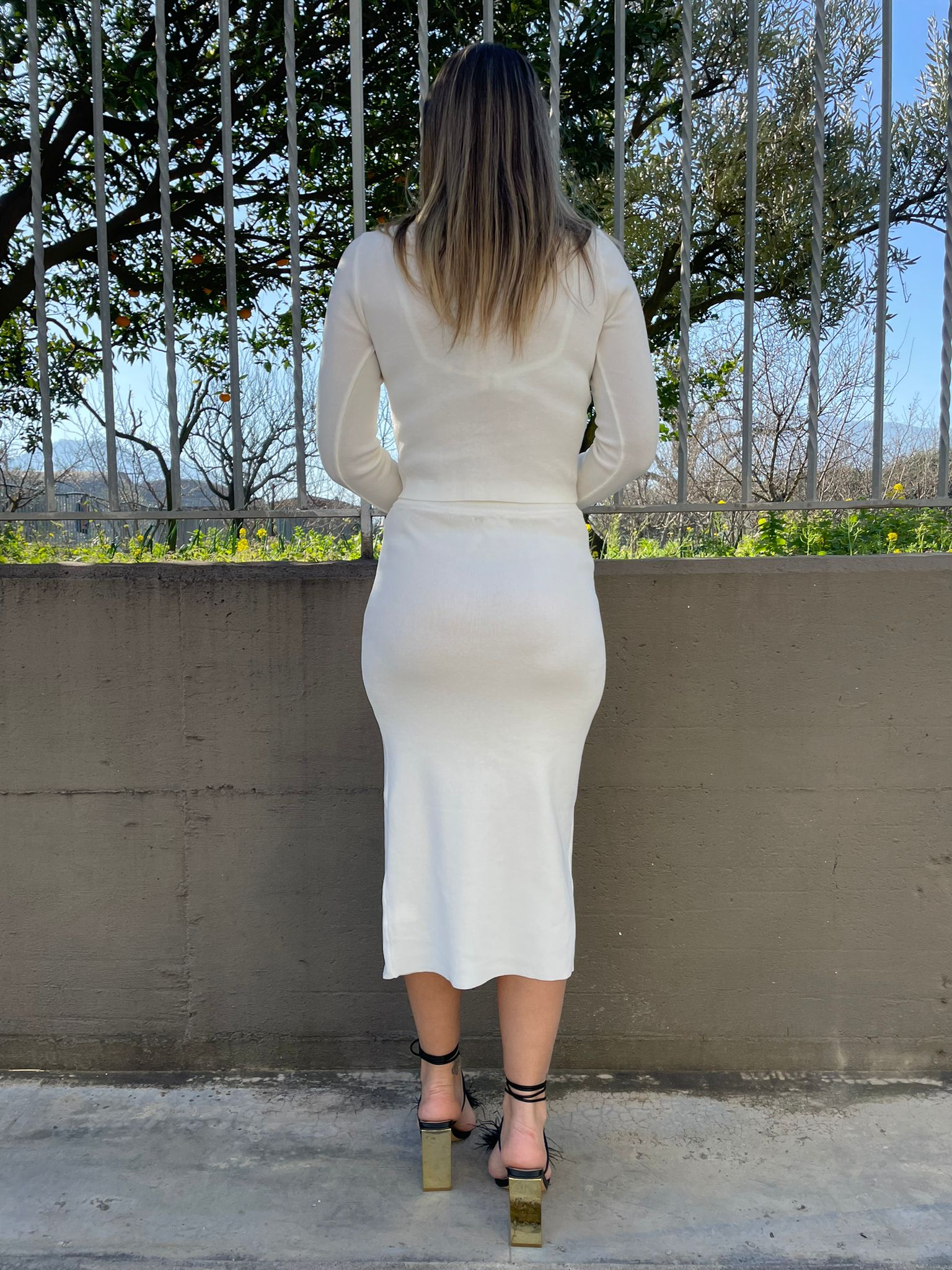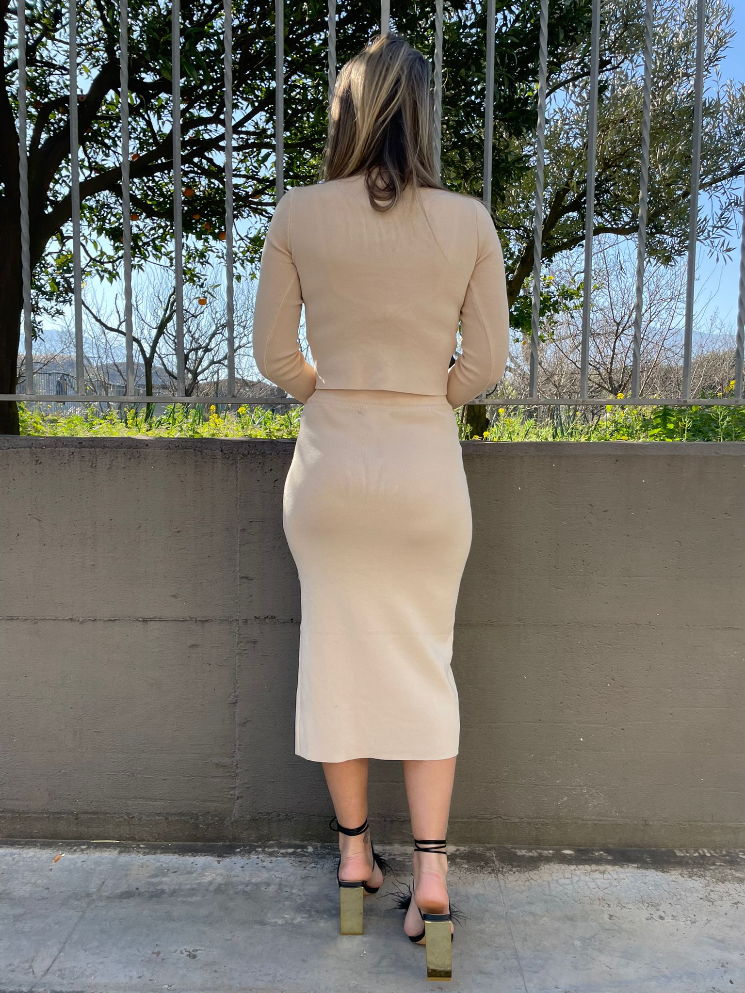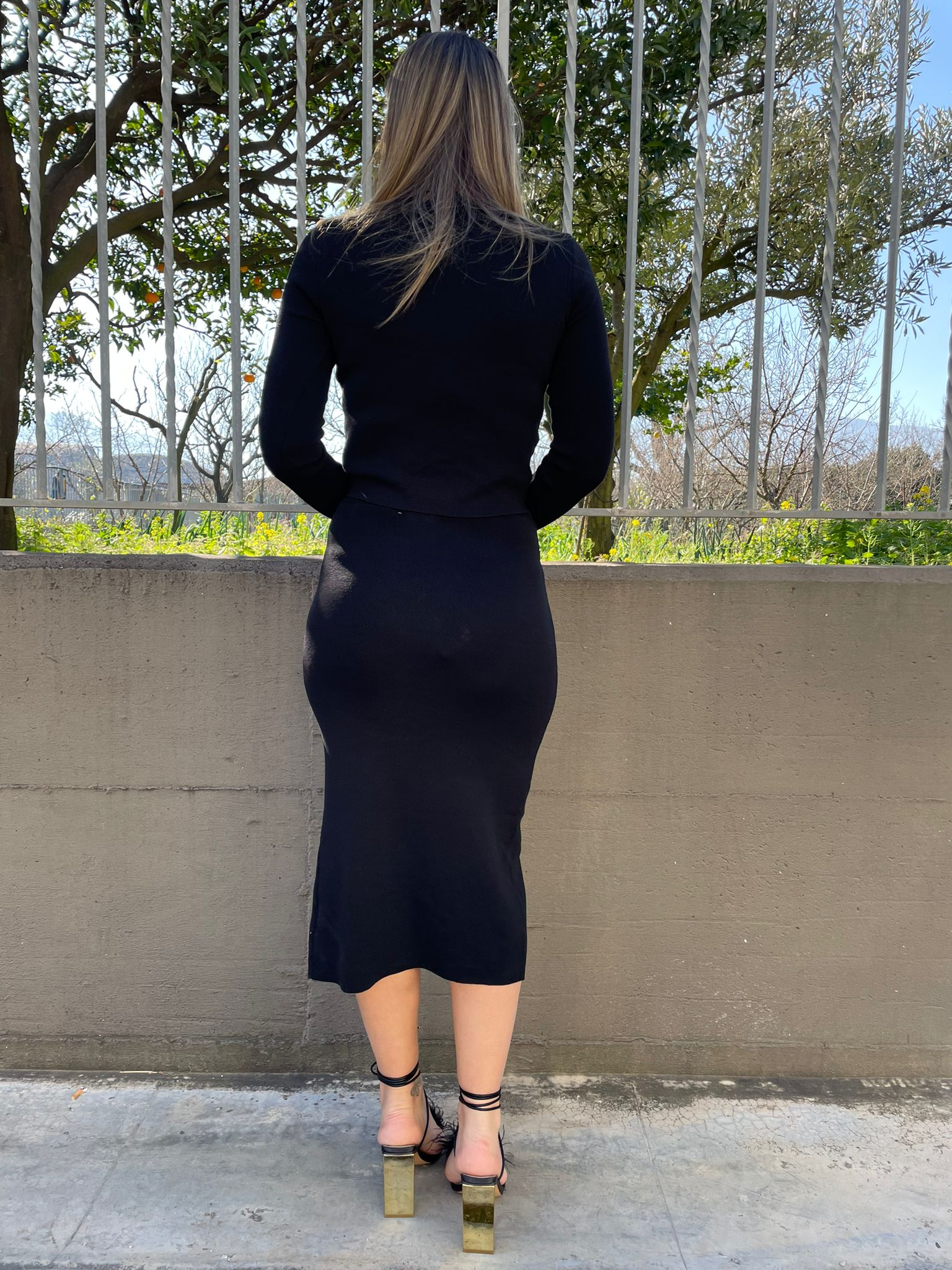Coordinato 2 pezzi in filo con gonna e maglia con fiocco