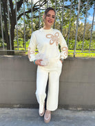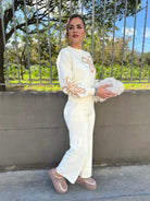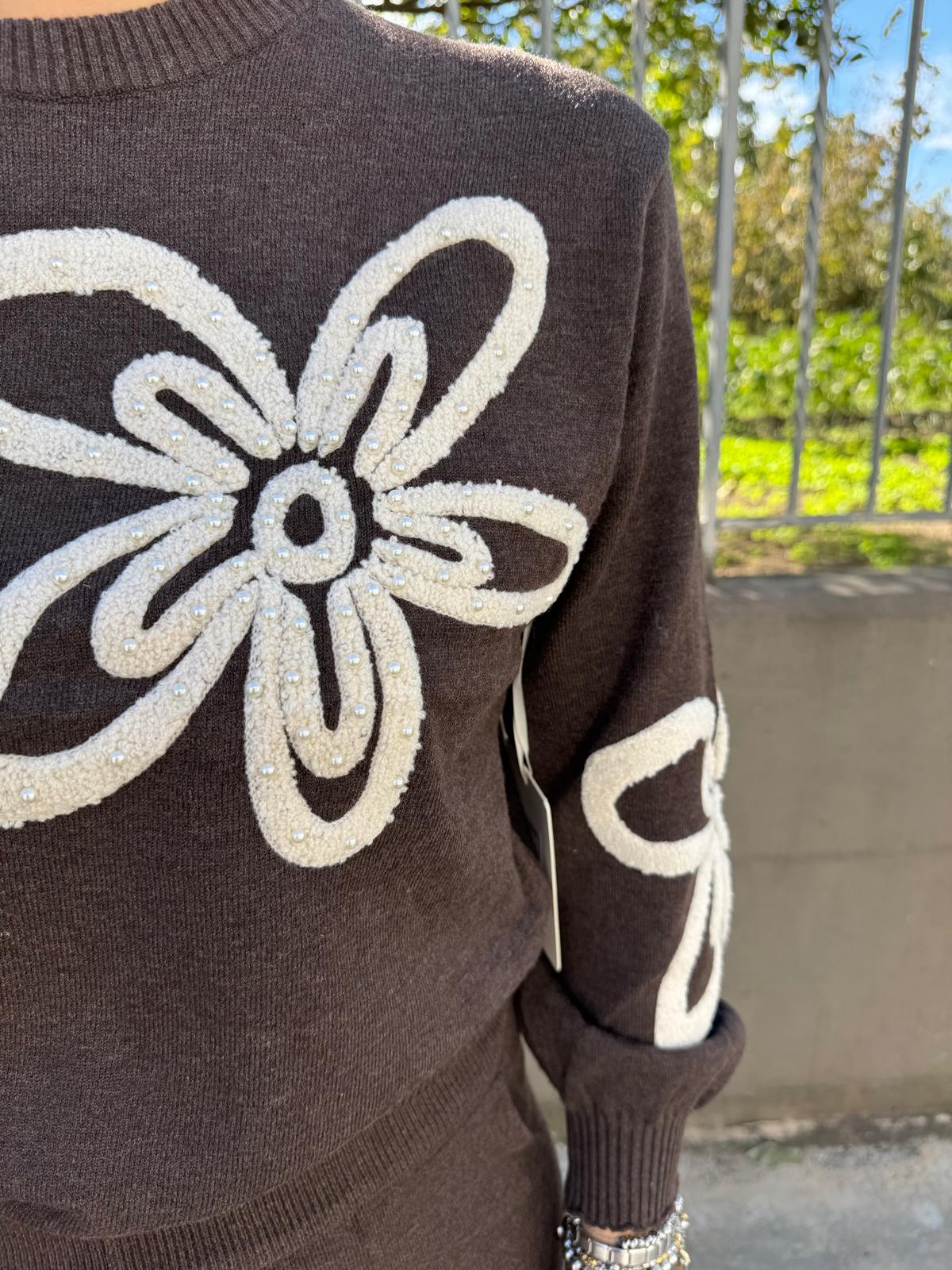 - Maglia con fiori giro collo