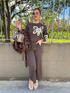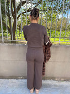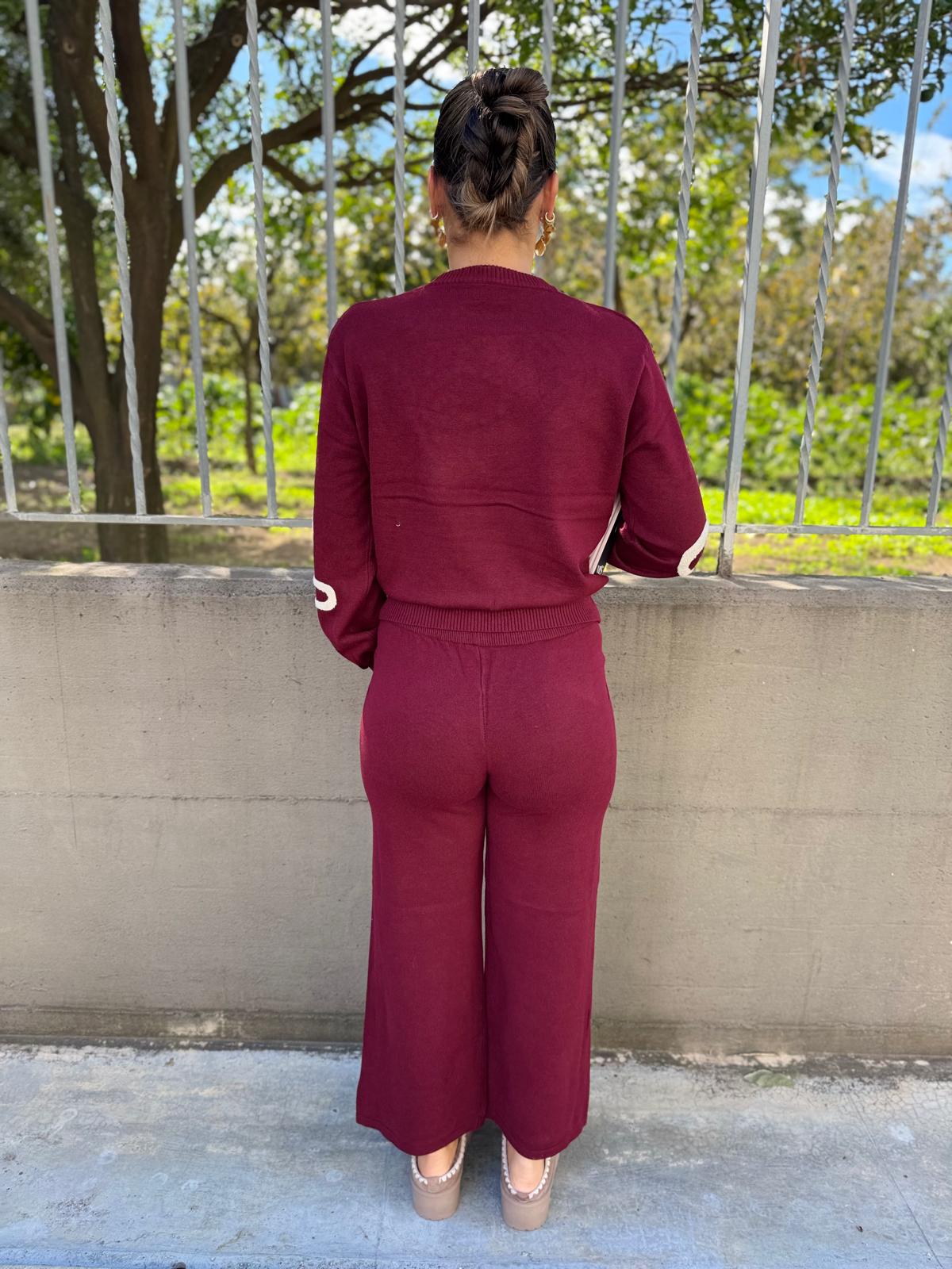Coordinato 2 pezzi in lana rasata con maglia a fantasia