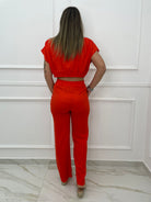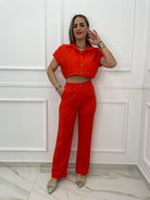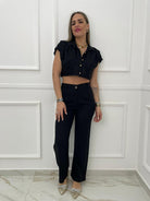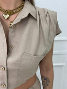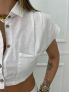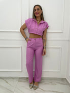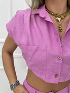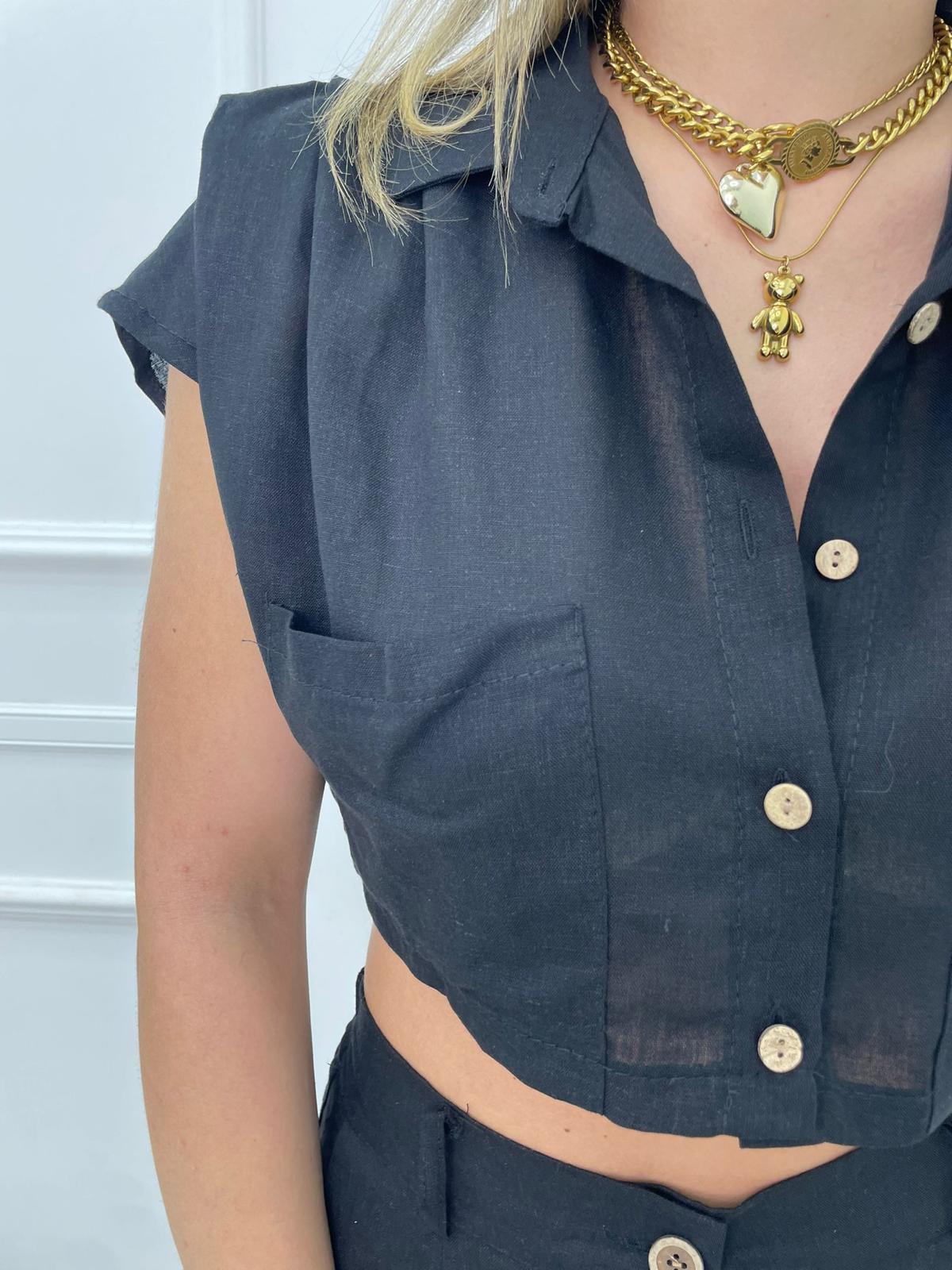 Coordinato 2 pezzi in lino con camicia crop