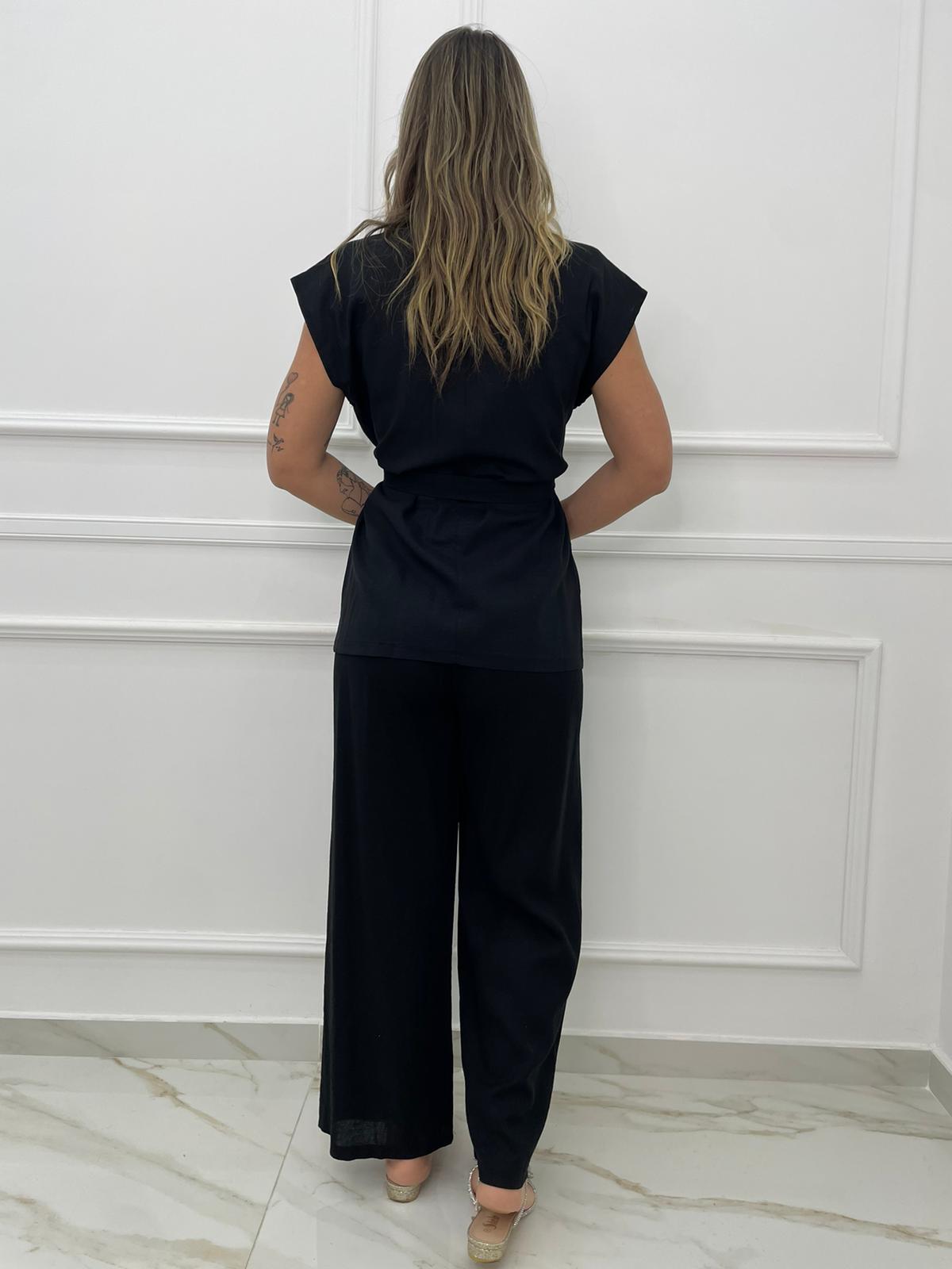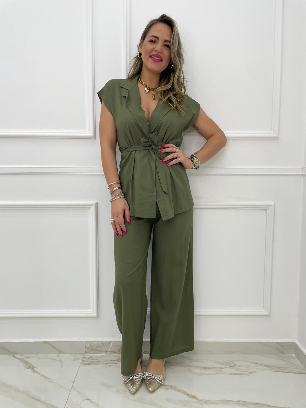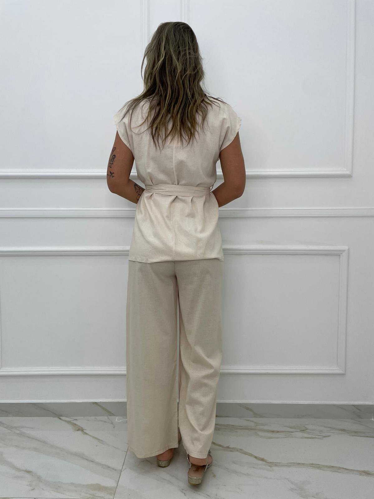 Coordinato 2 pezzi in lino con kimono e pantalone palazzo