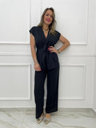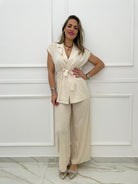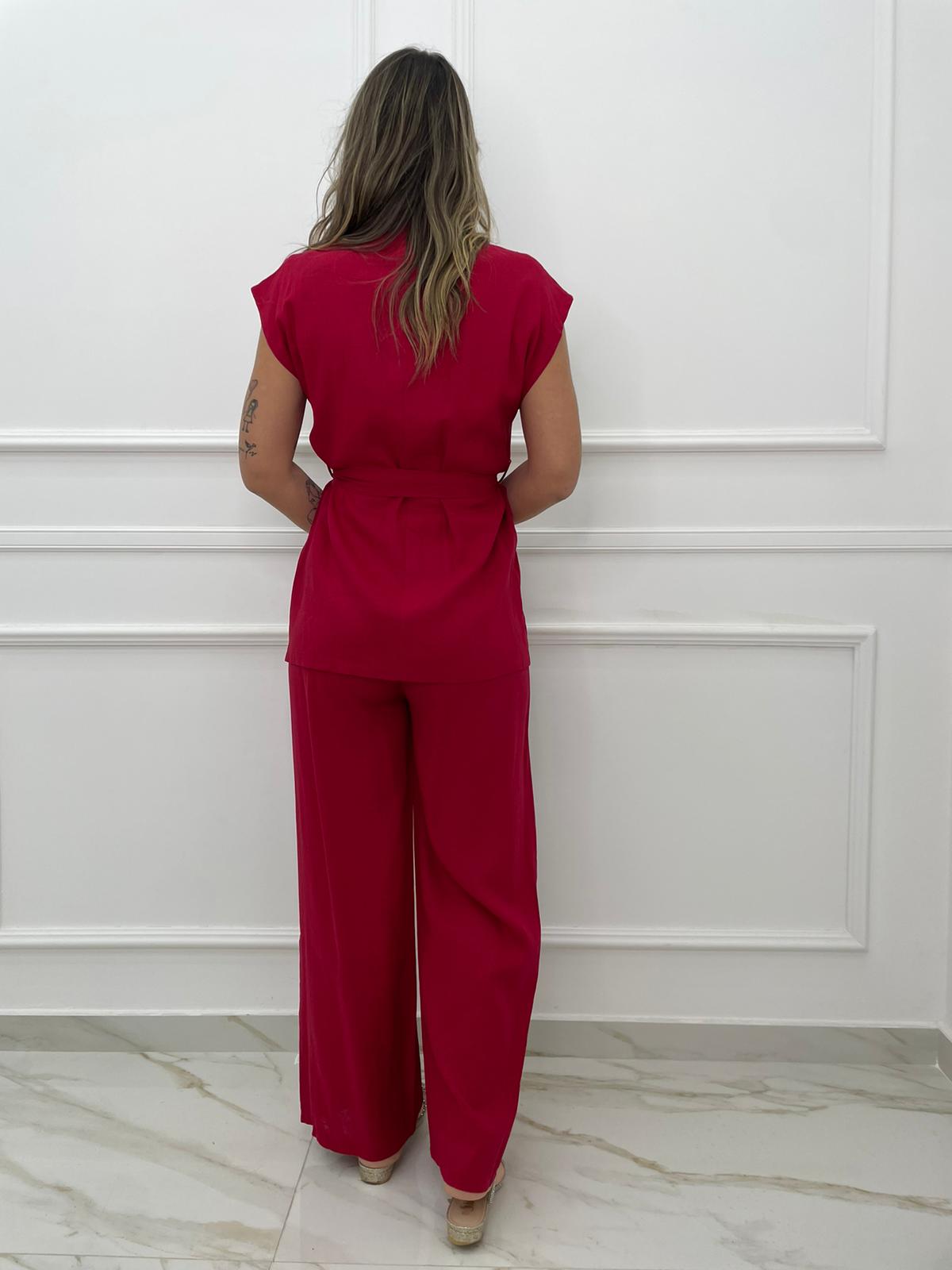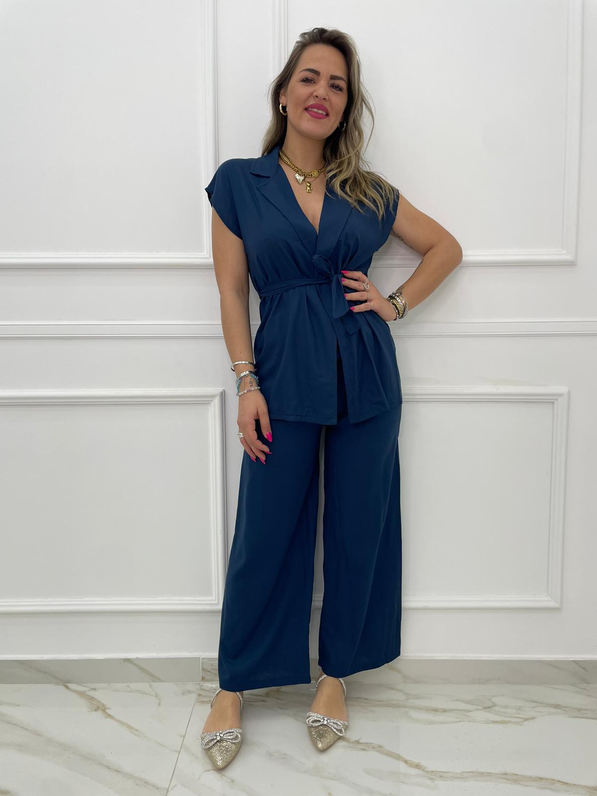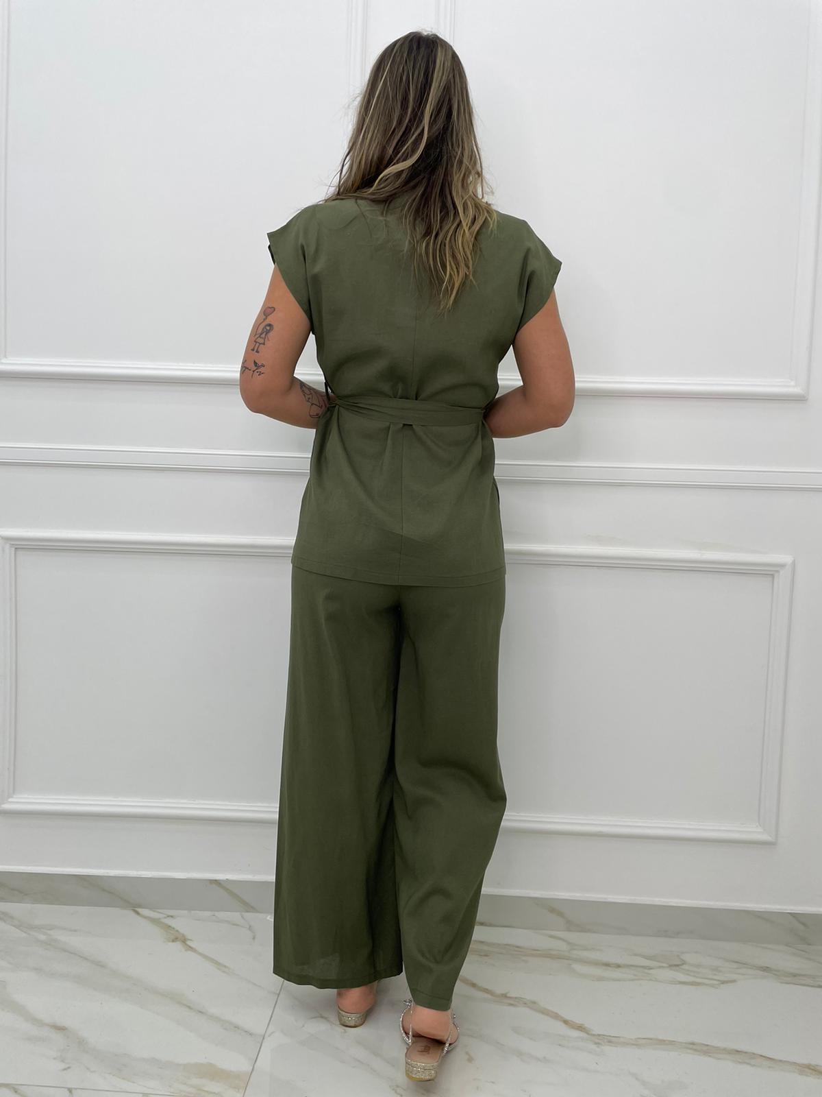 Coordinato 2 pezzi in lino con kimono e pantalone palazzo