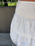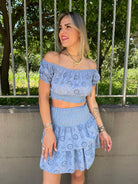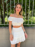 Coordinato 2 pezzi in pizzo san gallo con mini gonna con balze