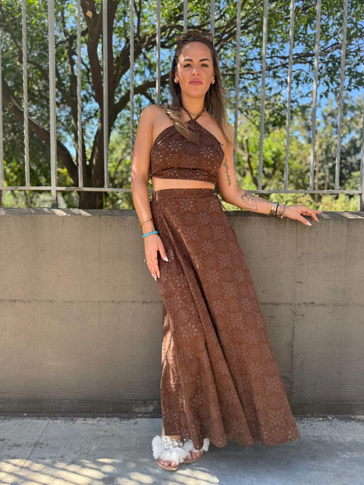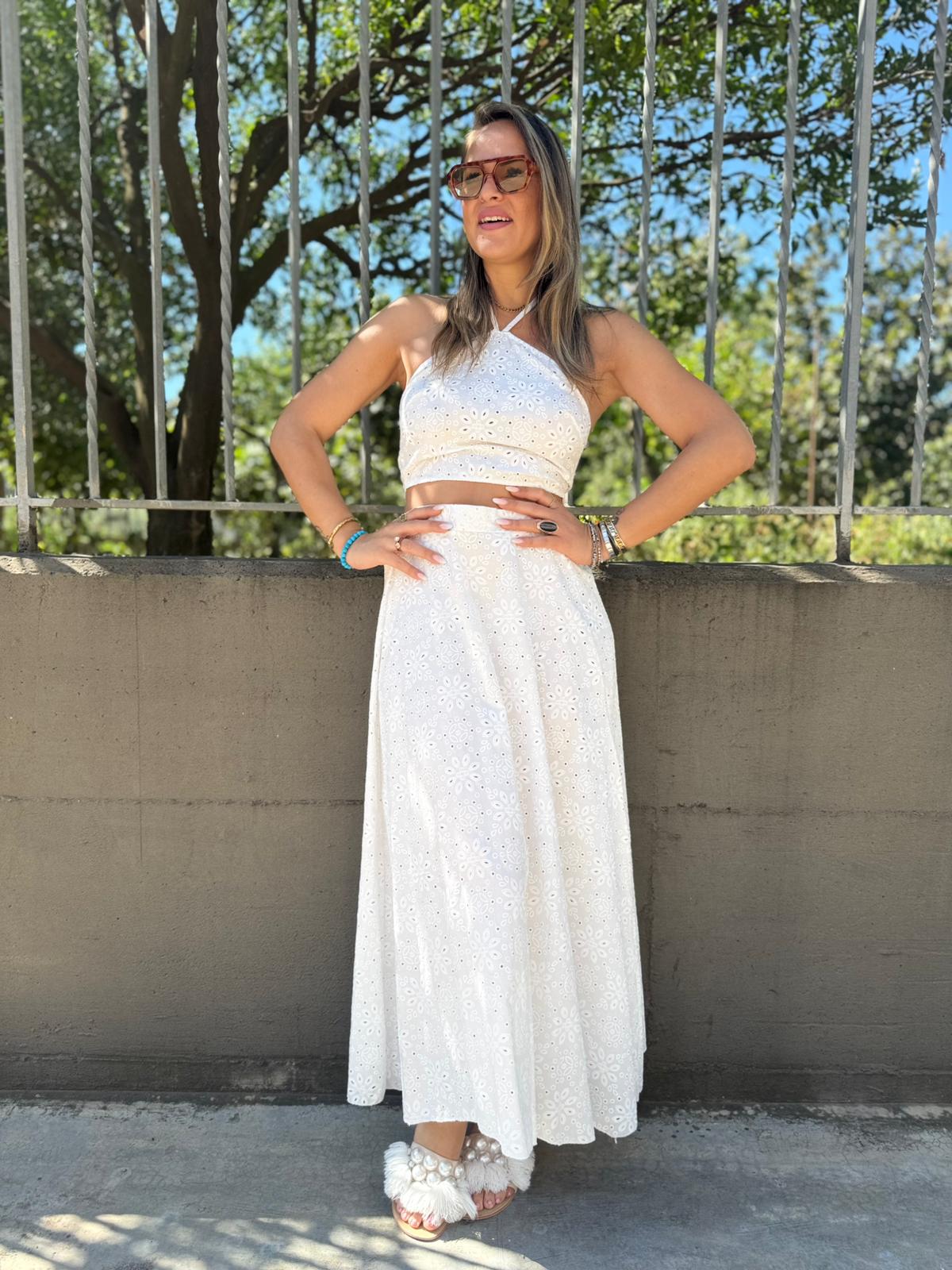Coordinato 2 pezzi traforato con gonnellone