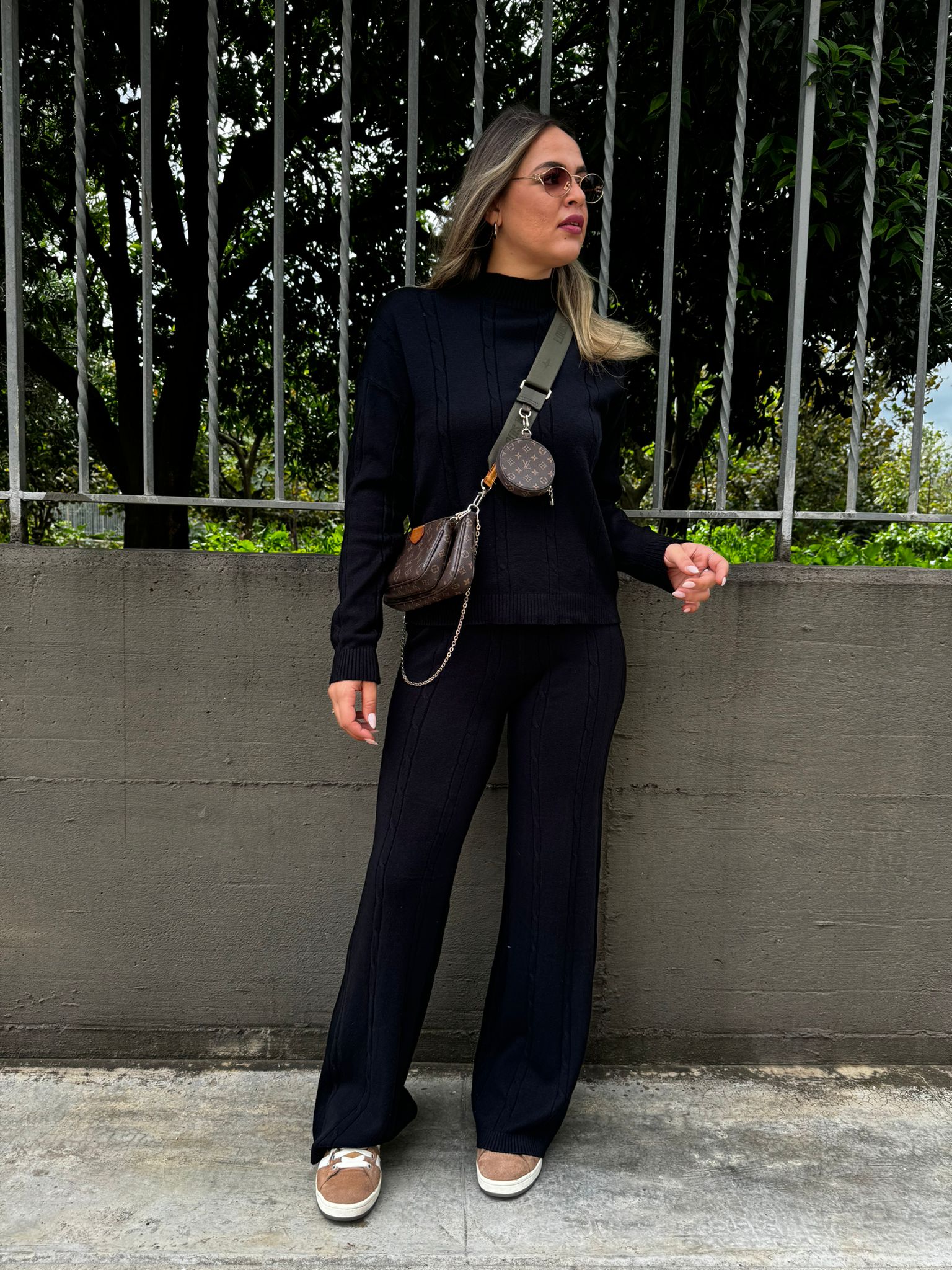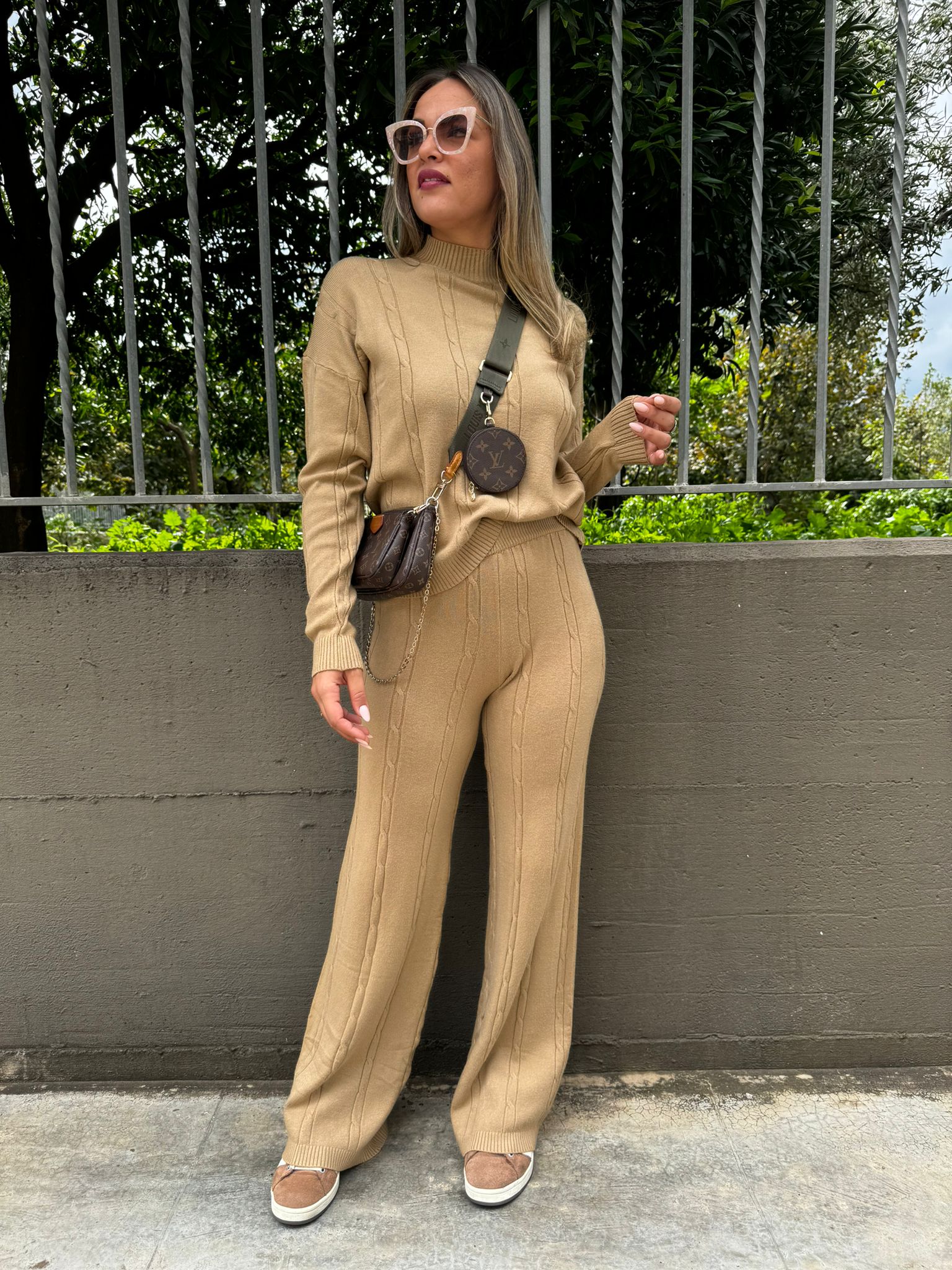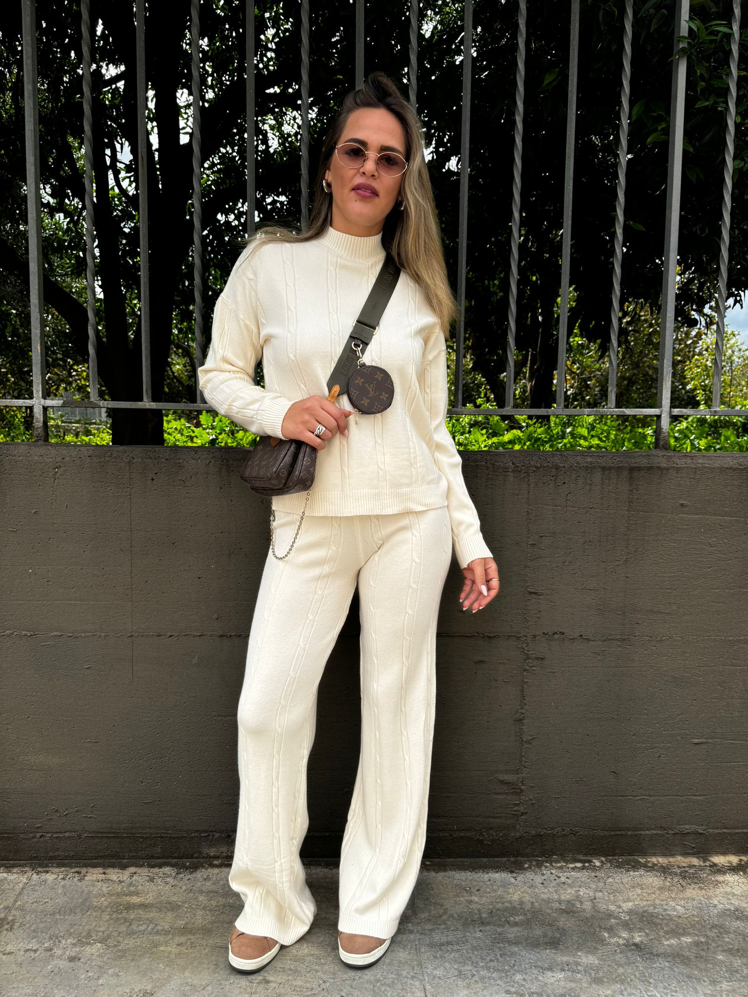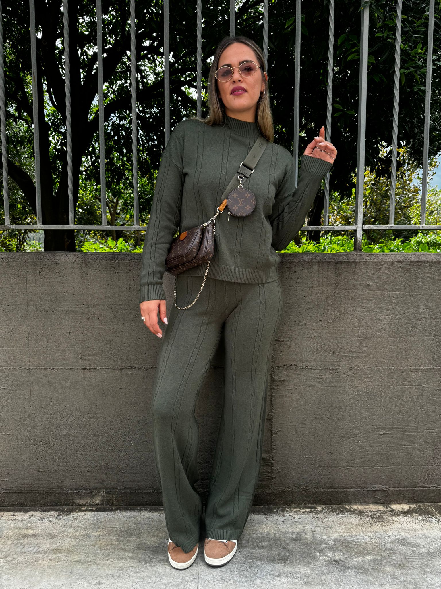 Coordinato 2 pezzi trama treccia con maglia mezzo collo