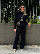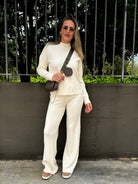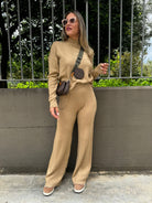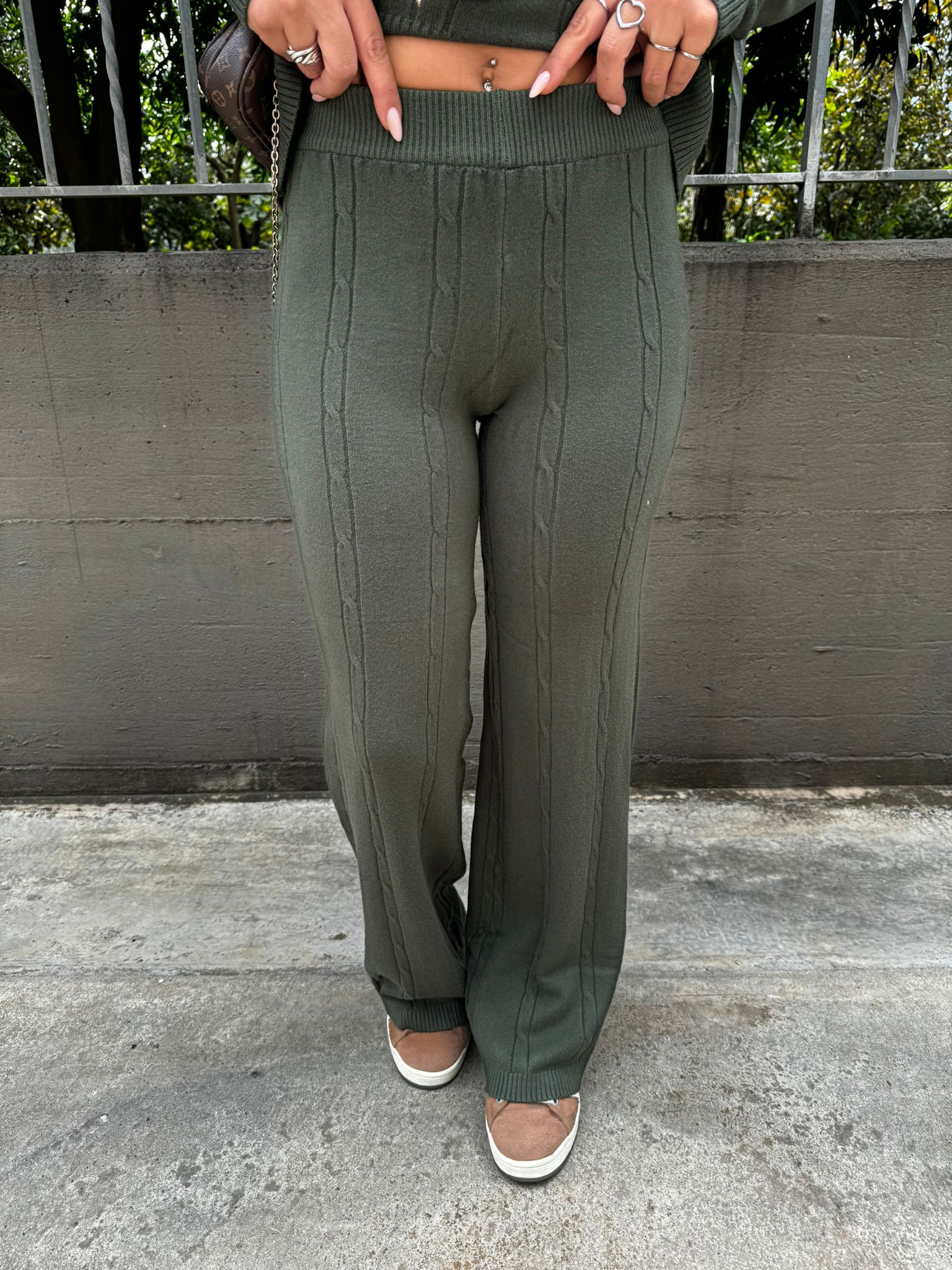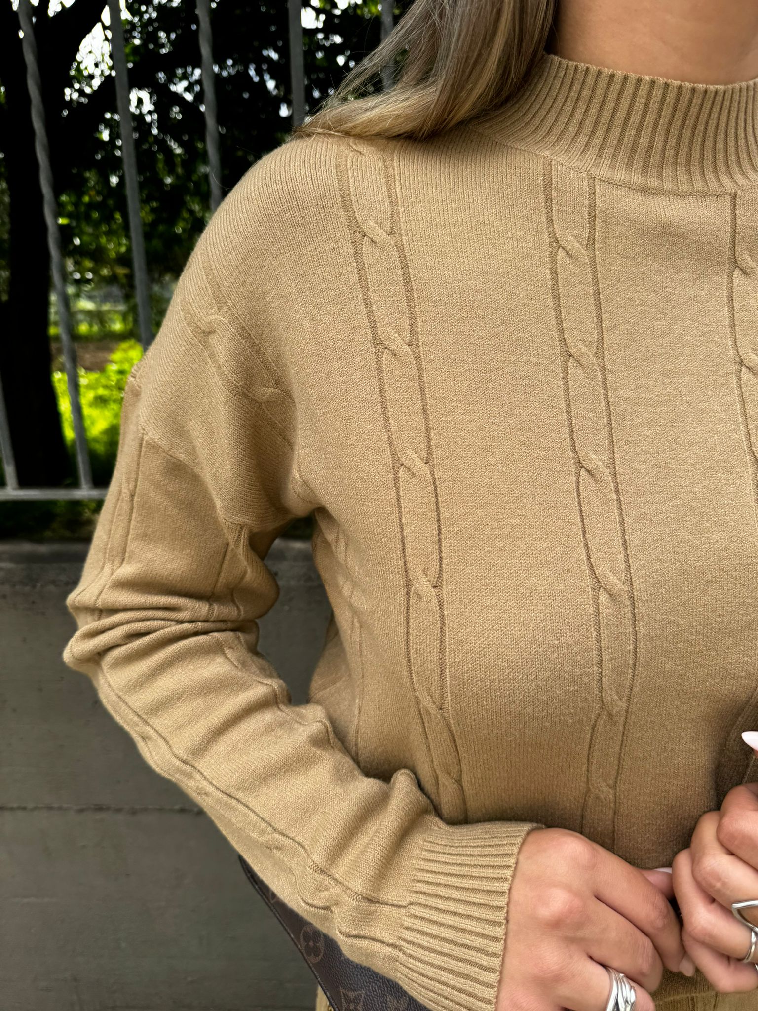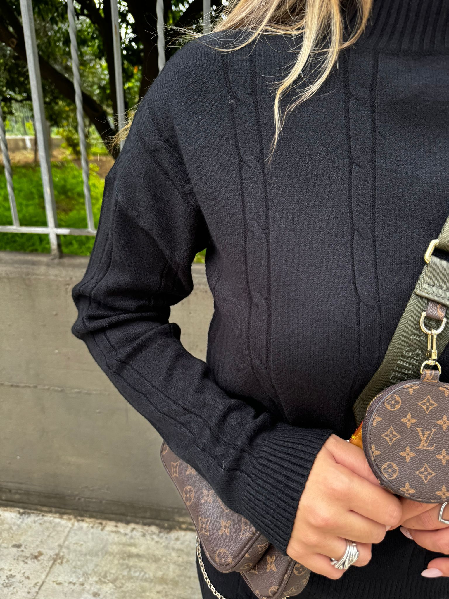 Coordinato 2 pezzi trama treccia con maglia mezzo collo
