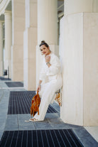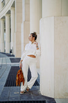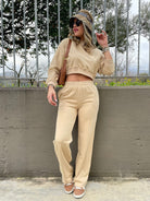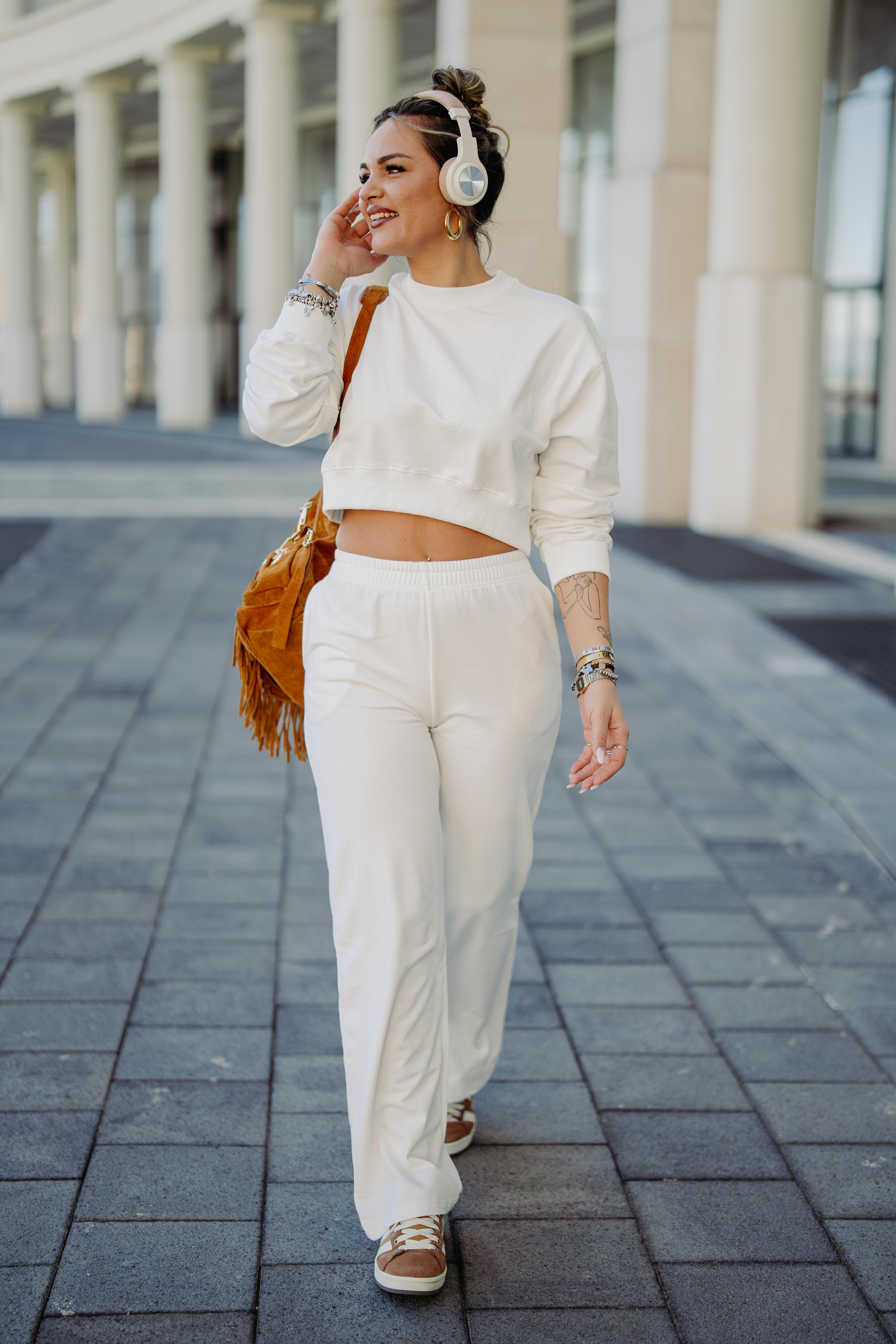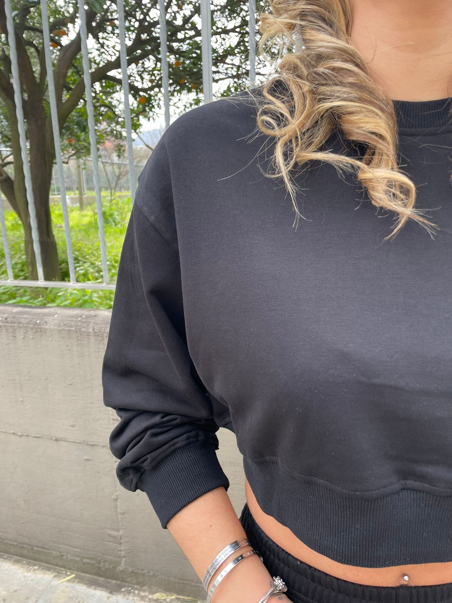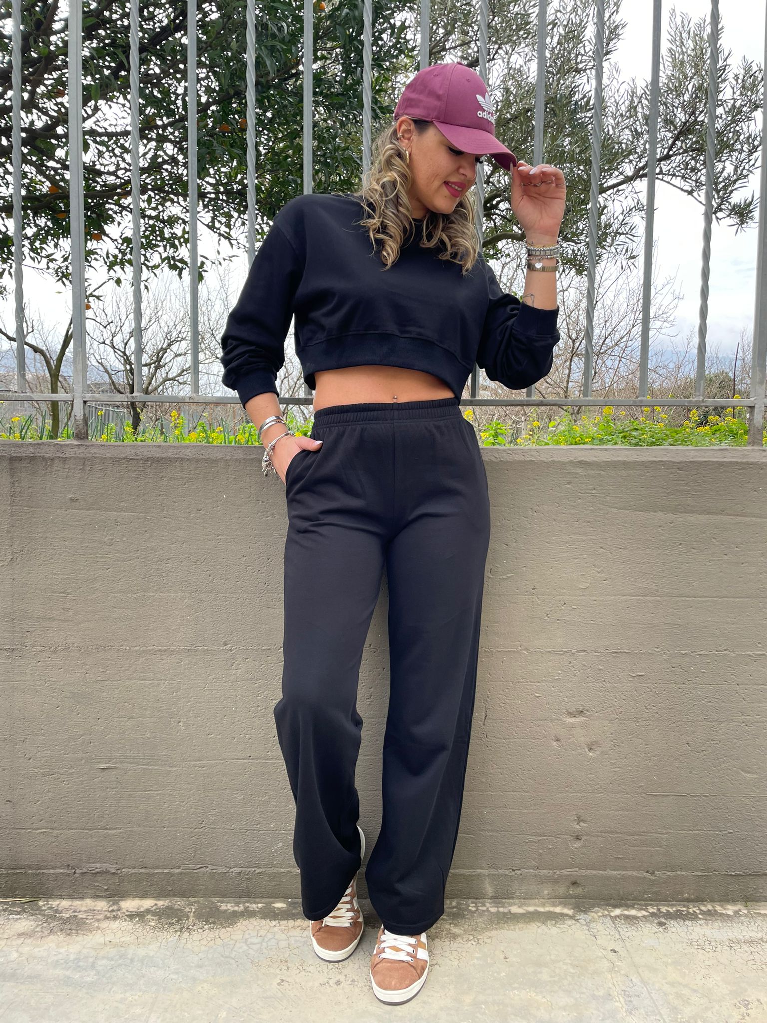 Coordinato tuta 2 pezzi con pantalone palazzo e felpa crop