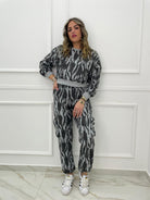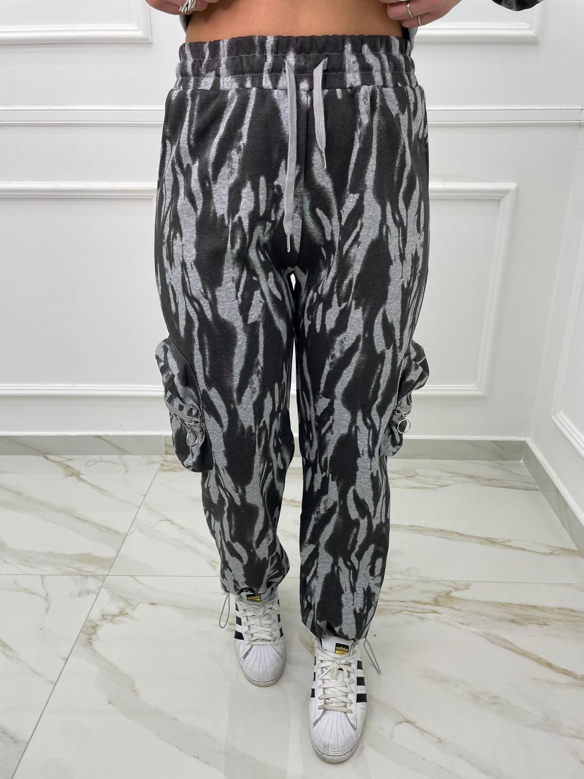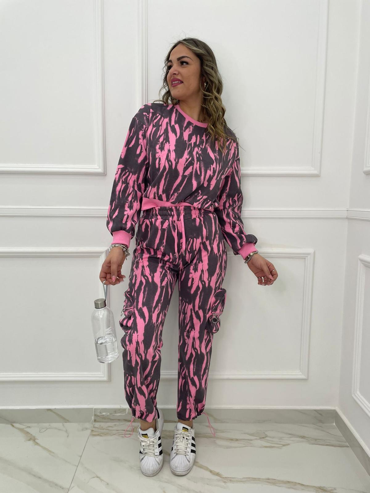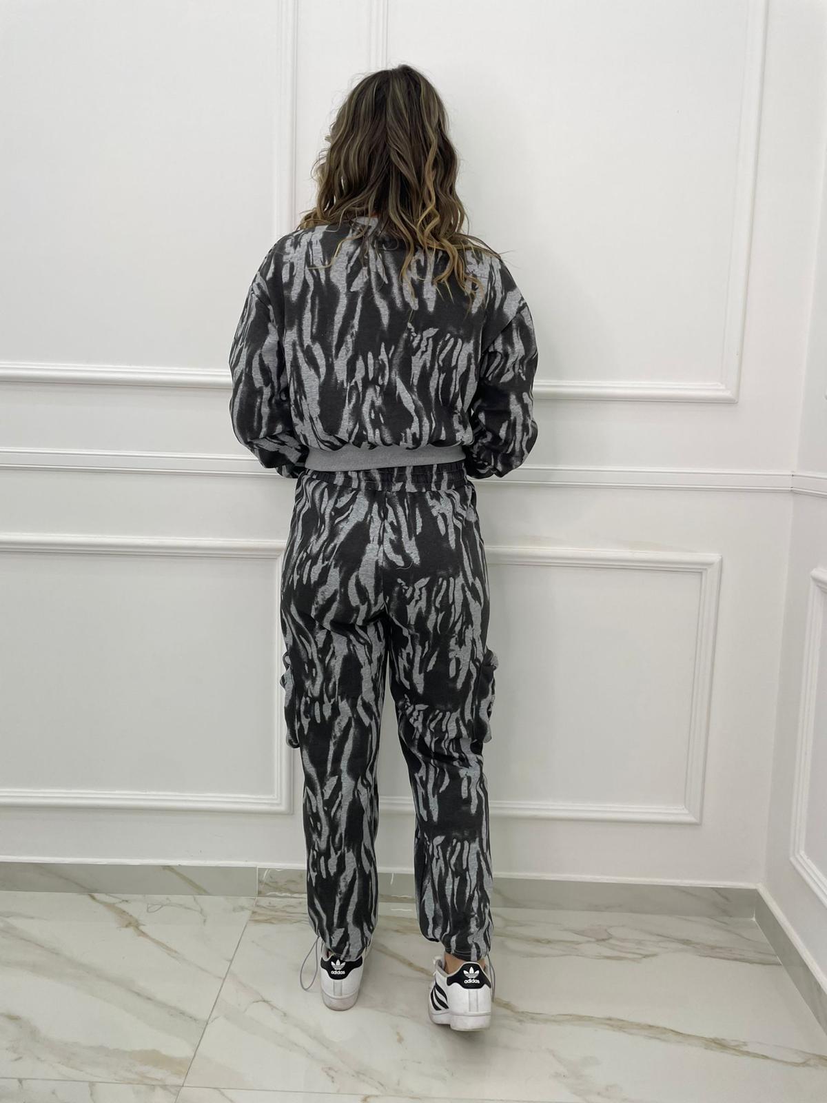 Coordinato tuta 2 pezzi fantasia striata con pantalone cargo
