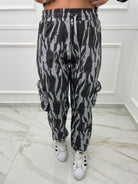- Pantalone cargo con elastico in vita e alle caviglie