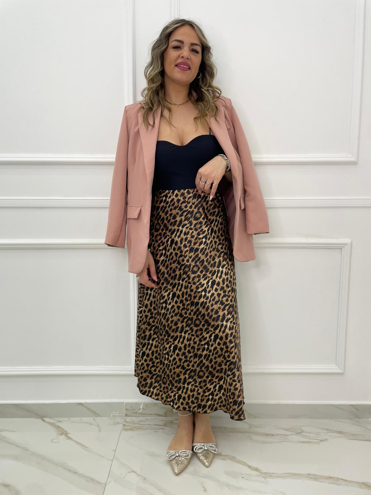 Gonna lunga animalier effetto raso