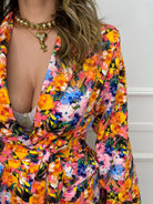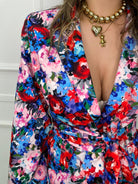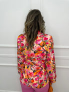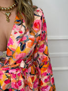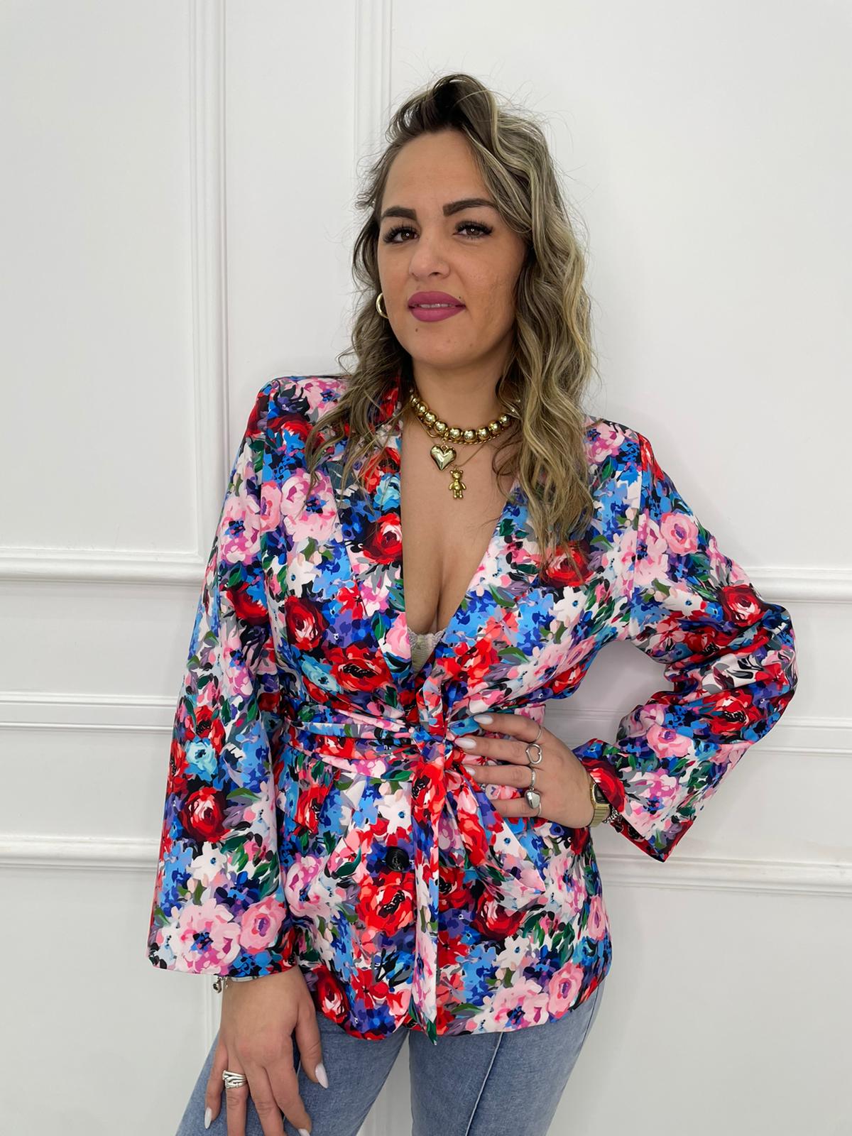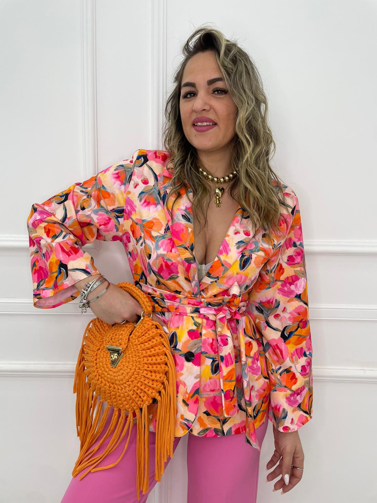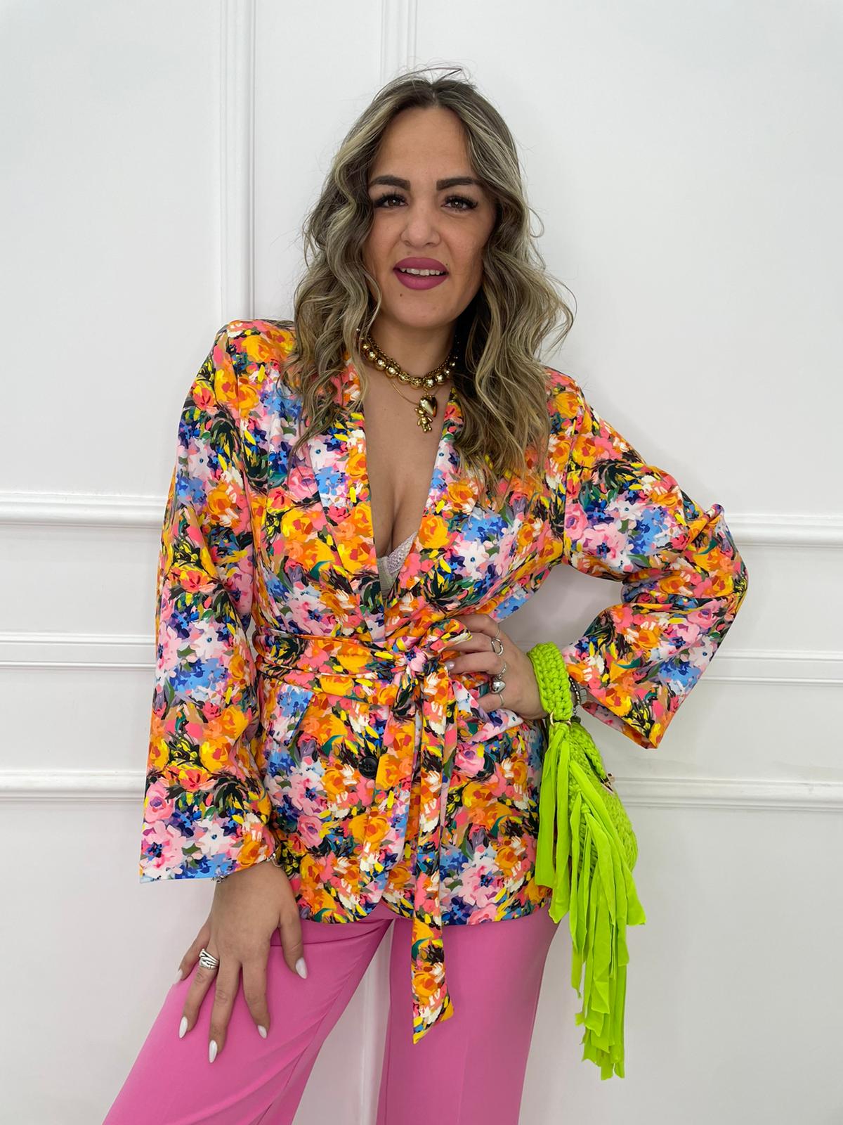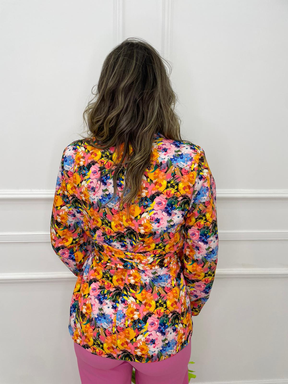 Giacca fantasia colorata con cintura in vita