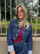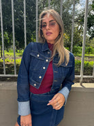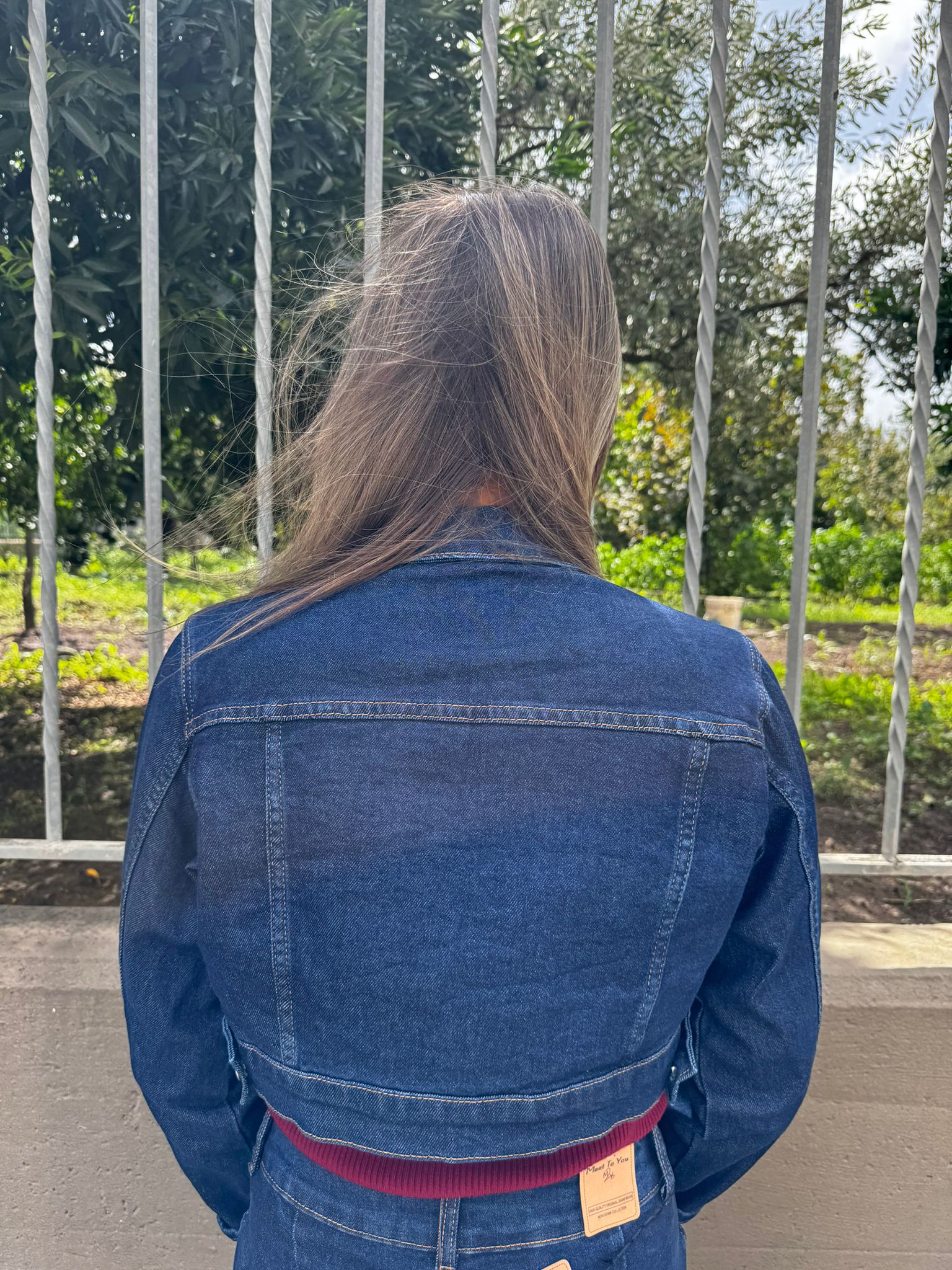 Giubbino di jeans lavaggio scuro con maniche a campana
