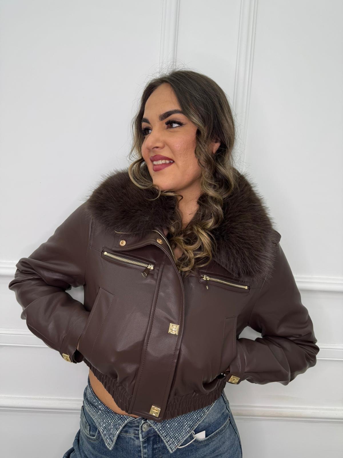- In eco pelle e collo in pelliccia