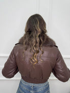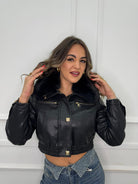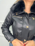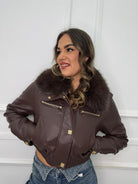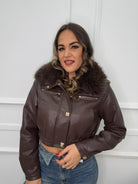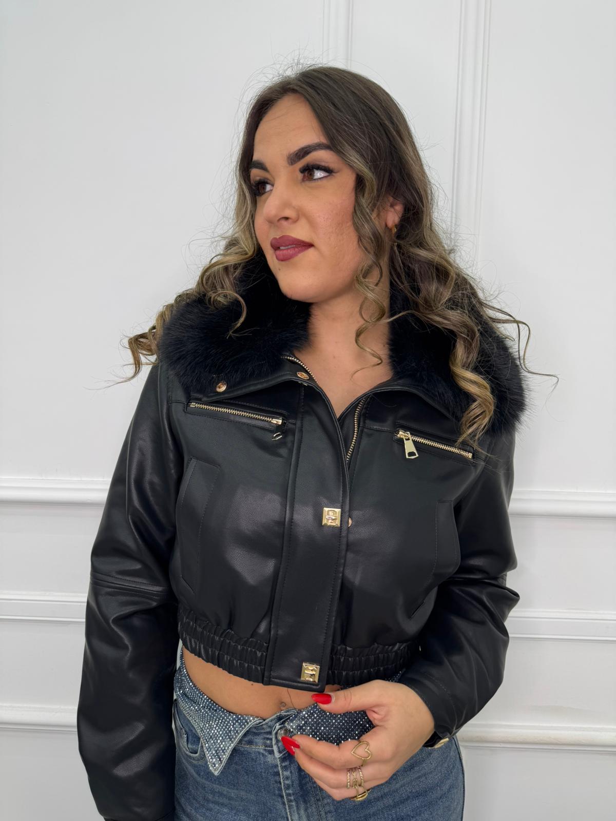 Giubbino eco pelle con collo in pelliccia