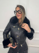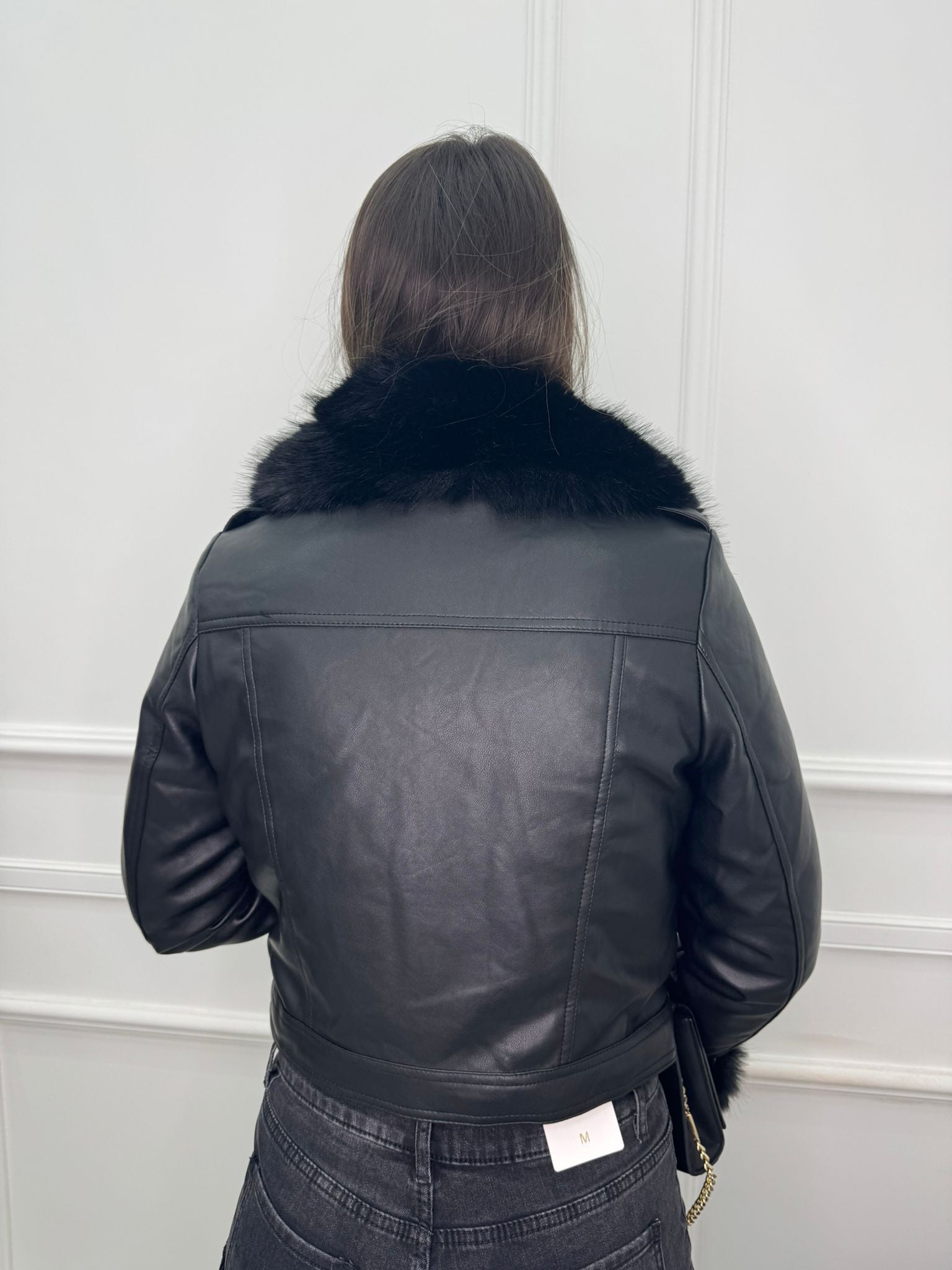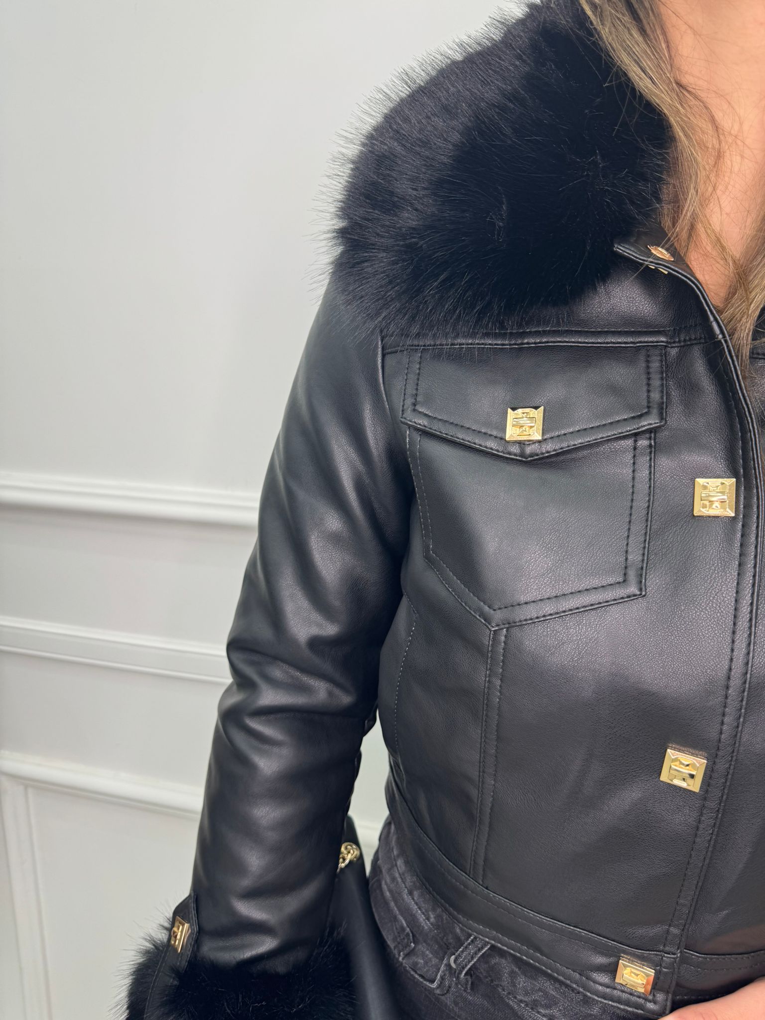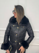 Giubbino eco pelle con pelliccia interna e al collo
