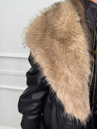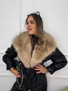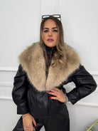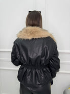 Giubbino in eco pelle con elastico in vita e collo in pelliccia