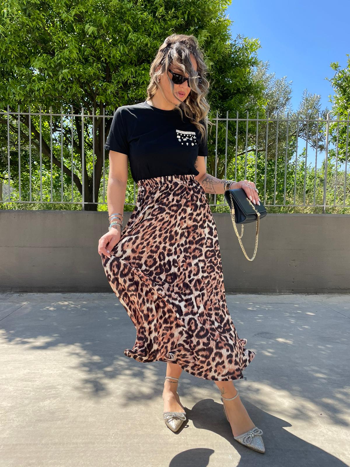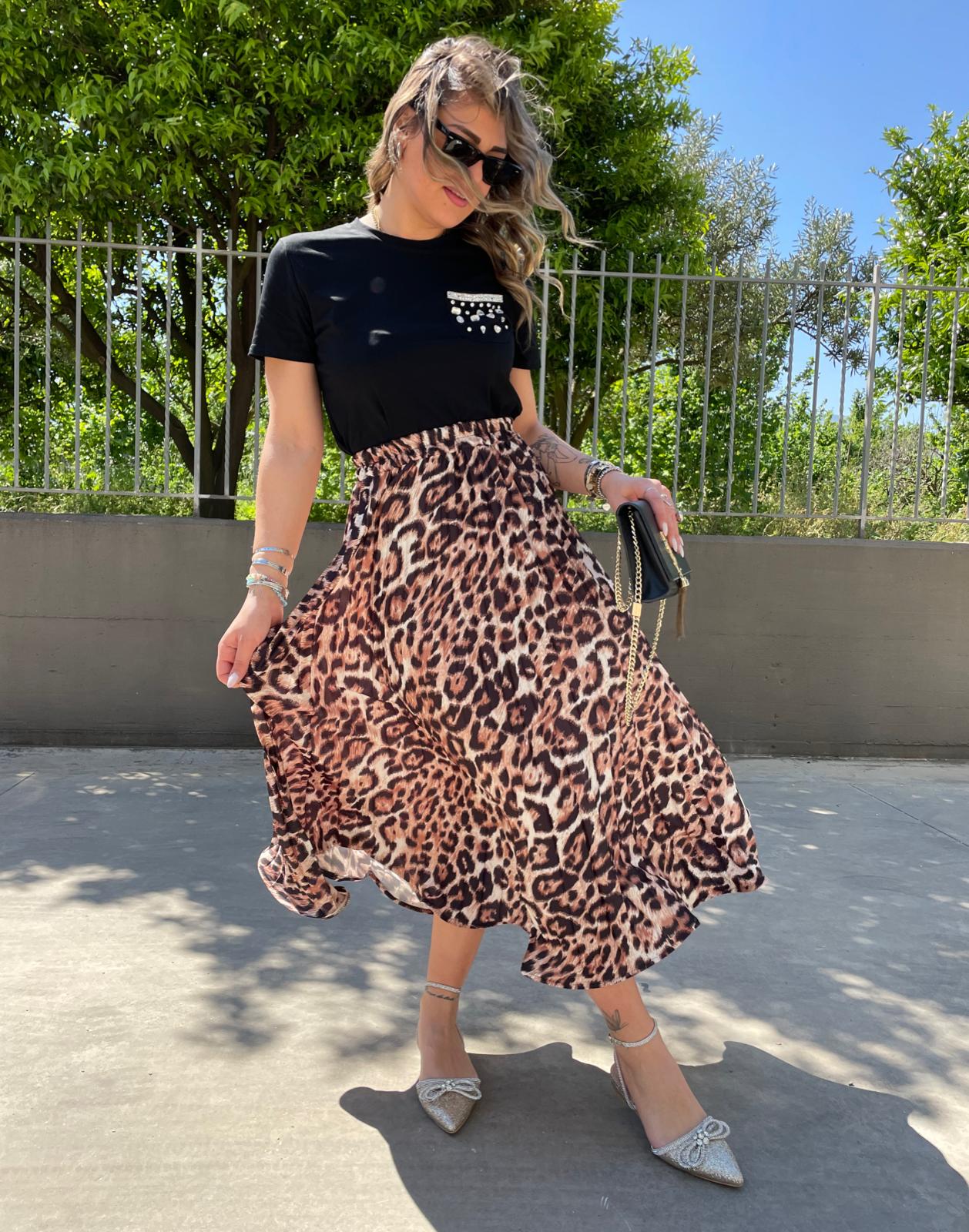 Gonna lunga animalier plissettata