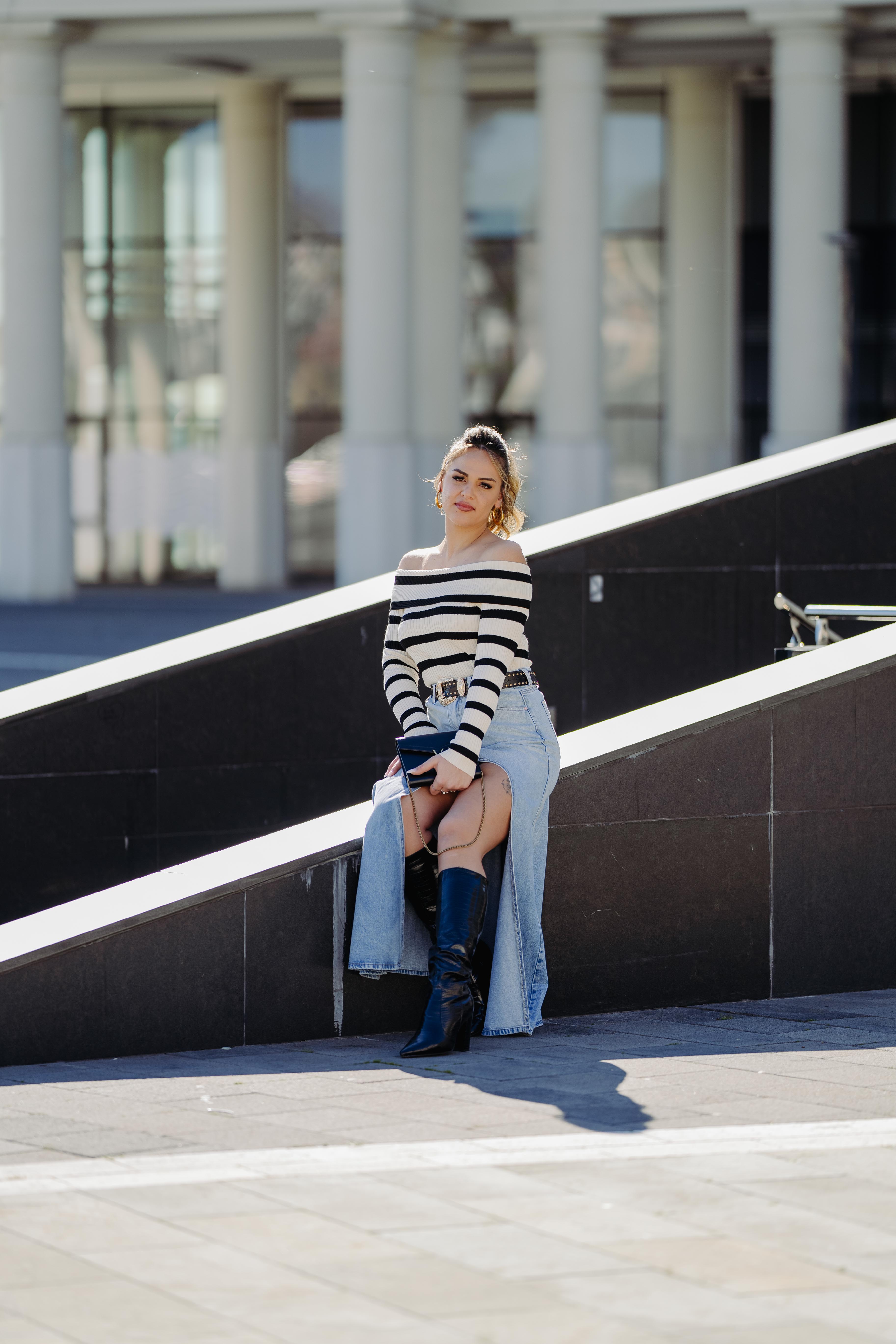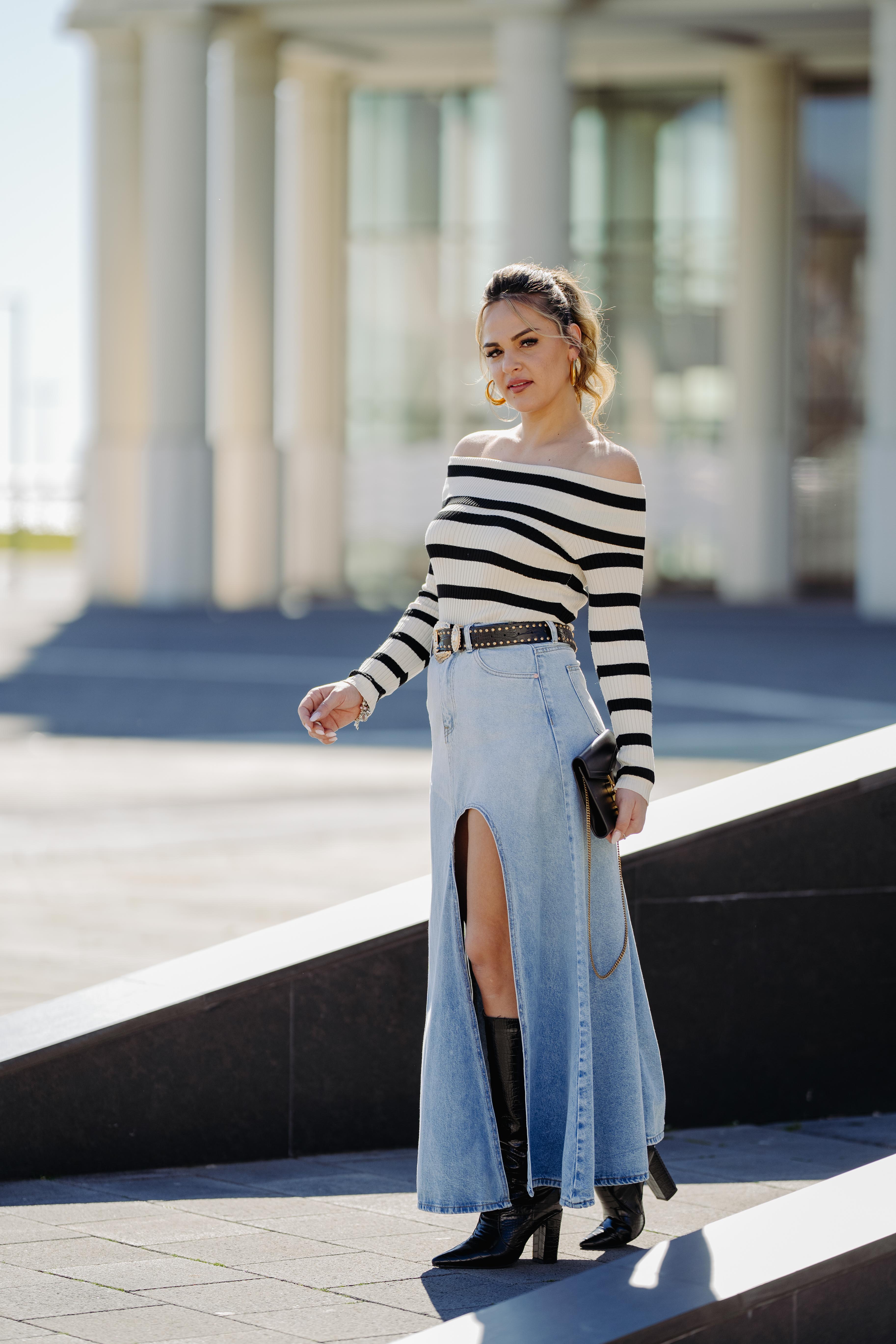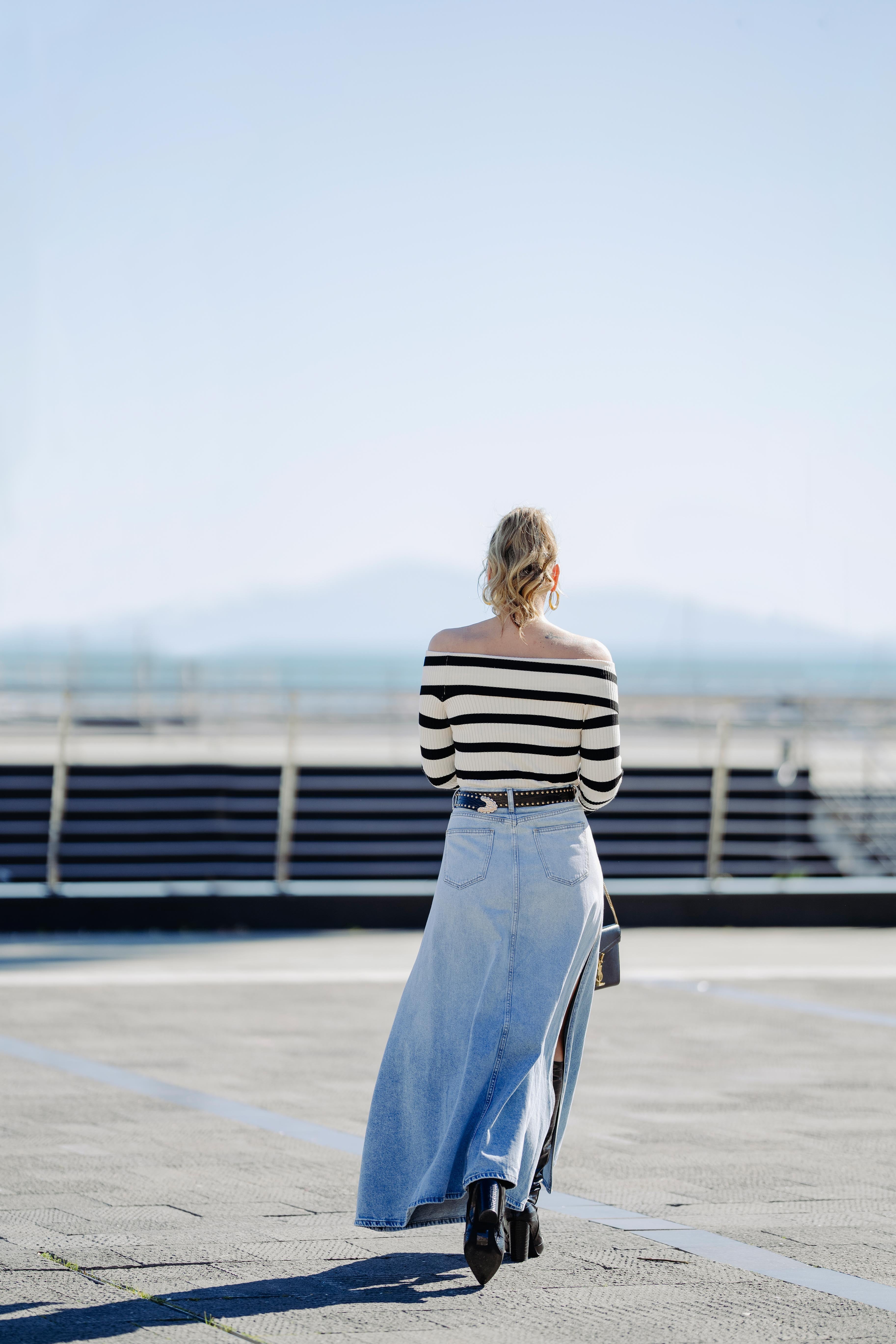 - La modella è una taglia 44, alta 1,79m e indossa la taglia "L"
