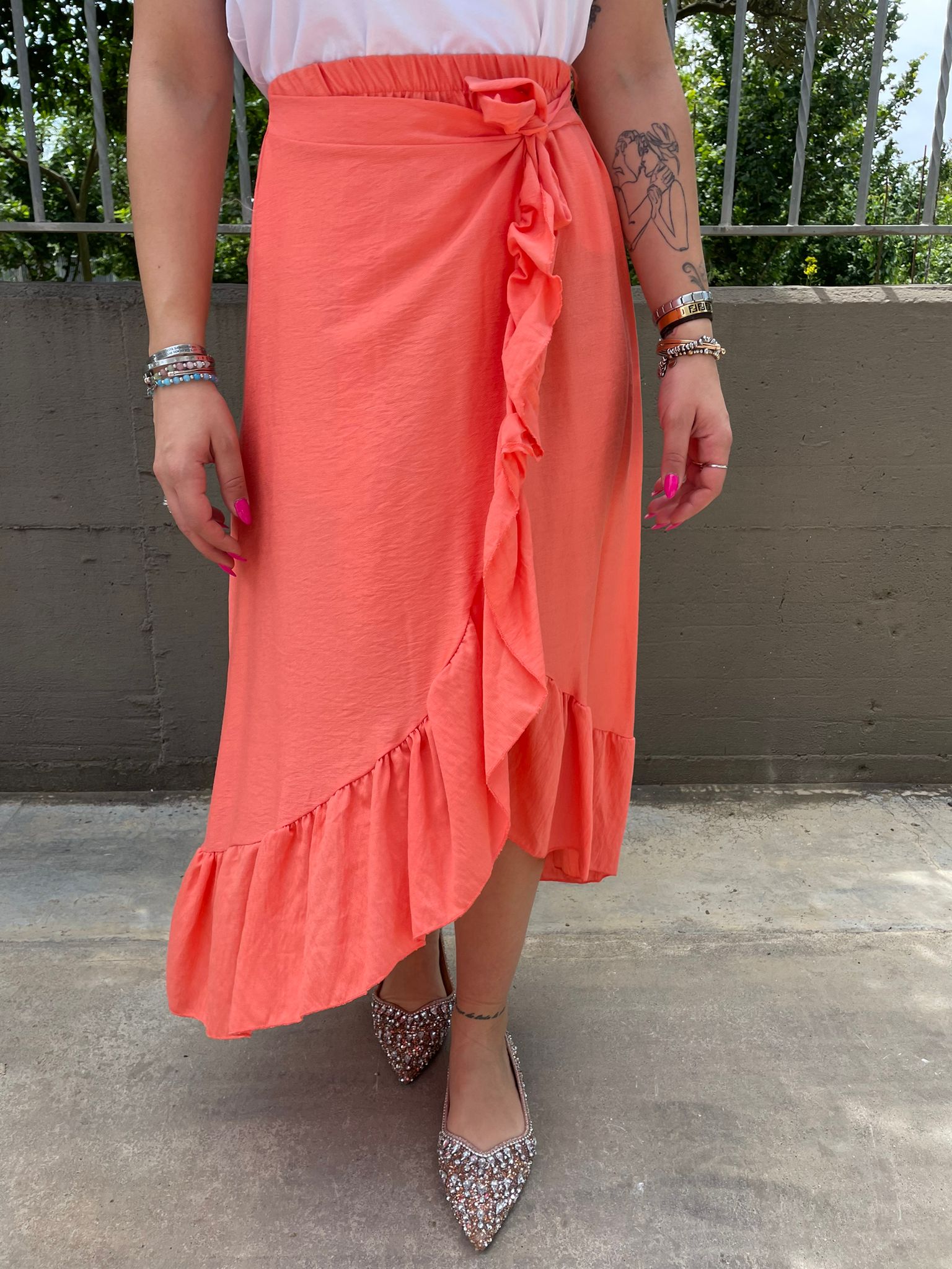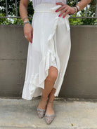 Gonna lunga finto portafoglio effetto lino